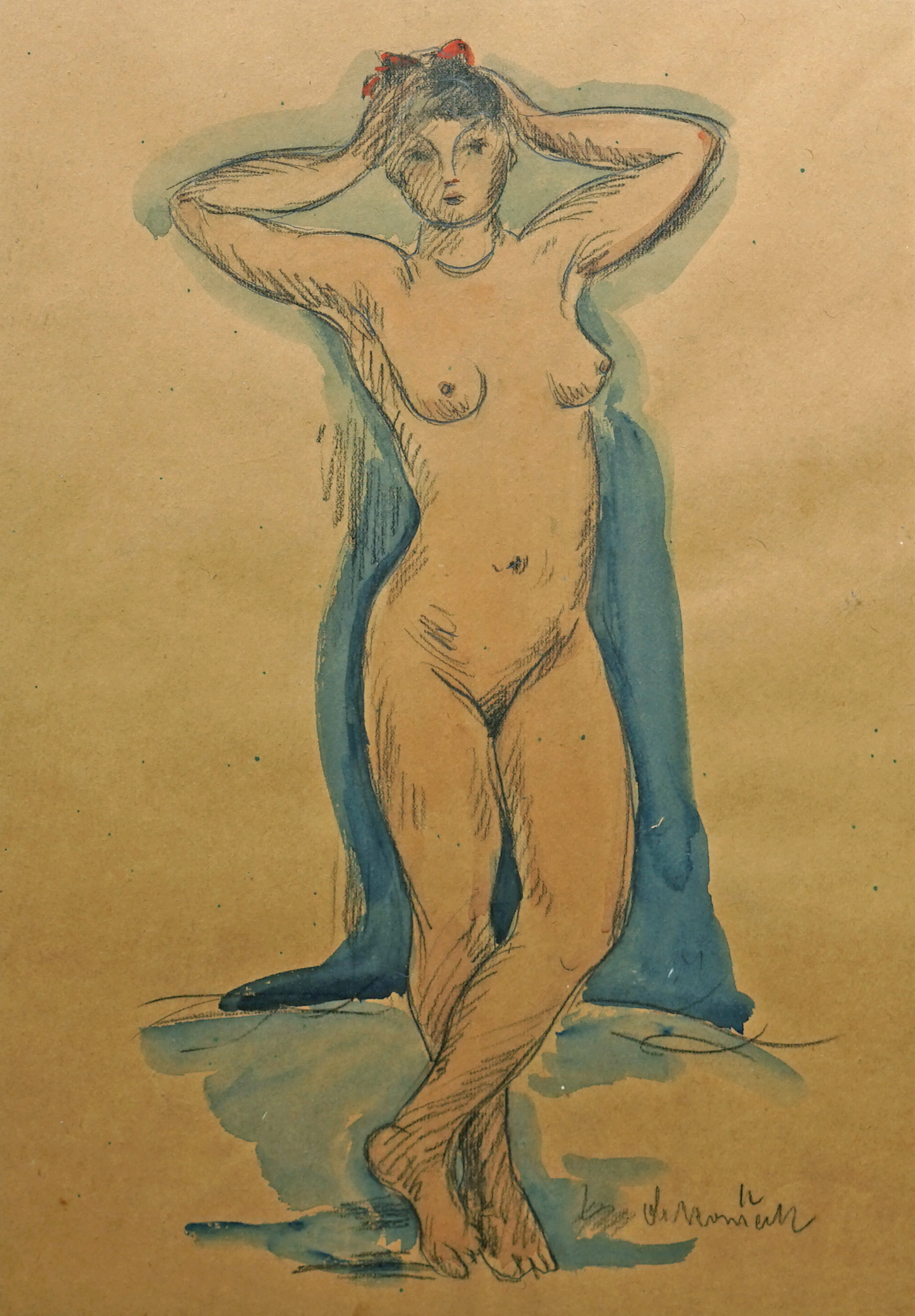 Technika: Akvarel Výška: 46 cm, šířka: 31,5 cm, rámování: 61 x 46 cm Stav: Dobrý Signatura: signováno