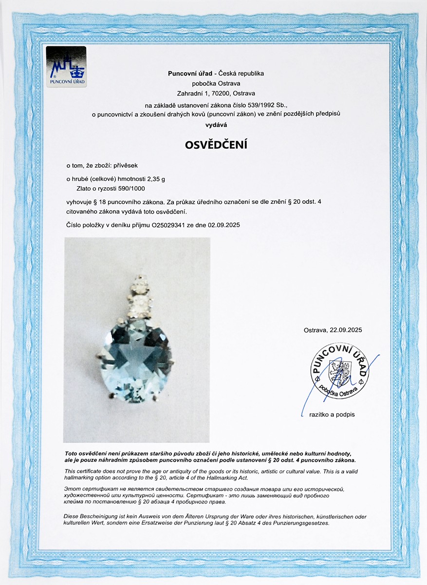 Pravost drahokamů byla ověřena gemologickou laboratoří.