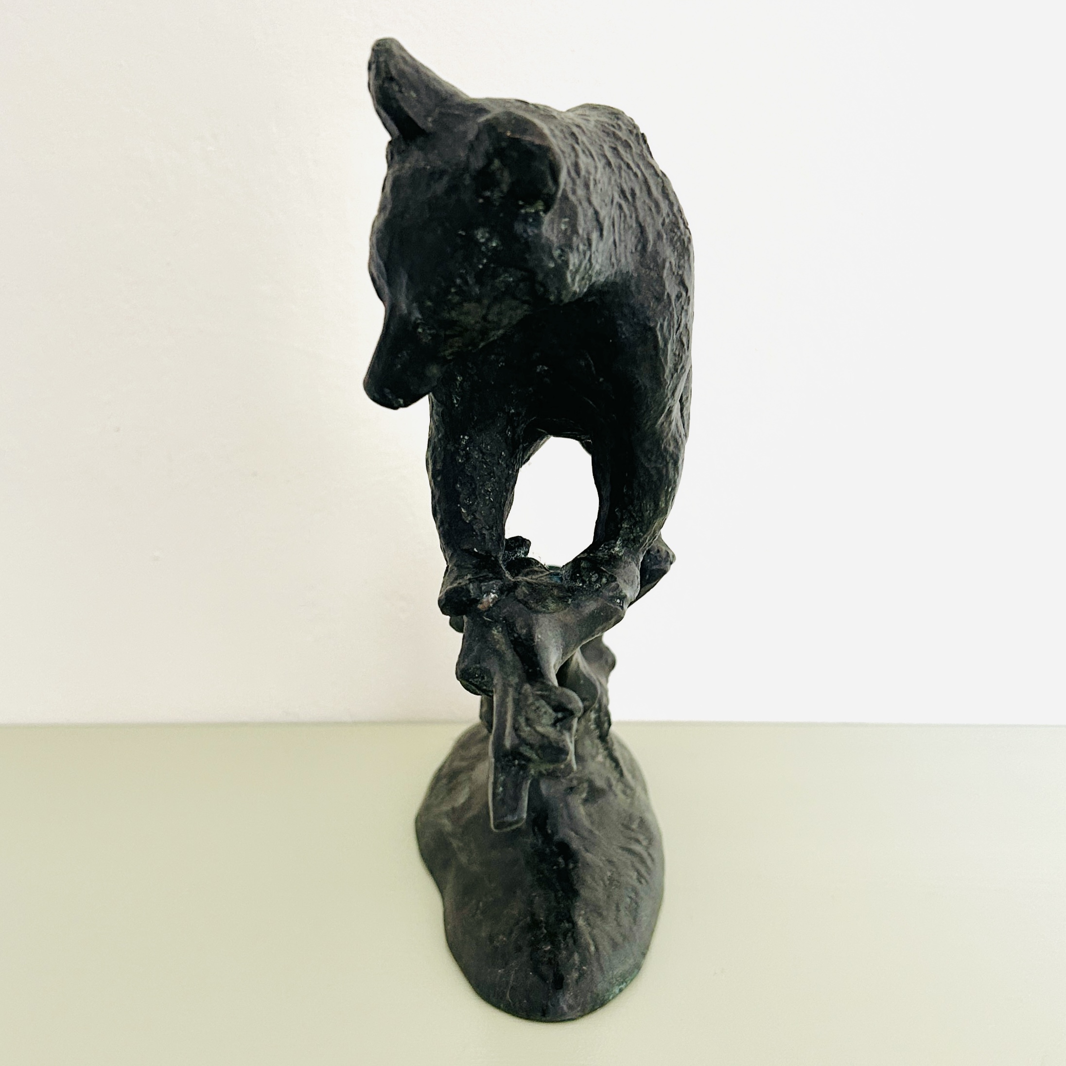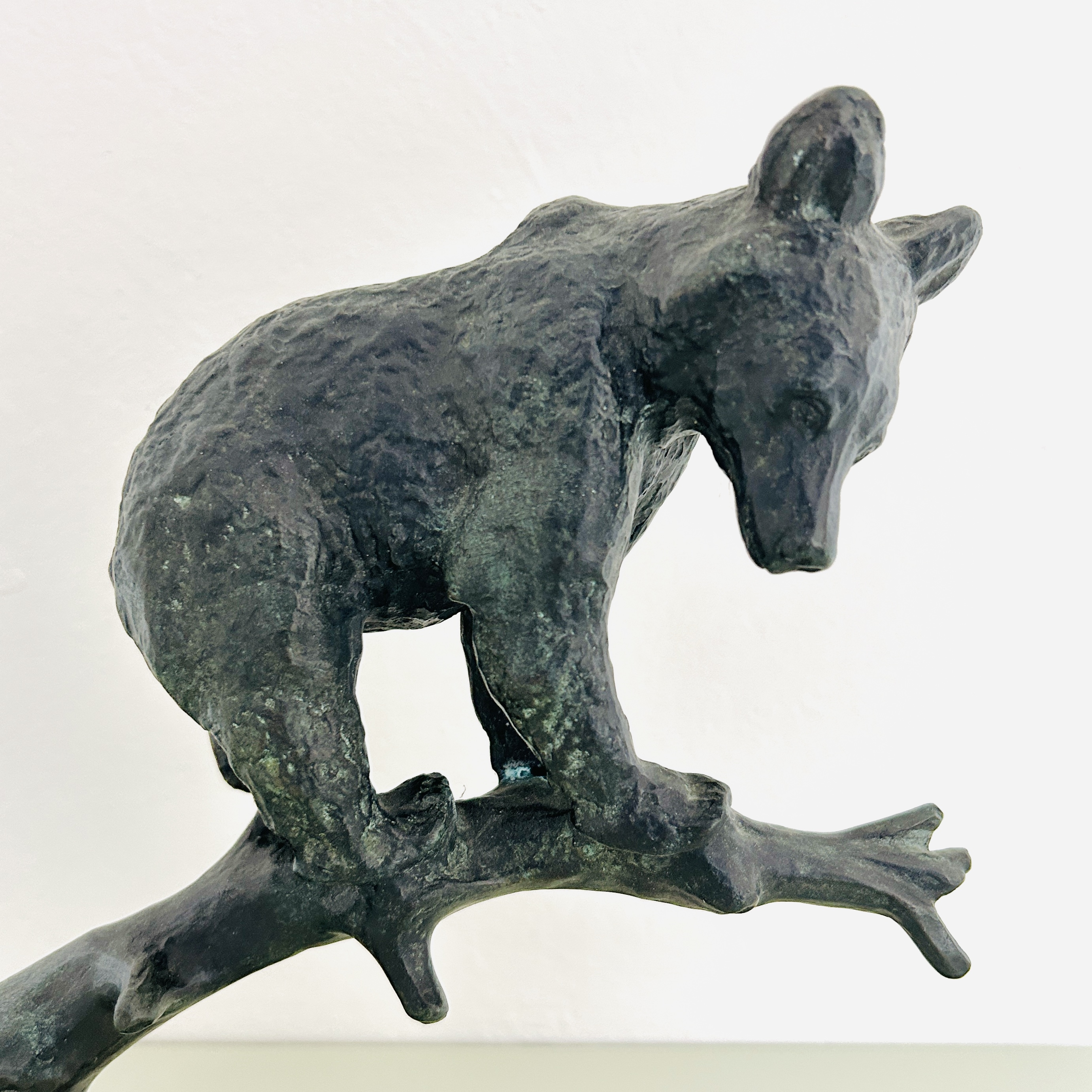 Stolní socha s motivem medvědího mláděte na větvi. Realistické zpodobnění s důrazem na měkkou modelaci blízkou hliněné plastice. Originální konstrukcí zaujme svým výrazným zásahem nad rámec podstavce do prostoru, čímž je divák konfrontován napětím z nestability. Dekorativní socha s oblíbenou lesní tematikou.