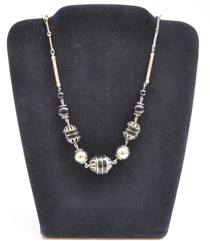 Art deco náhrdelník zdobený galalitem a obecným kovem, Německo, kolem roku 1930