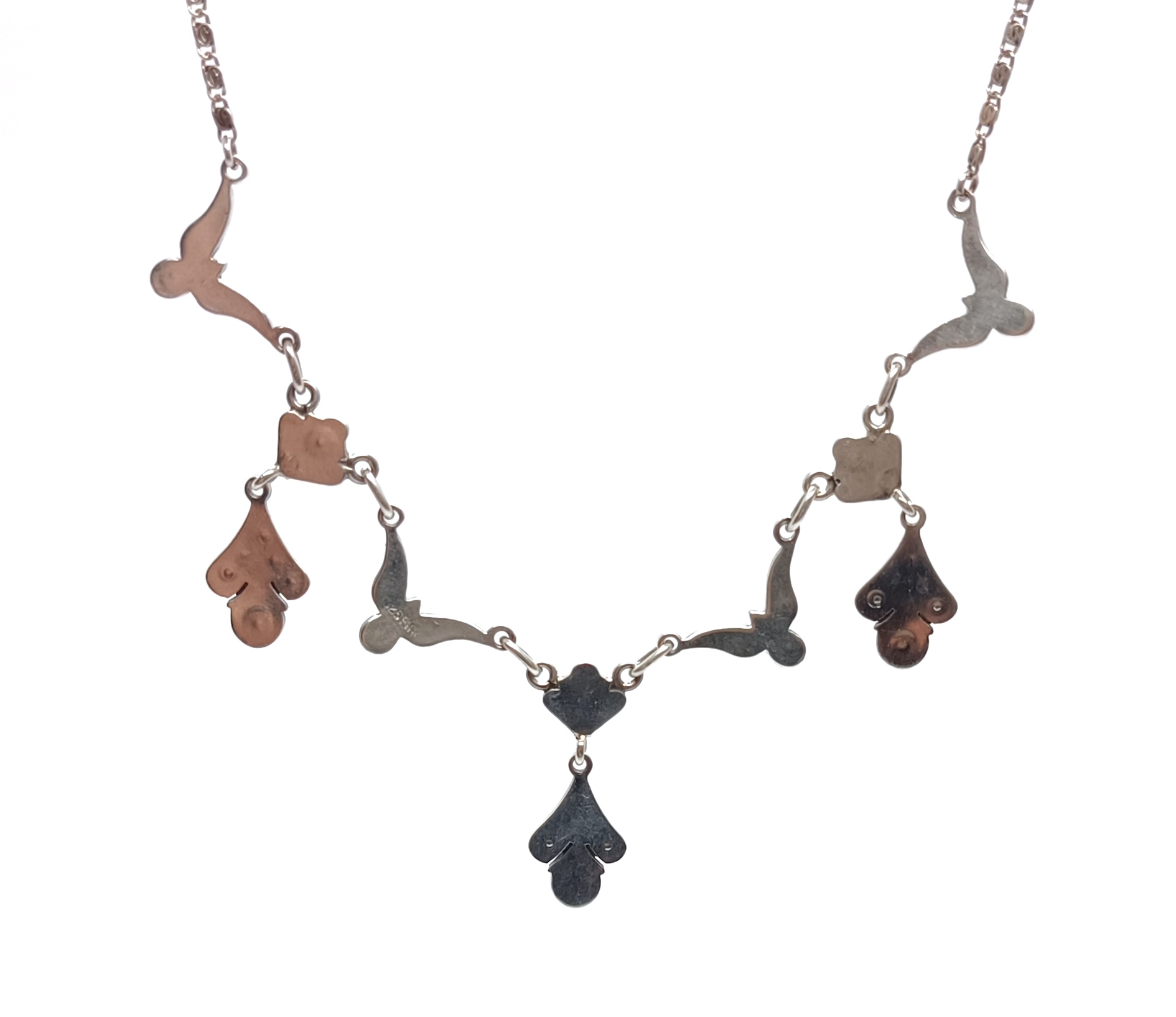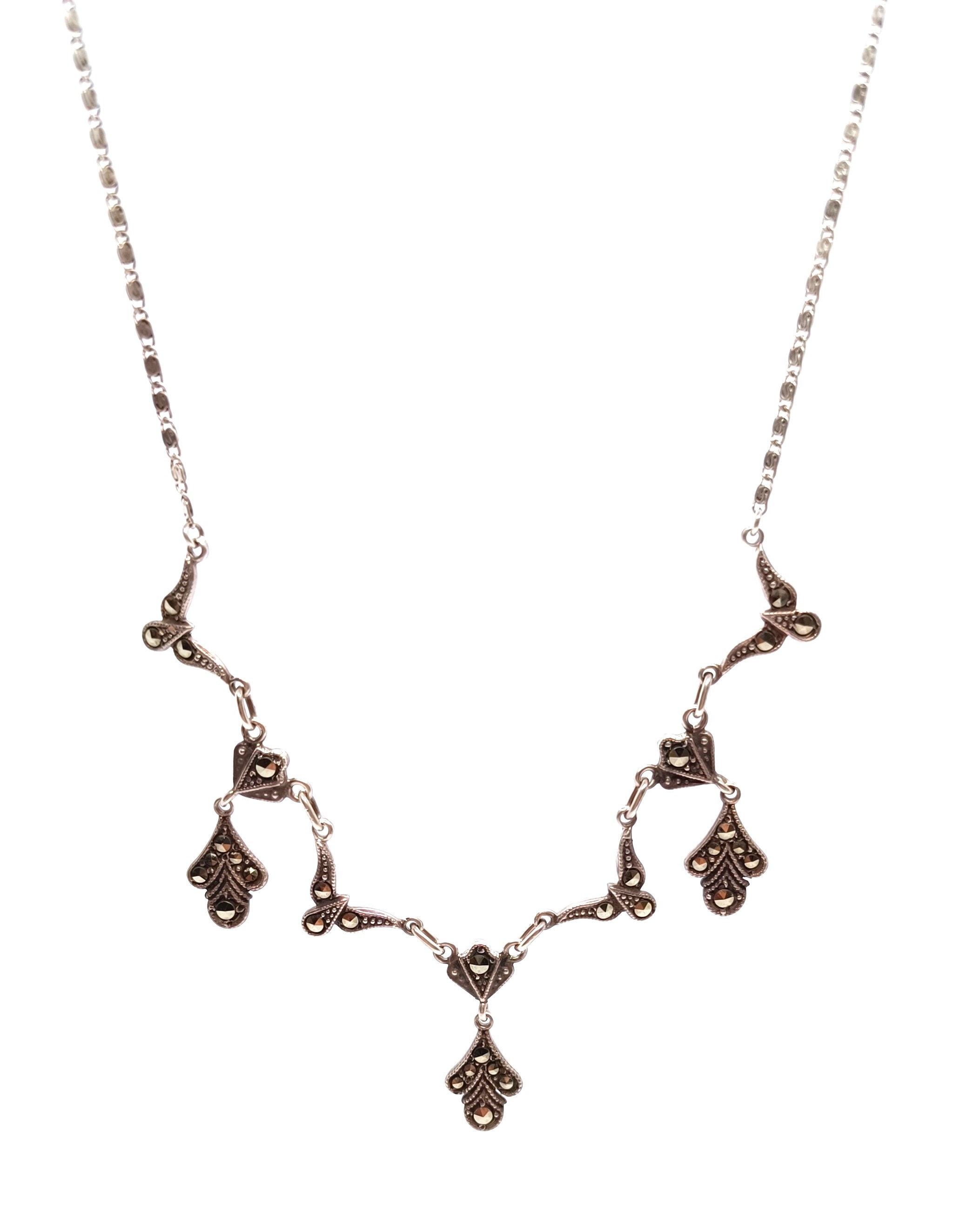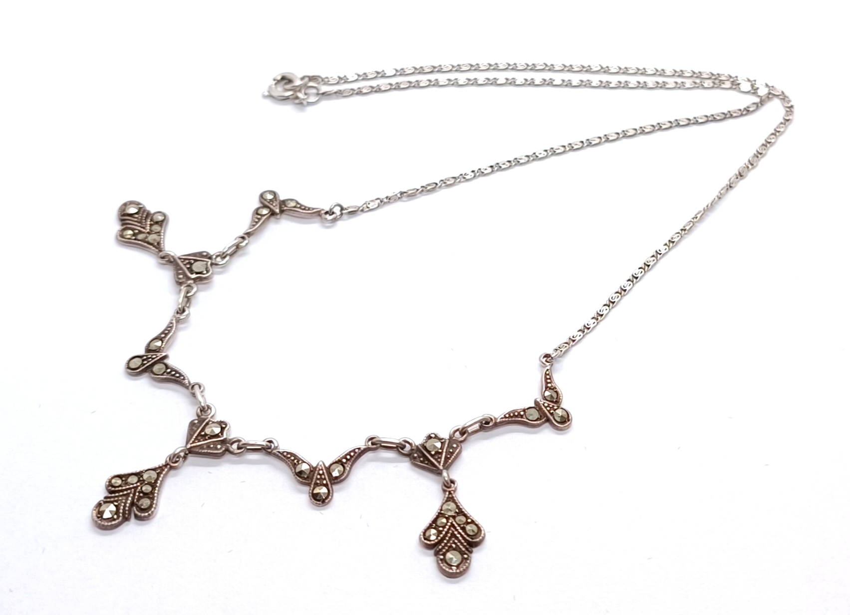 Art deco stříbrný náhrdelník zdobený markazity, Ag btto 6,95g/925/1000, 30. léta 20. století, Západní Evropa, atest puncovního úřadu; délka 39 cm