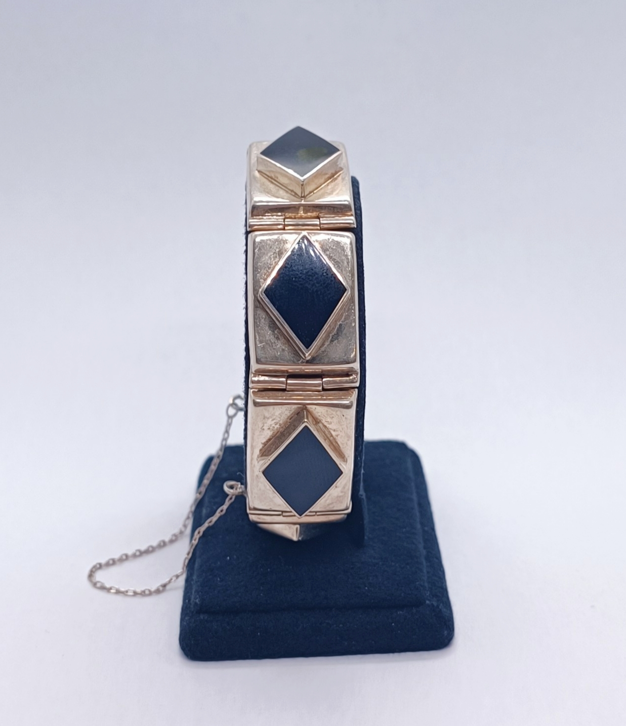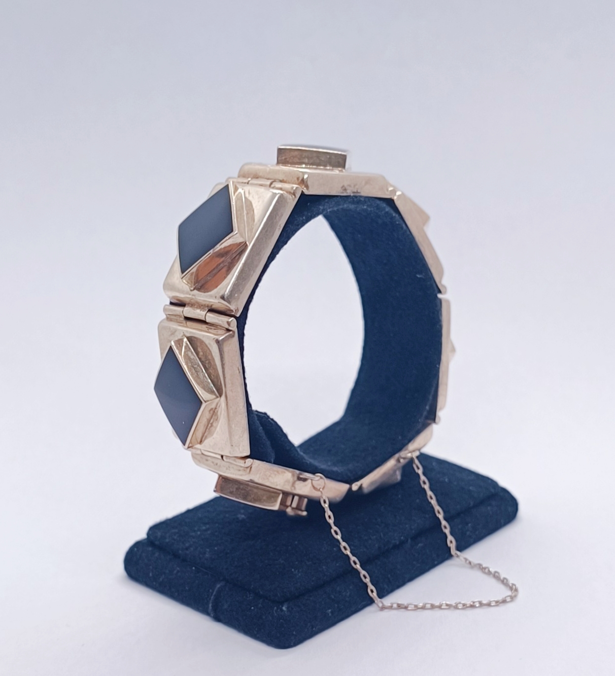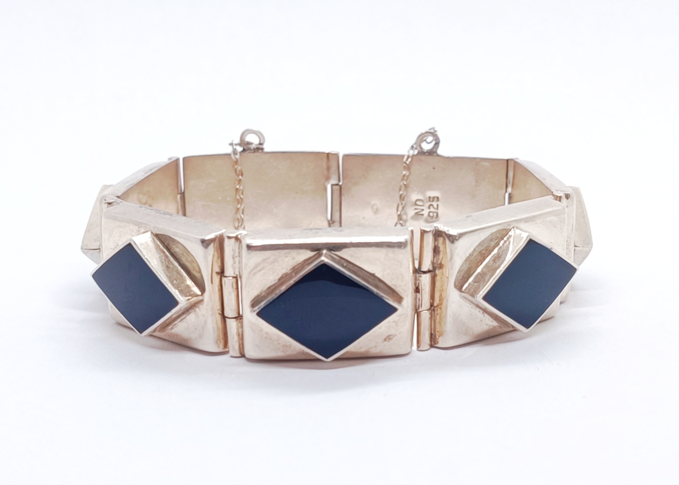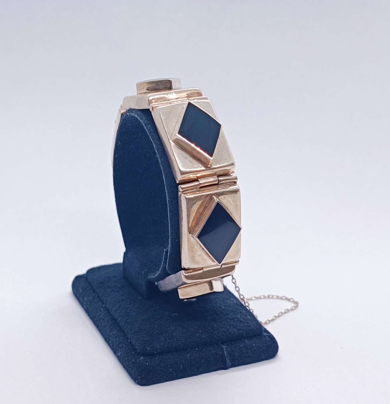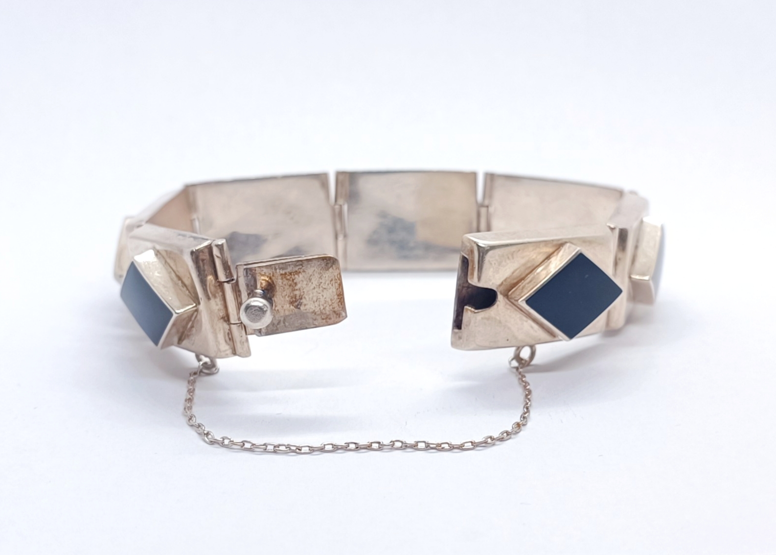 Art deco stříbrný článkový náramek s onyxy, Ag btto 44,78g/925/1000, 20.-30. léta 20. století; délka 19 cm, šířka článku 1,5 cm