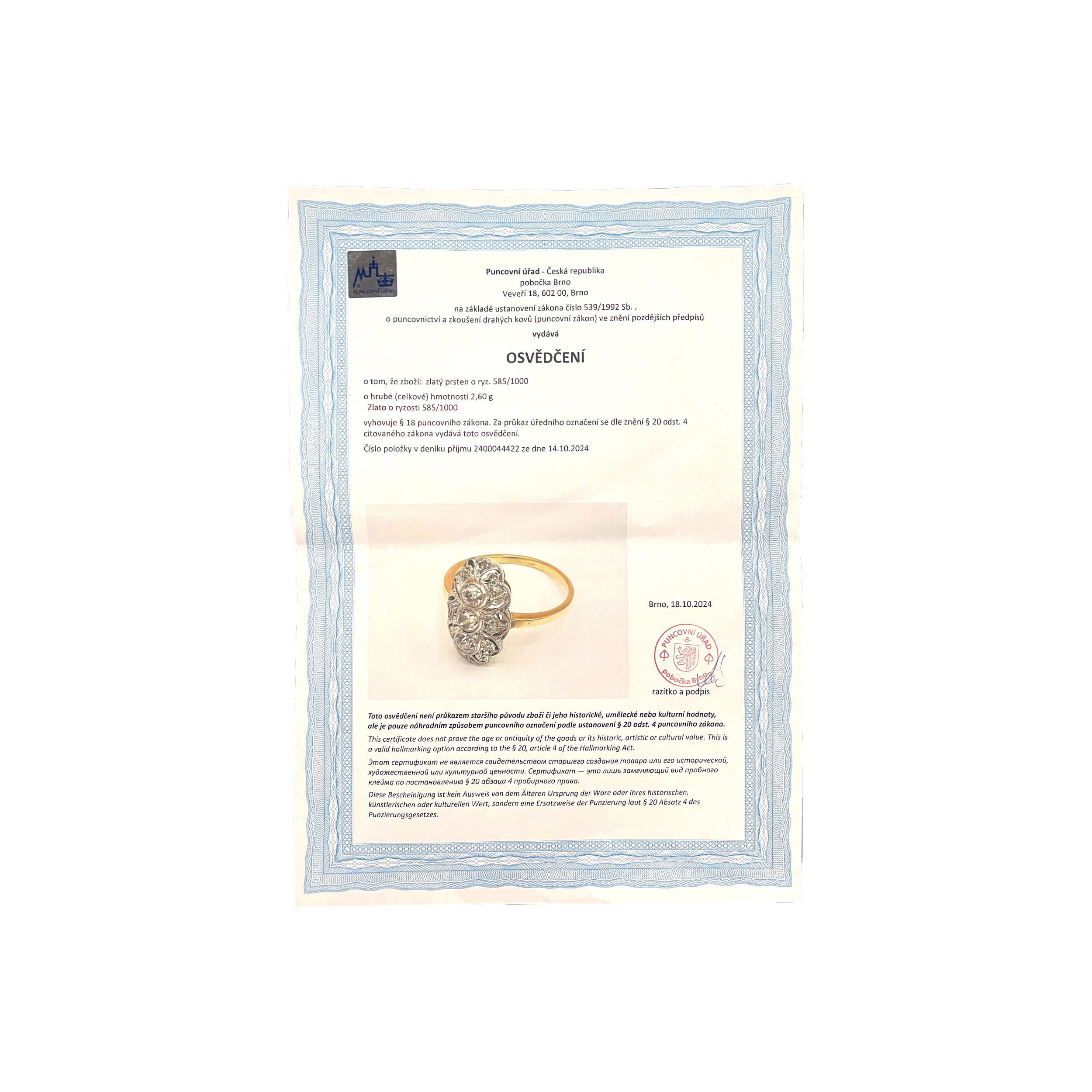 Doložen atest z puncovního úřadu