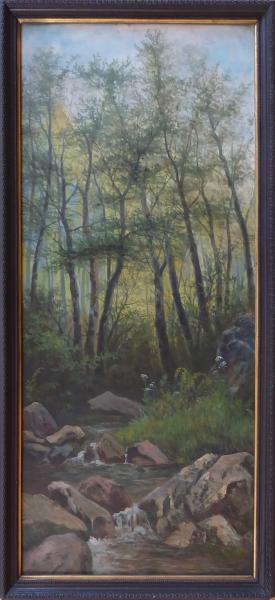 Kvaš a tempera na kartonu 87 x 37 cm. Rám 92 x 43 cm. V originálním stavu.