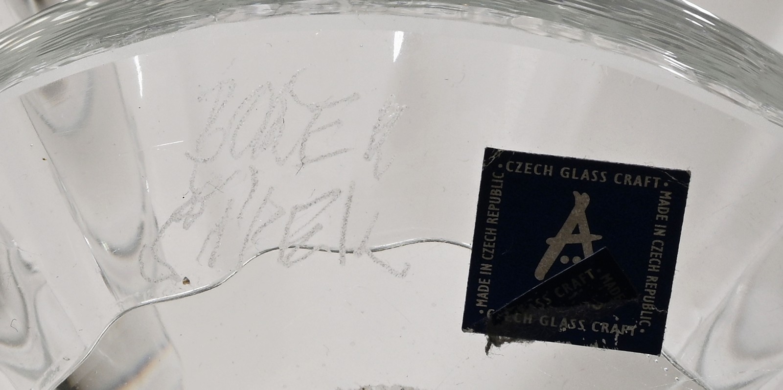 sklo výška 26 cm, šířka 25 cm signováno výborný stav