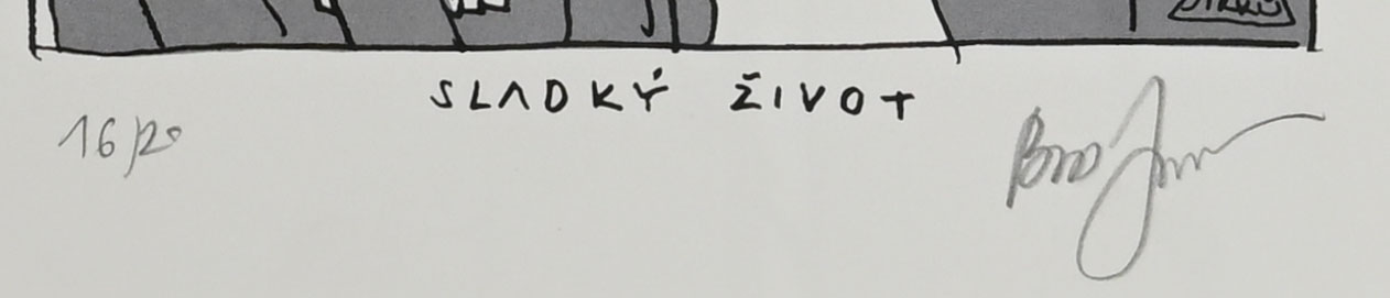 Serigrafie míry 24 x 16,2 cm s rámem 45 x 35,3 cm signováno PD nepoškozeno