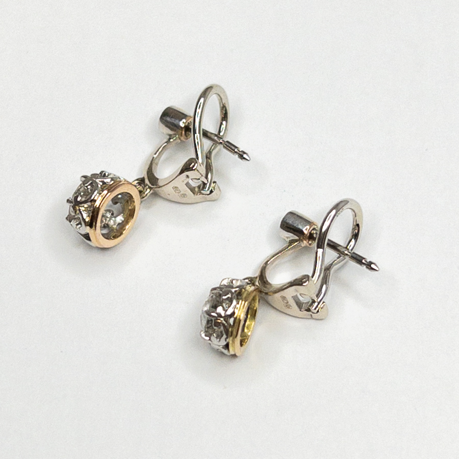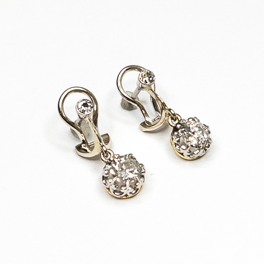 Starožitné zlaté visací náušnice s přírodními diamanty starého briliantového brusu 1,62 ct