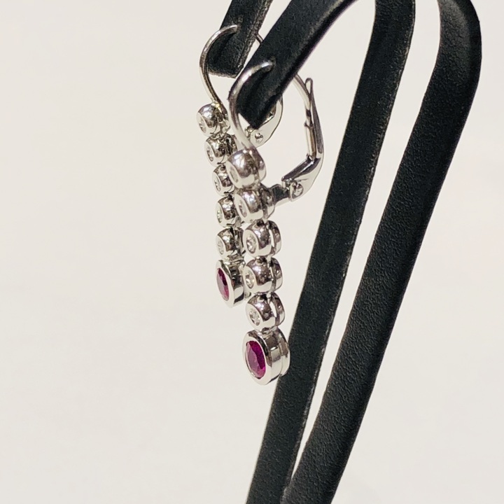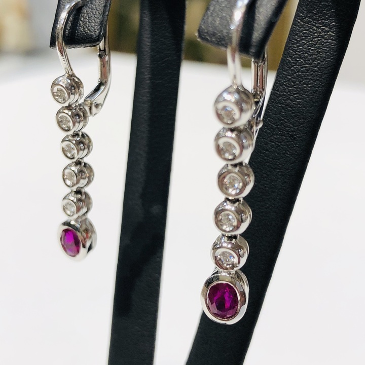 Zlaté visací náušnice s brilianty 0,20 ct a rubíny 0,40 ct,