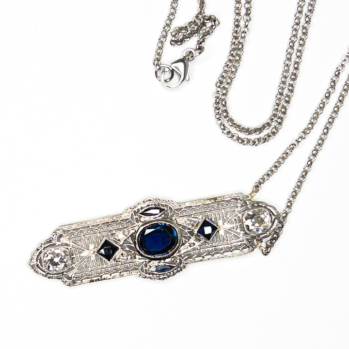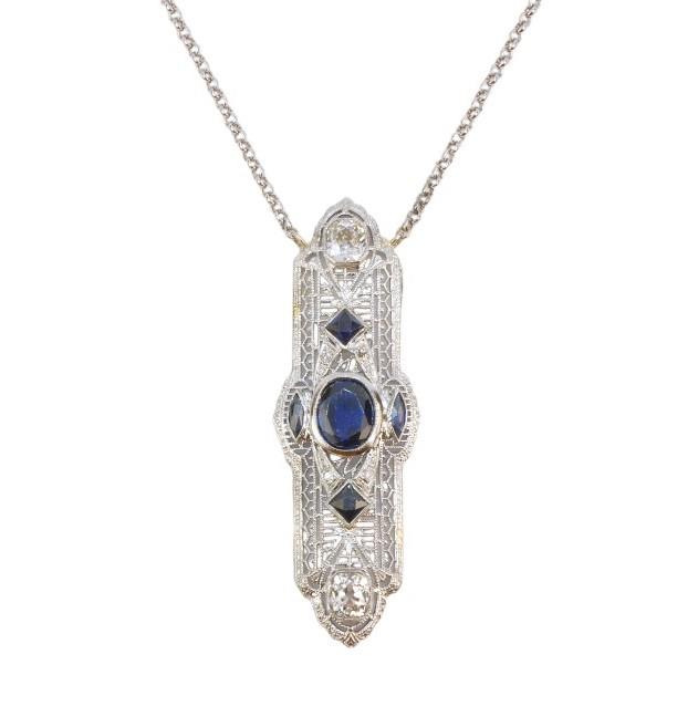 Velmi krásný starožitný náhrdelník je osazený přírodními safíry 2,60 ct kvality AA