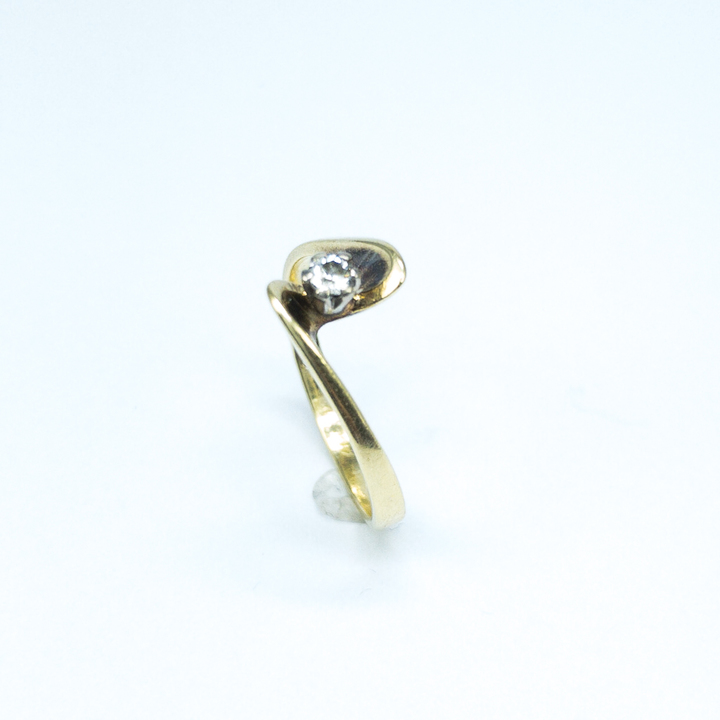 Starožitný zlatý prsten se solitérním briliantem 0,11 ct,