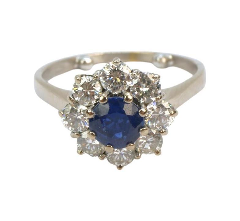 Zlatý prsten, osazený přírodním safírem kulatého, smíšeného brusu 1,2 ct