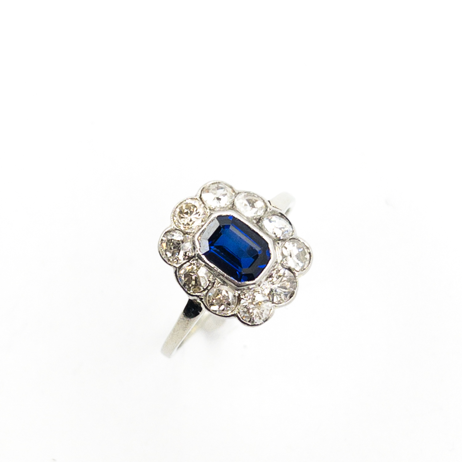 a syntetickým safírem smaragdového brusu o rozměrech 6,3 x 4,6 x 3 mm, index lomu 1,762-1,770,