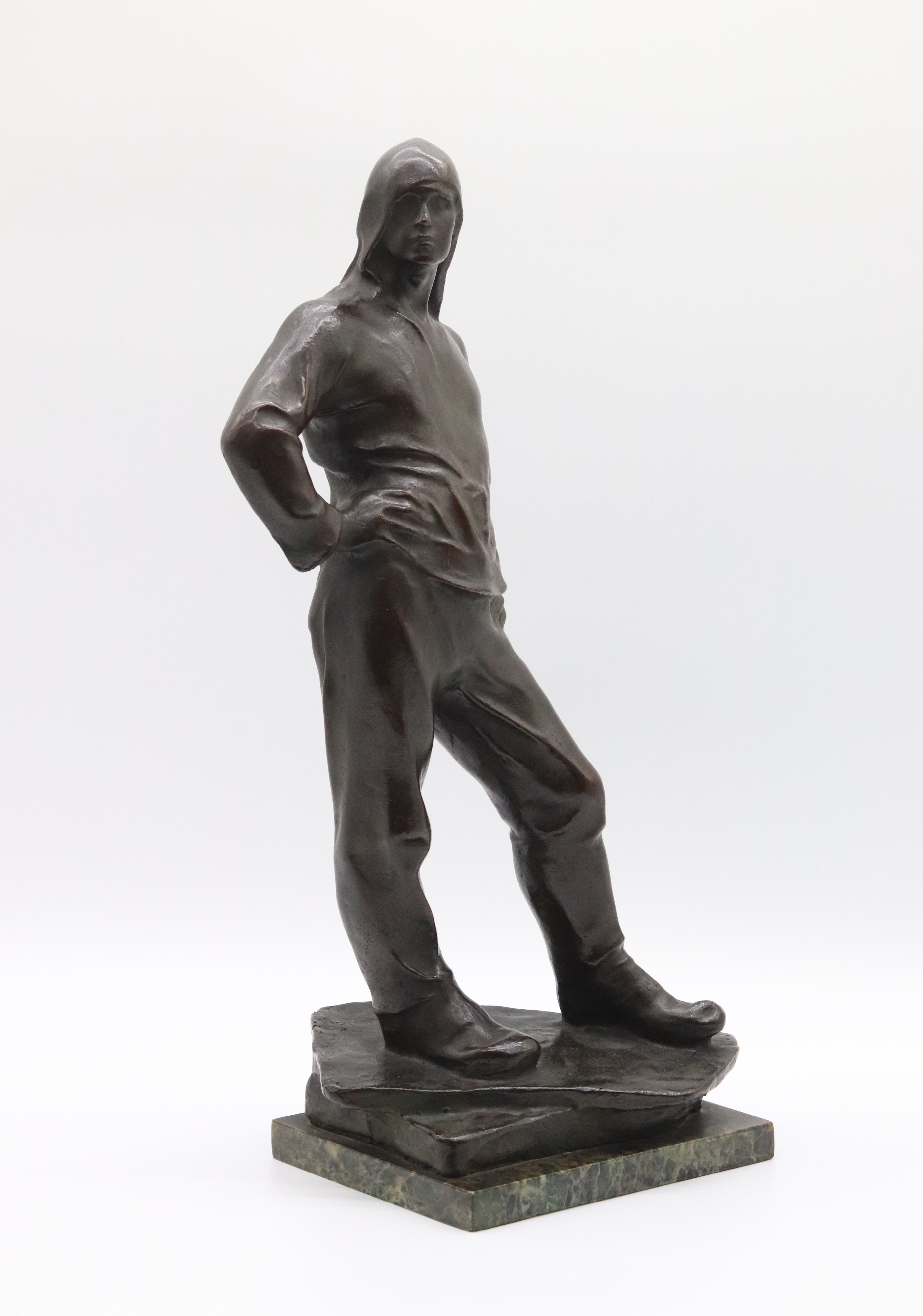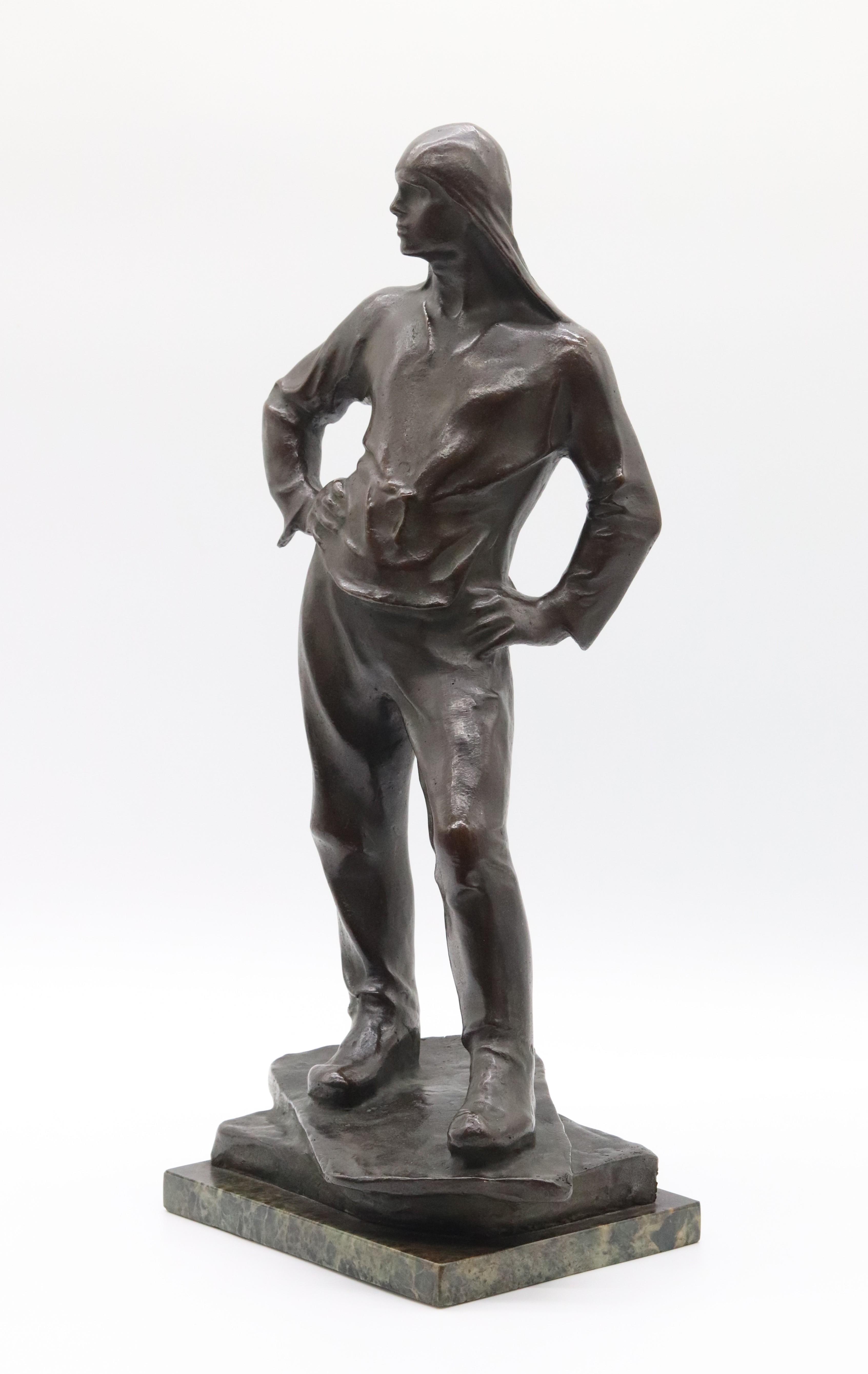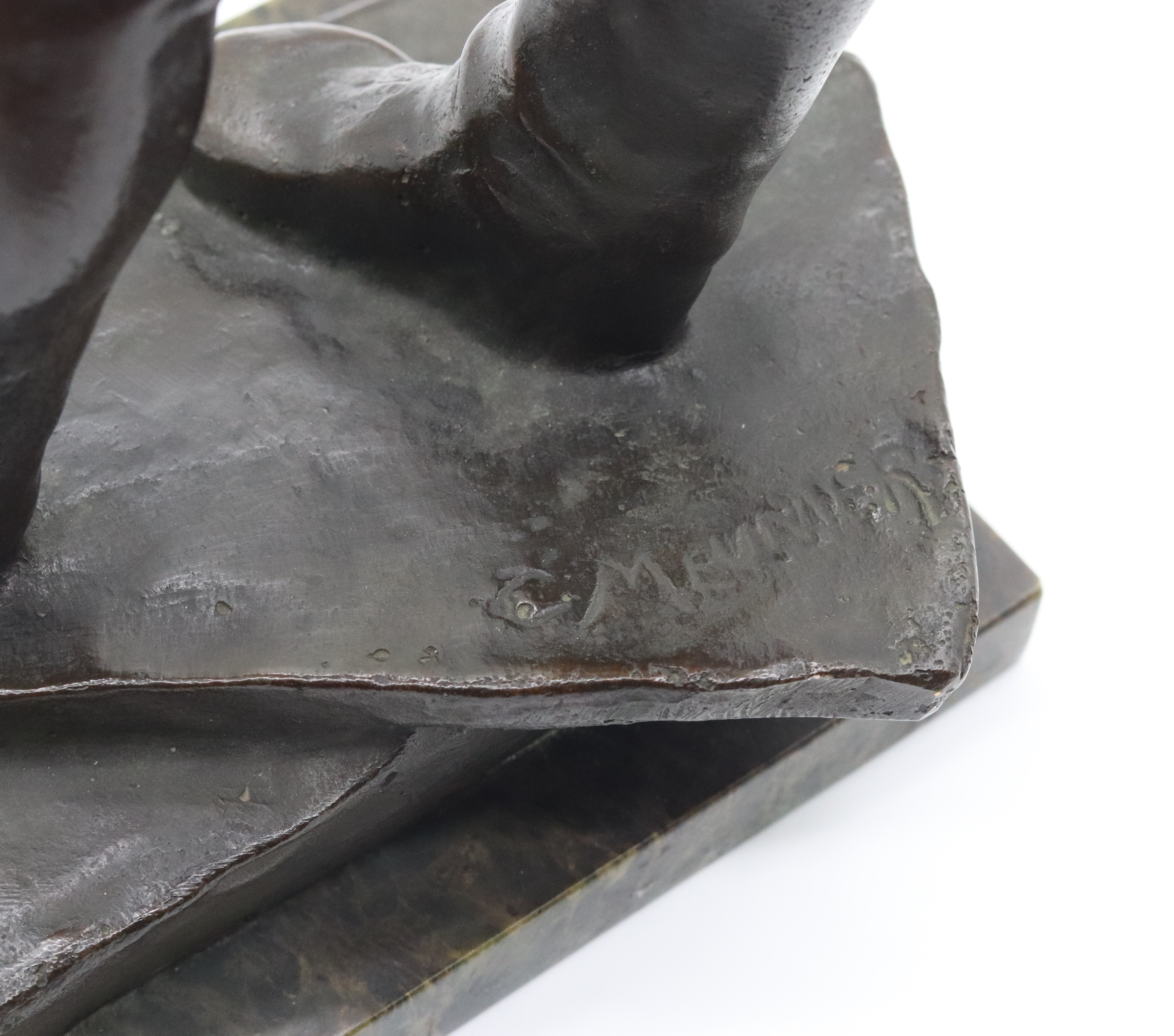 Velmi slavná a známá bronzová socha belgického sochaře Constantina Meuniera (1831-1905). Dokař – přístavní dělník. Socha má zastoupení v různých velikostech po celém světě, na veřejných prostranstvích i v evropských galeriích, 30. léta 20. století, signováno na zadní spodní straně; výška 47,5 cm