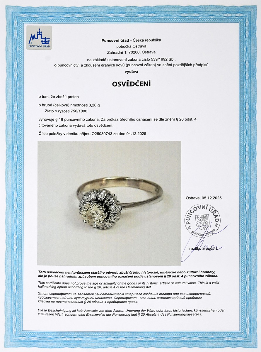 osvědčení Puncovního úřadu České republiky