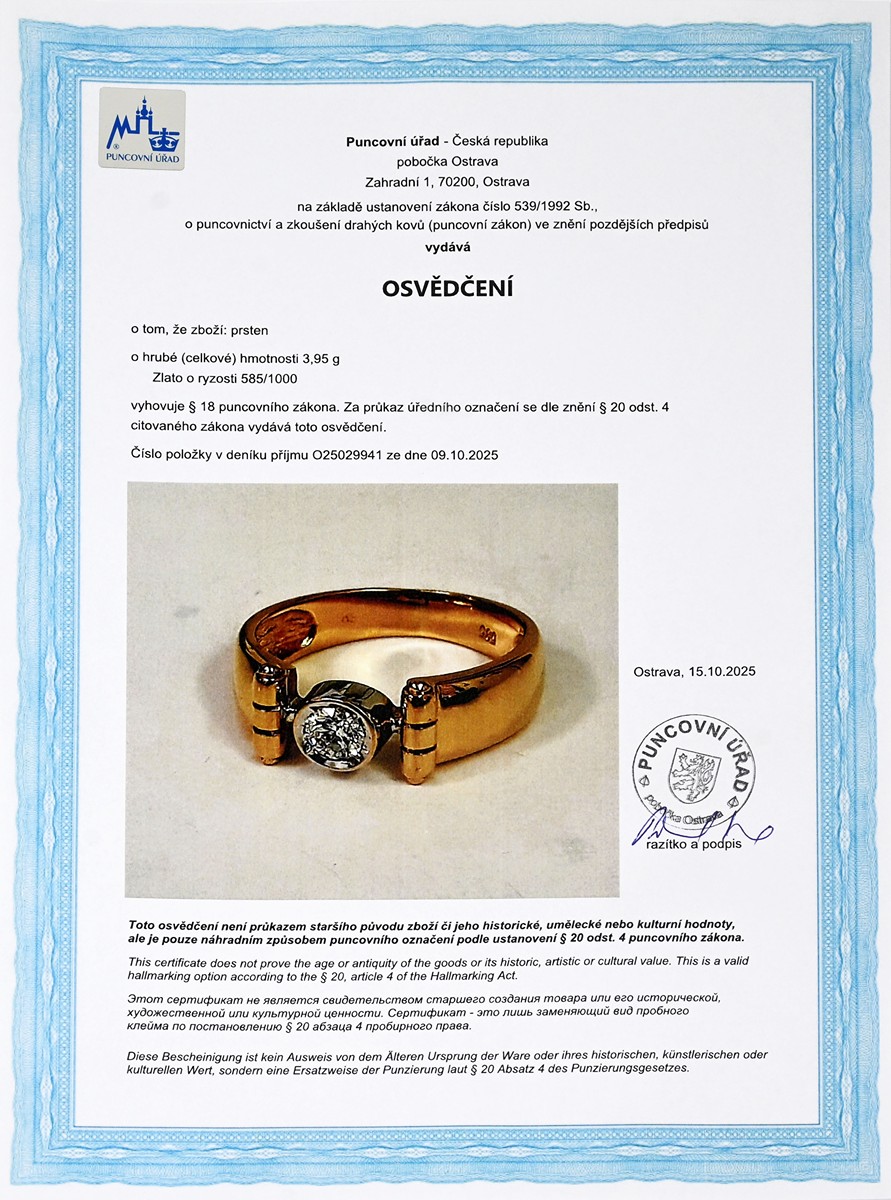 osvědčení Puncovního úřadu České republiky