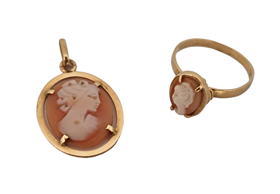 Popis: Zlatý set prsten a přívěsek – kamej.