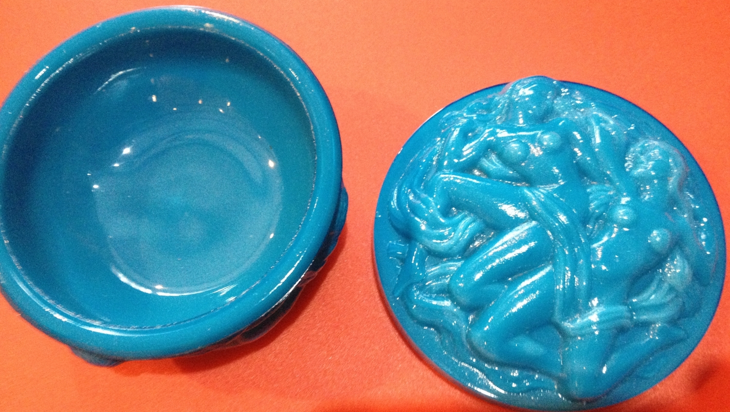 DEKORATIVNÍ DÓZIČKA V JASNÉ JASPISOVÉ BARVĚ,NEPOŠKOZENA,TATO BARVA SE VYSKYTUJE OJEDINĚLE
