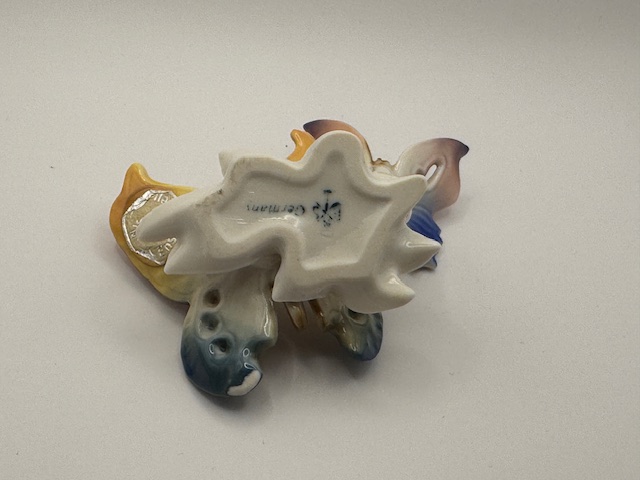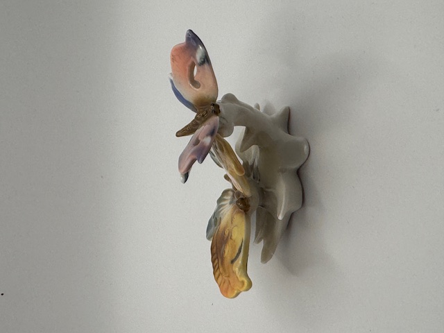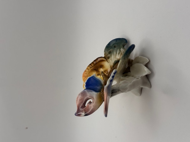 Půvabná figurka – dvojice porcelánových motýlů, krásně malovaných, ENS Volkstedt, Německo 30. léta