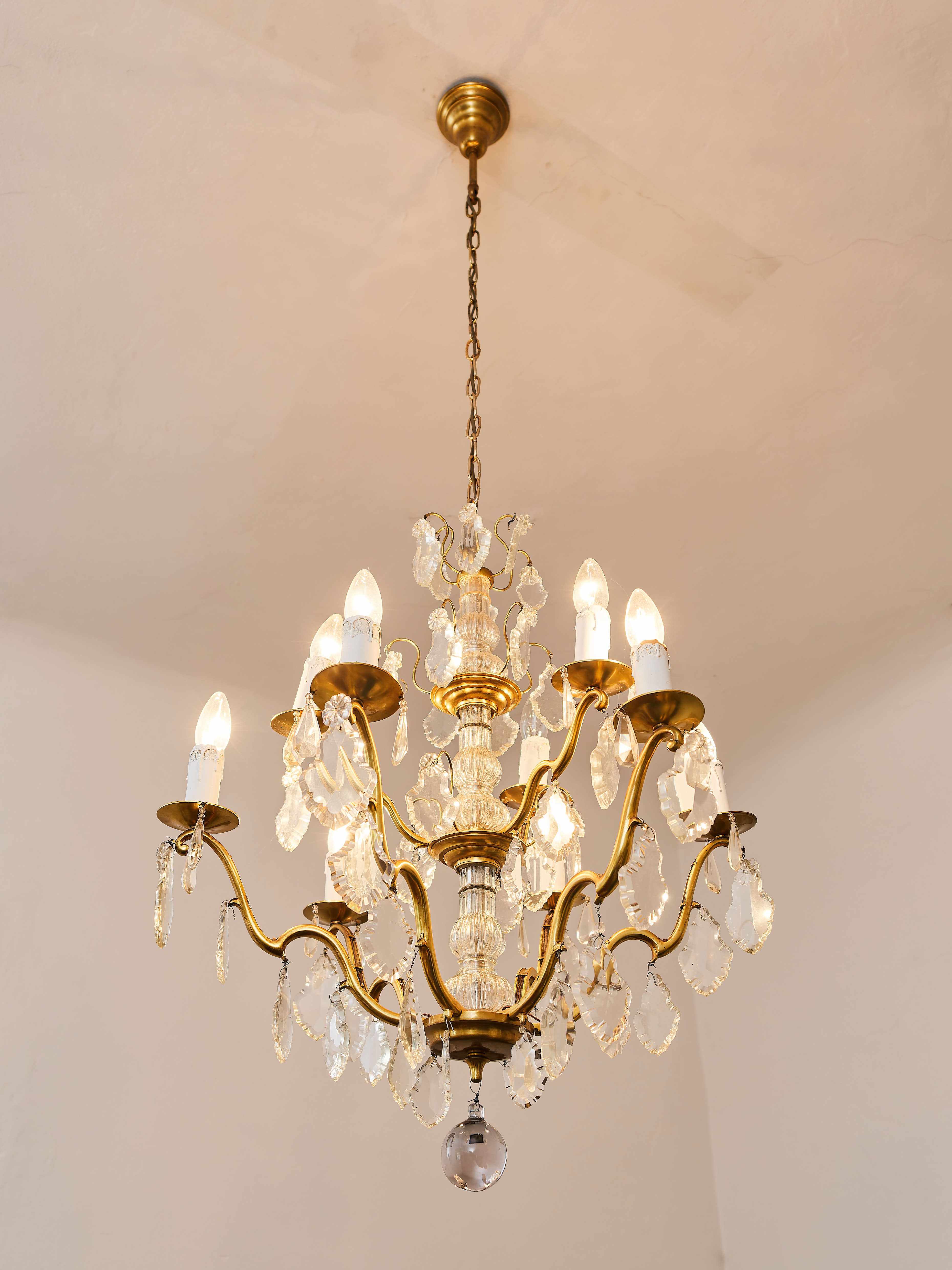 Stav: elektroinstalace je již vyměněná za novodobou v mědi, lustr je plně funkční, ihned k užívání.