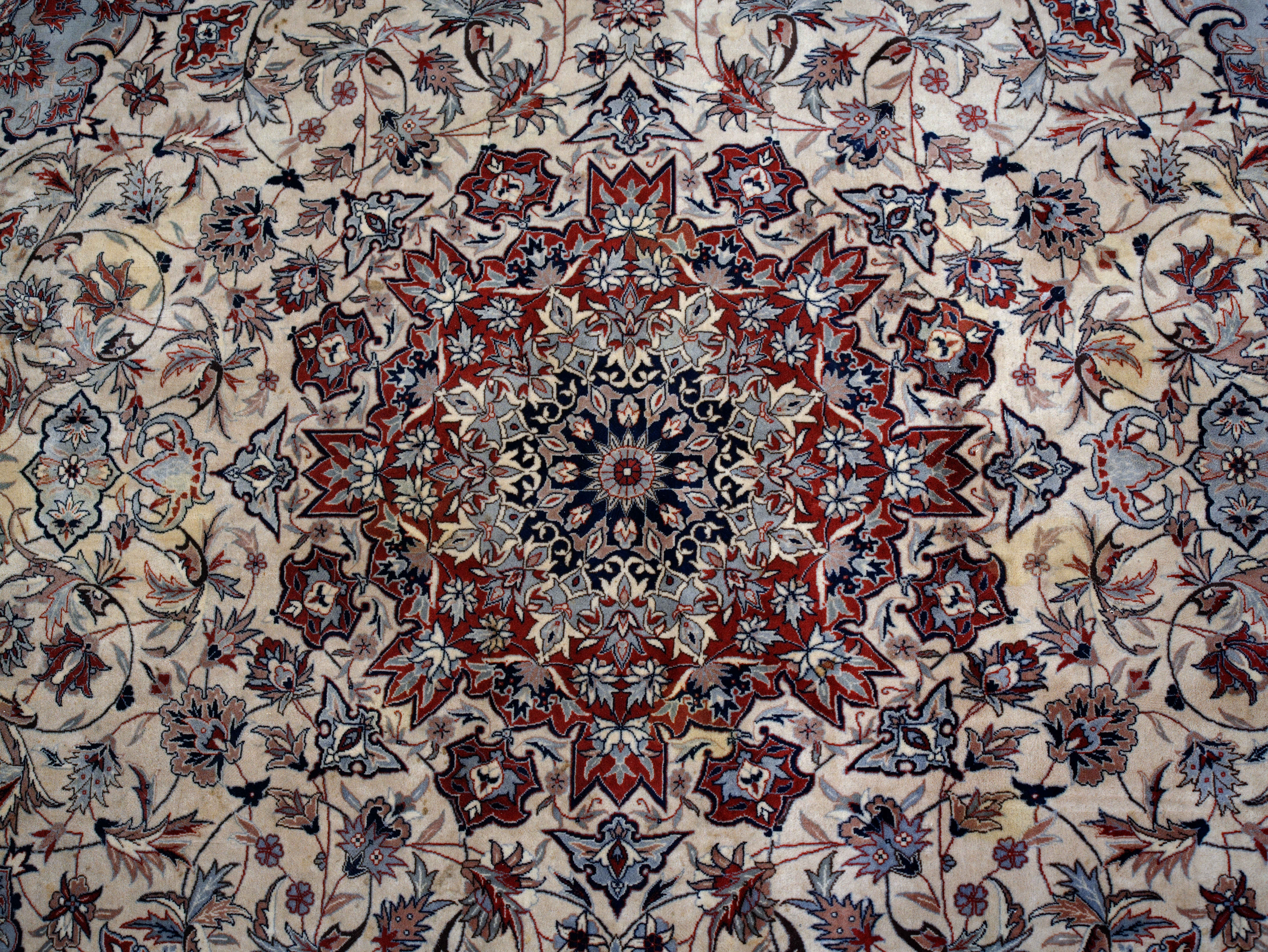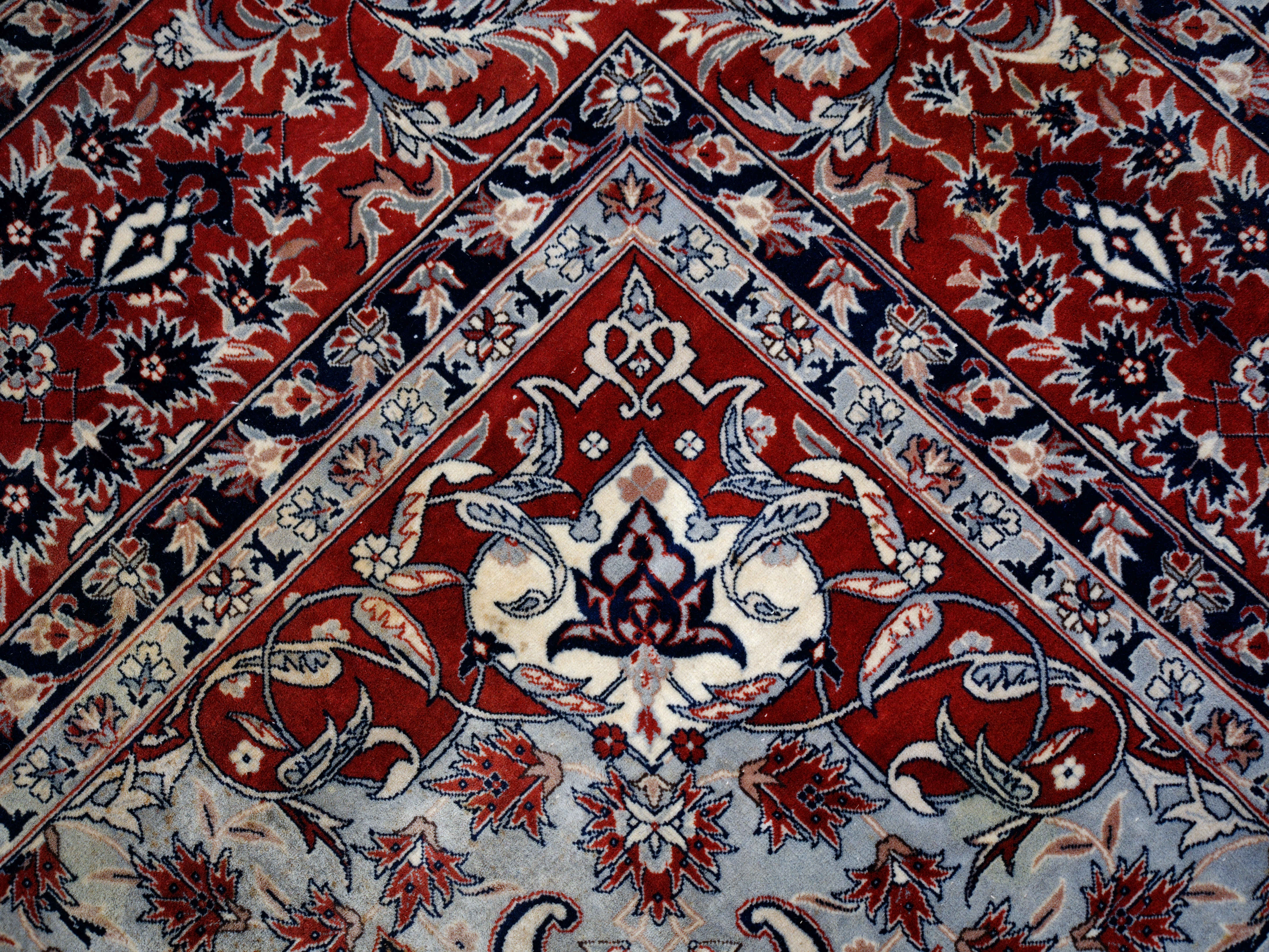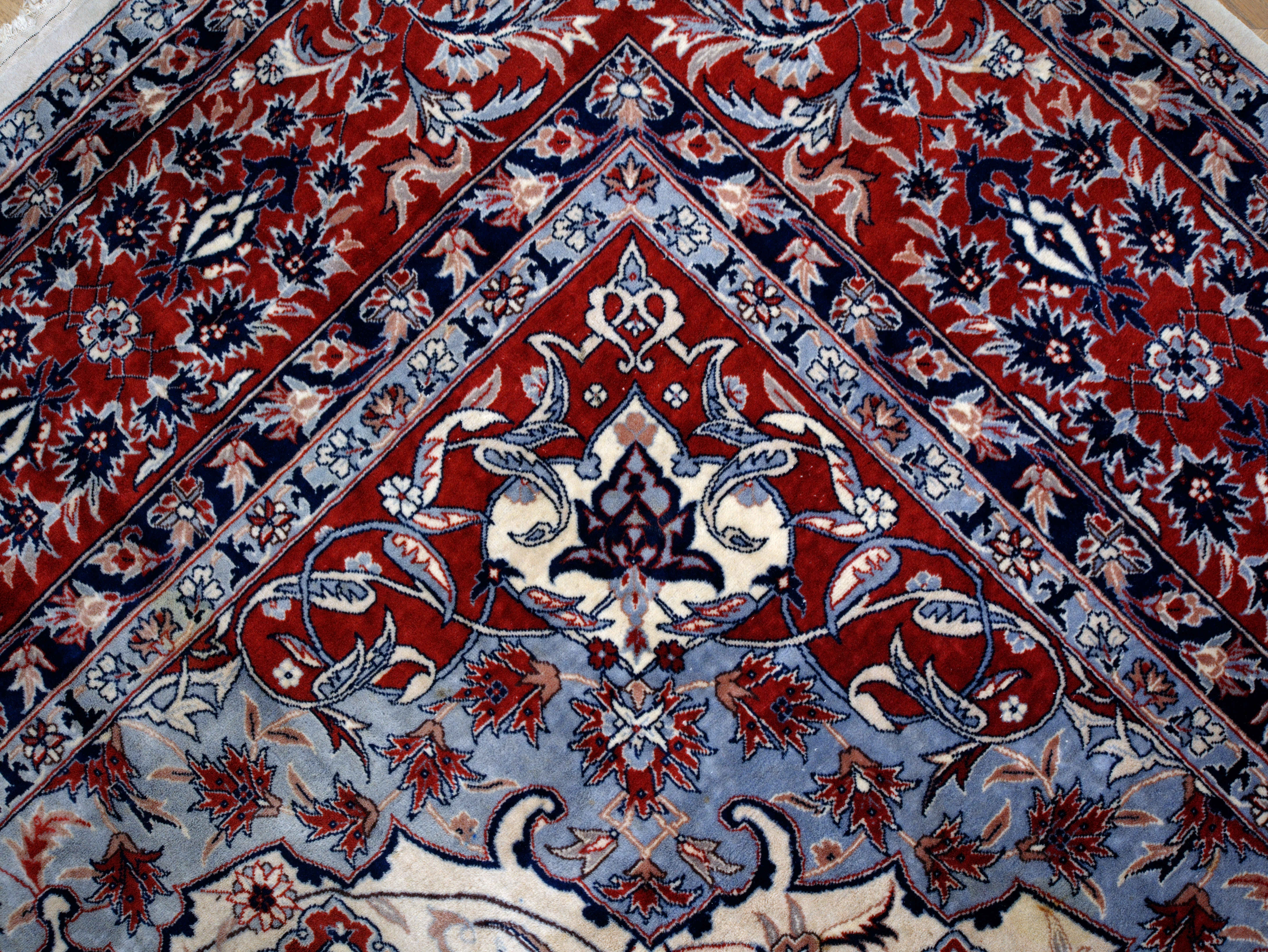 Excelentní kvalita tohoto perského koberce je viditelná na první pohled. Nejjemnější kork vlna na bavlněné osnově. Hustota vazby 360.000 uzlíků na m2. Nádherný florální vzor s centrálním medailonem. Bohatá florální bordura. Koberec je jemný na dotek a měkký na došlap. Koberec byl uvázán asi před 30 lety v městských dílnách Tabrizu v severozápadním Íránu. Jeden z nejkvalitnějších koberců vůbec. Stav: dobrý, bez prošlapaných míst, třásně už nejsou perfektní, ale je možné je zastřihnout nebo ohnout pod koberec.