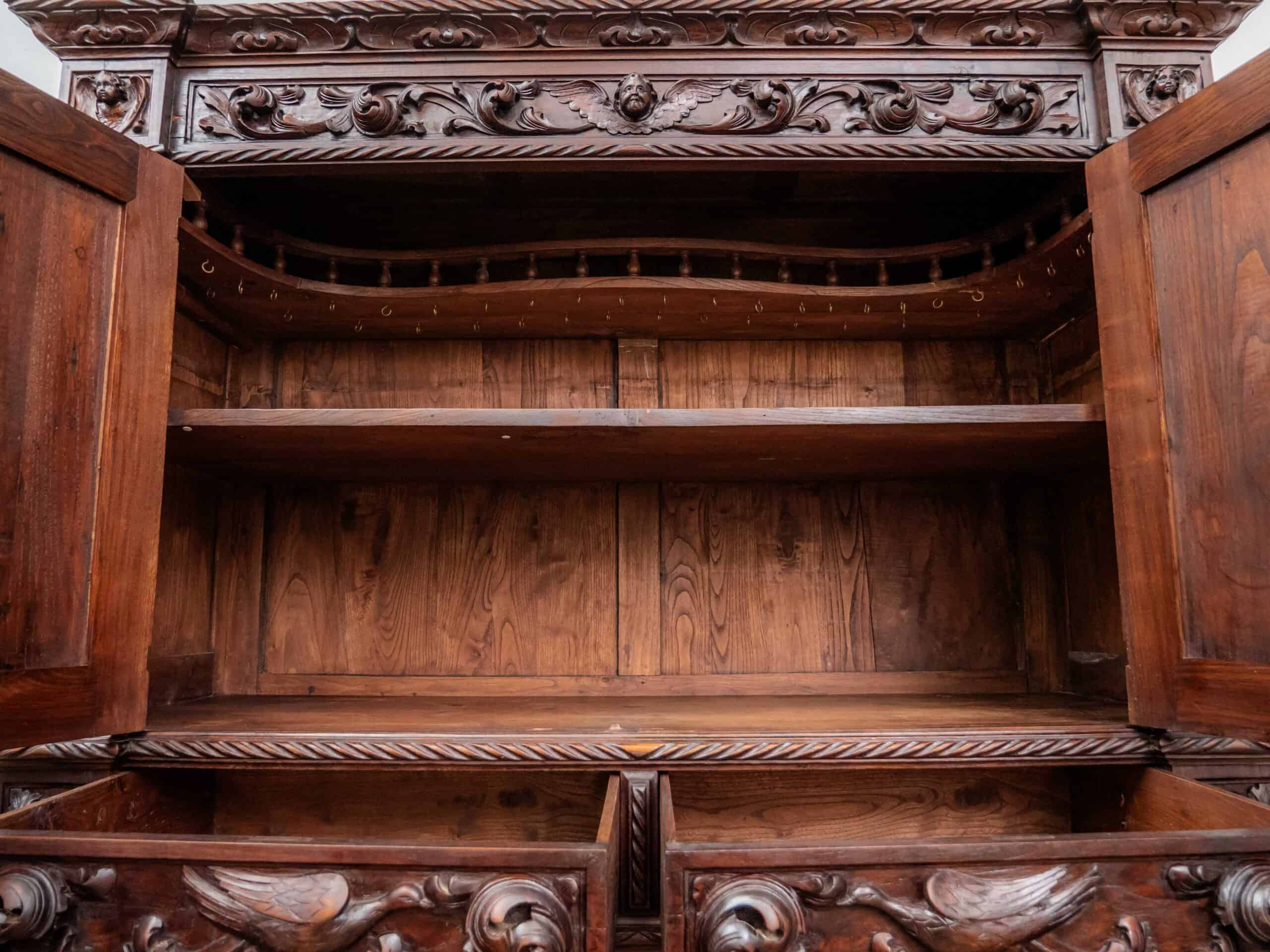 Unikátní skříň bohatě vyřezávaná v renesančním stylu. Tento kus nábytku reprezentuje Lyonskou školu, která byla trochu odlišná od zbytku Francie. Tato skříň je příkladem francouzského nábytku z konce 16. století, ovlivněného italskými, antickými a fontainebleauskými vlivy.