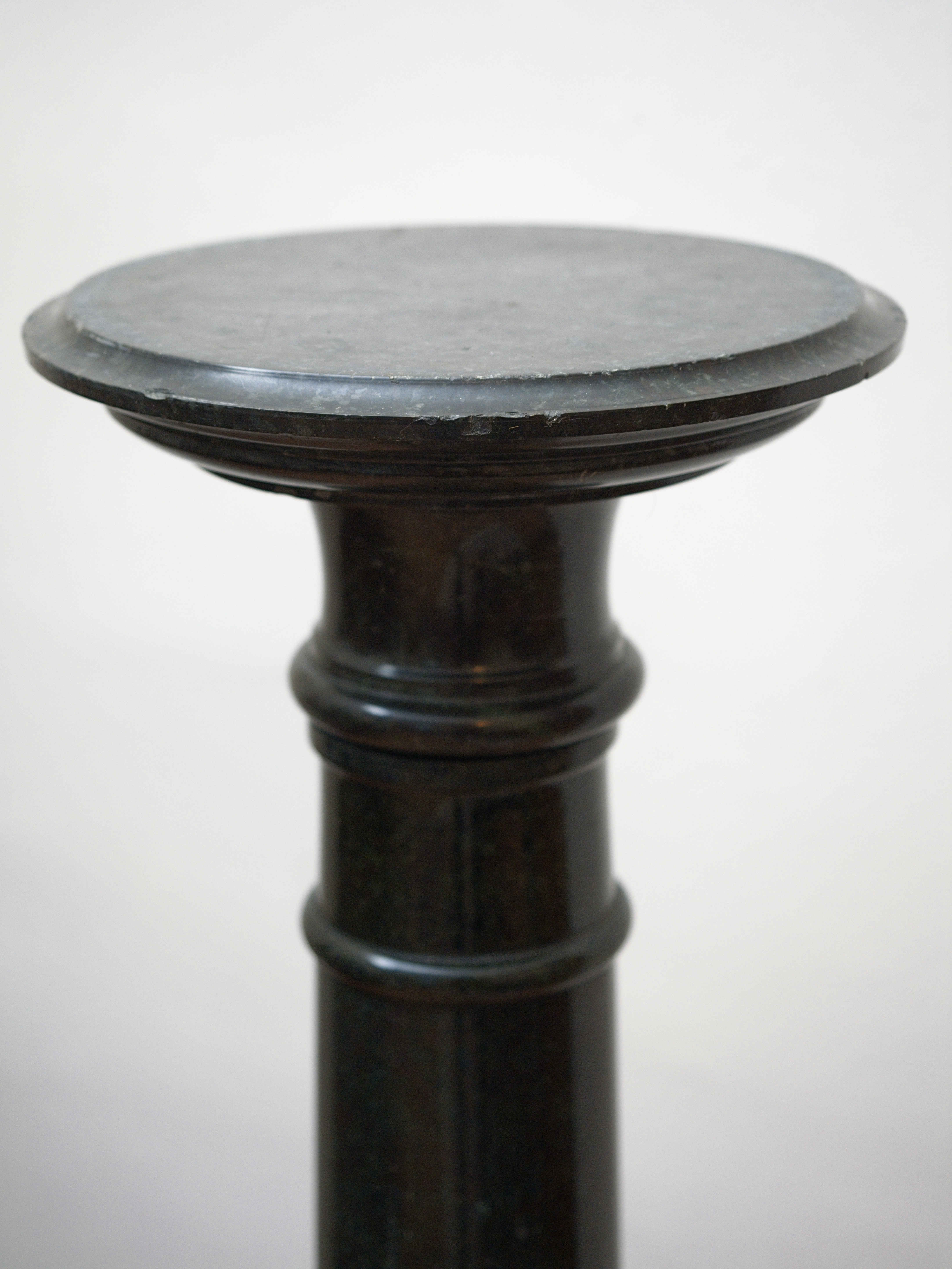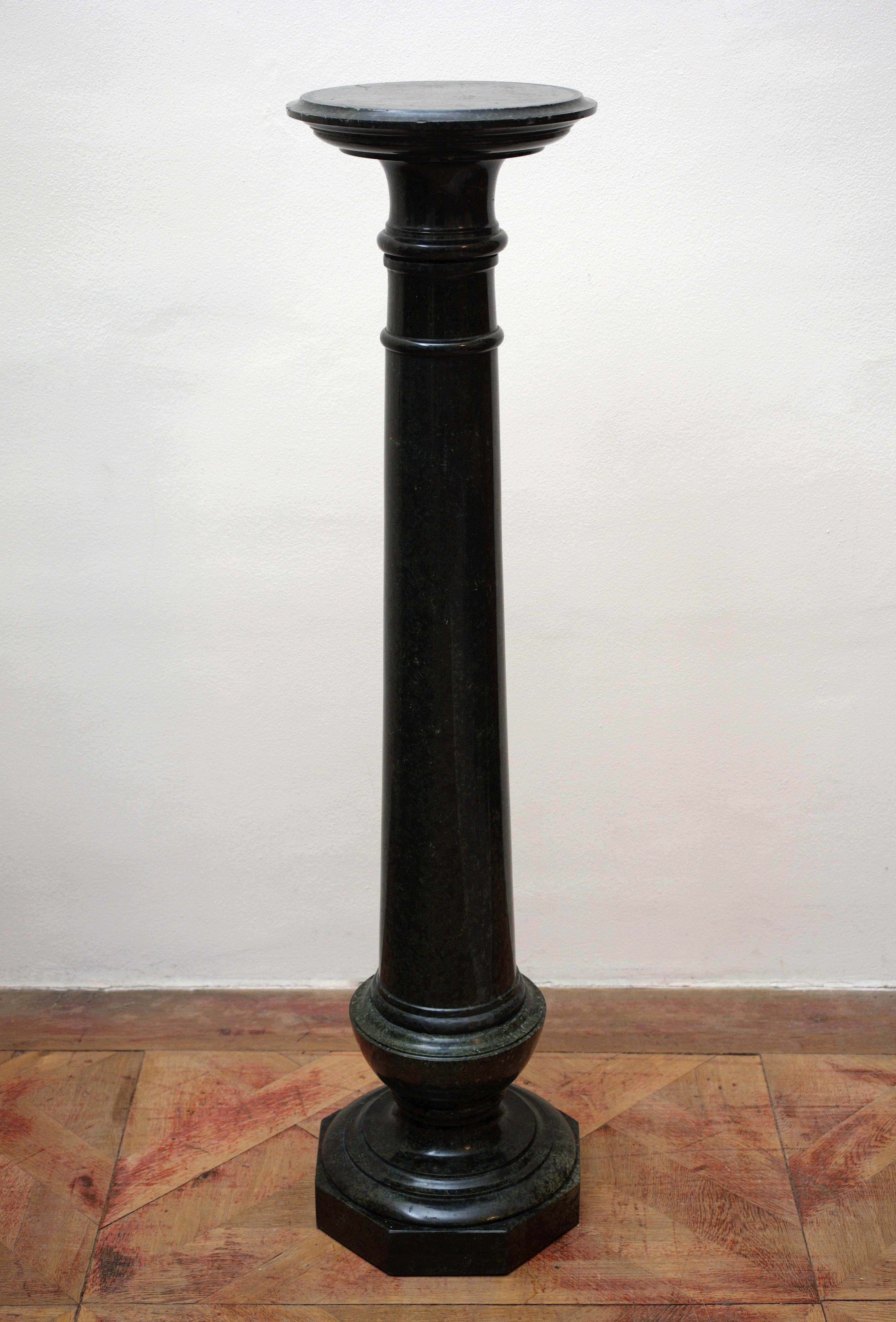Francouzský mramorový podstavec z období první poloviny 19. století, přibližně kolem roku 1830. Sloup je zhotoven z masivního zeleného francouzského mramoru s přirozenou kresbou kamene, která vytváří jemné tmavé i světlejší žilkování. Tento typ dekorativních podstavců vychází z neoklasicistní tradice, která byla ve Francii v první polovině 19. století velmi oblíbená a často sloužila k prezentaci soch, porcelánu nebo jiných sběratelských předmětů v interiérech aristokratických domů a měšťanských salonů.