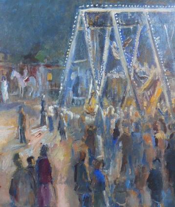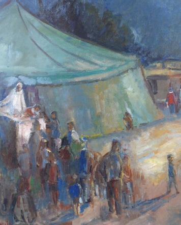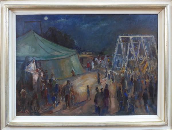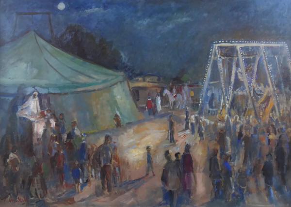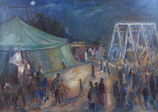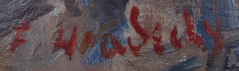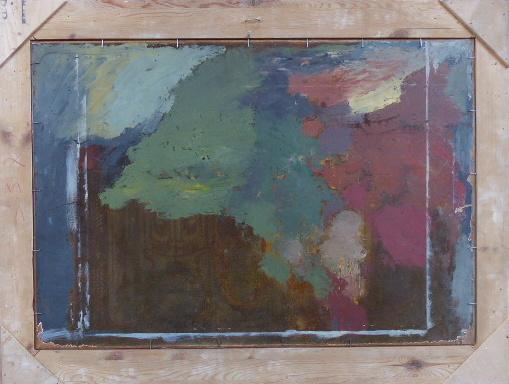Olej na překližce 65 x 92 cm. Signováno vlevo dole. Rám 83 x 109 cm. Zezadu abstraktní malba na papíře nalepeném na dřevě.