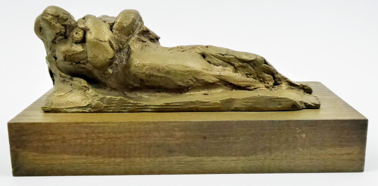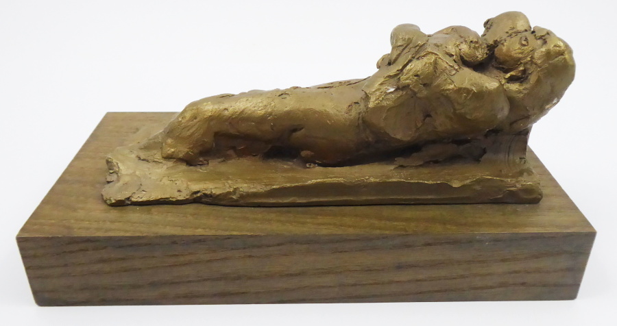 Bronz, dřevo. Autor sochy: František Navrátil (1932-2012) . Bronzová socha s motivem maminky držící děťátko v náručí. Hranolovitý dřevěný podstavec či podložka podle umístění sochy. Vzadu horní úchyt na zavěšení. Také může být socha vodorovně položená. Signováno a datováno vlevo nahoře. Česká republika, rok 1995. Výška sochy 24 cm, rozměr dřevěné podložky 26 x 13,5 cm.