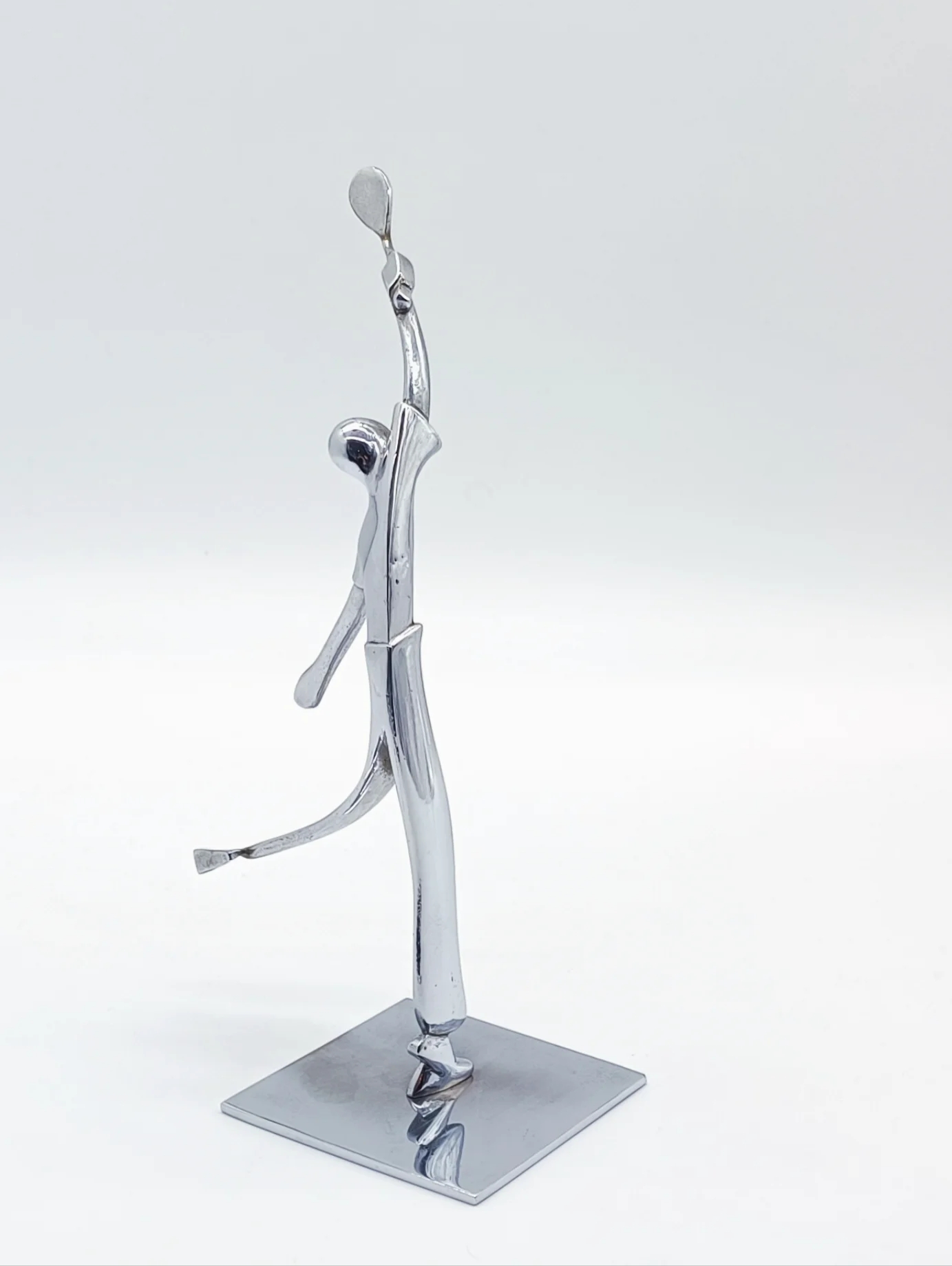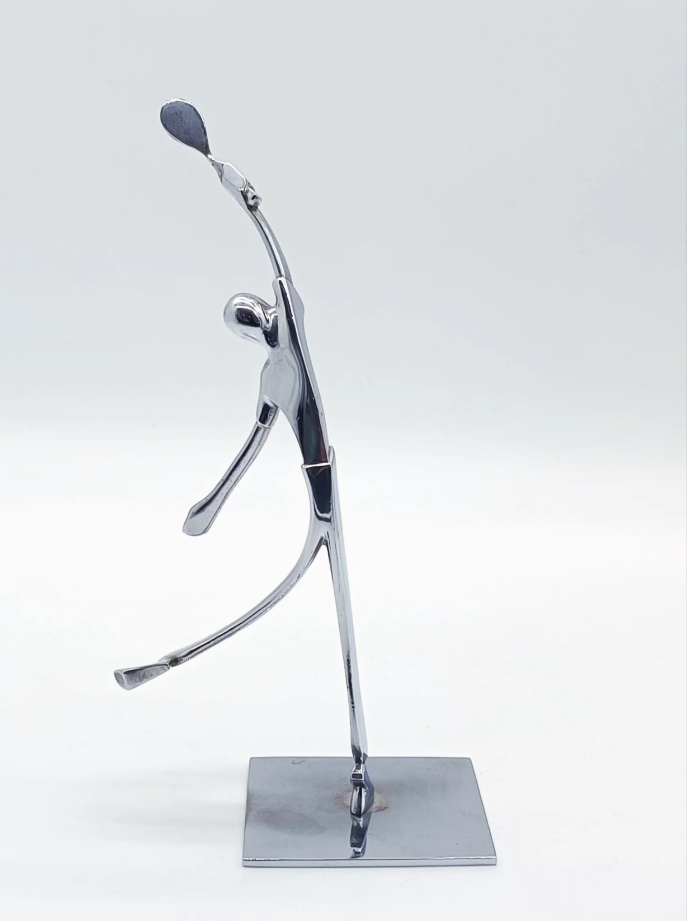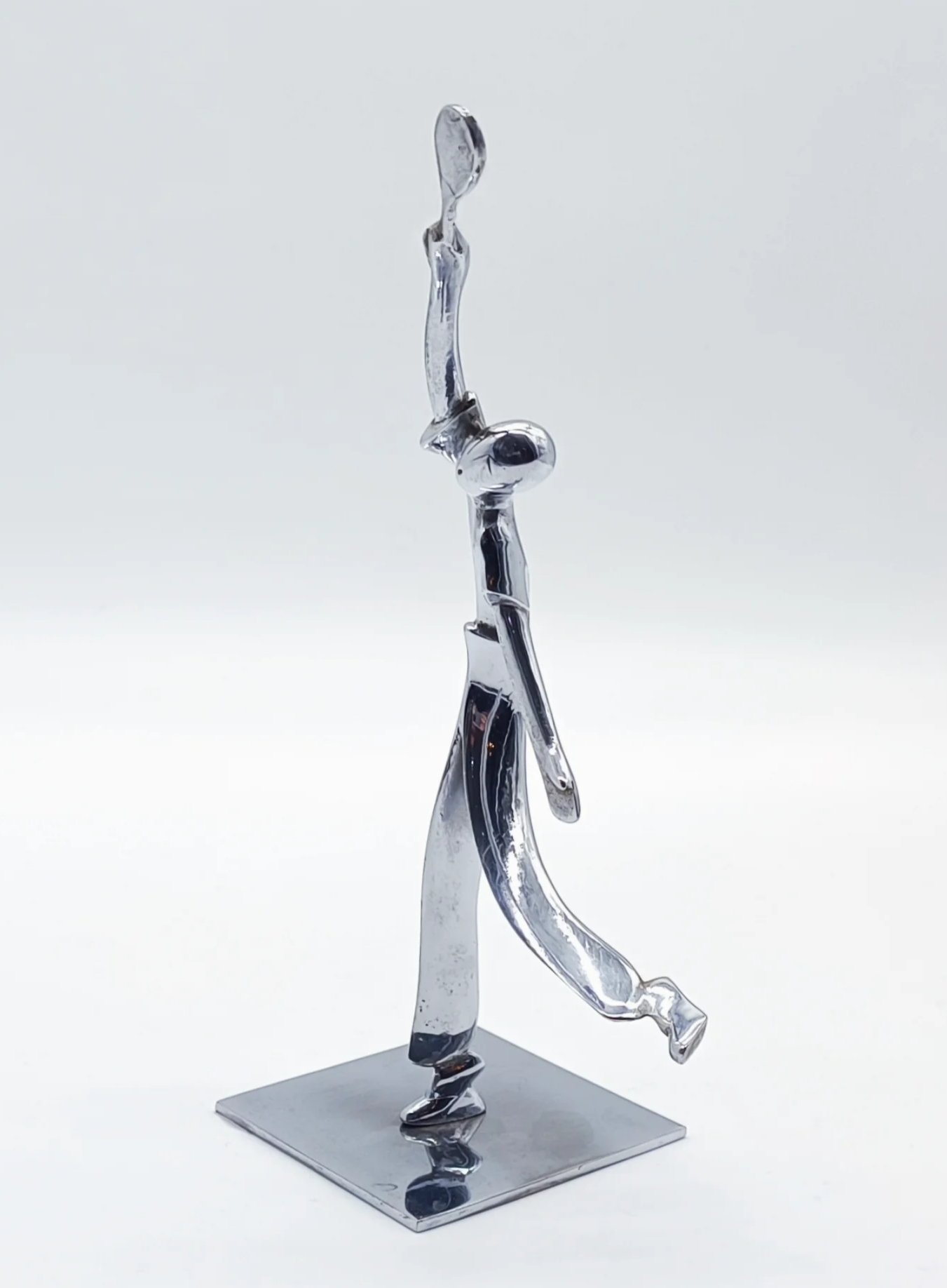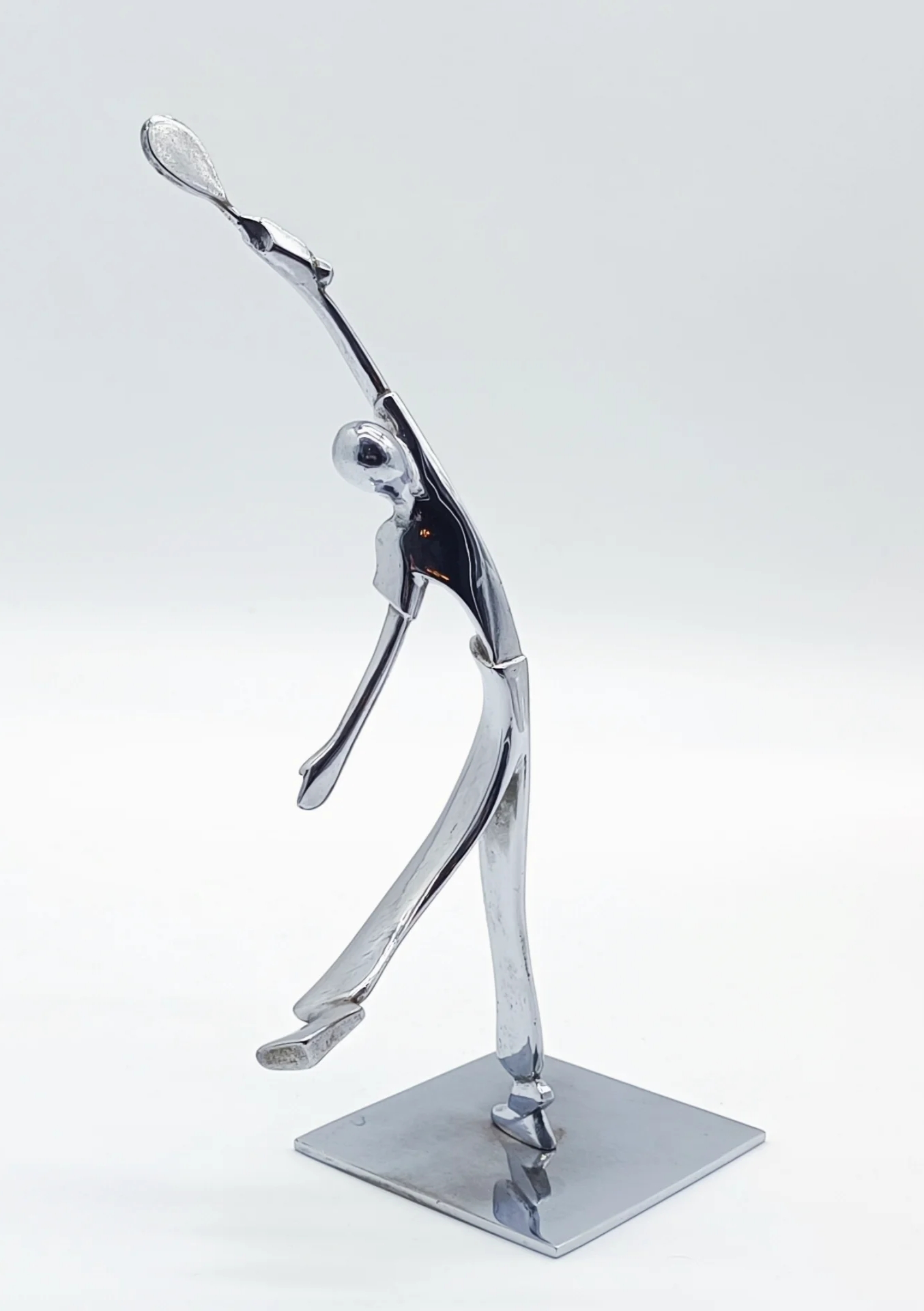 Funkcionalistická soška tenisty, chromovaný obecný kov, ve stylu Hagenauer, Rakousko, 30. léta 20. století; výška 25 cm