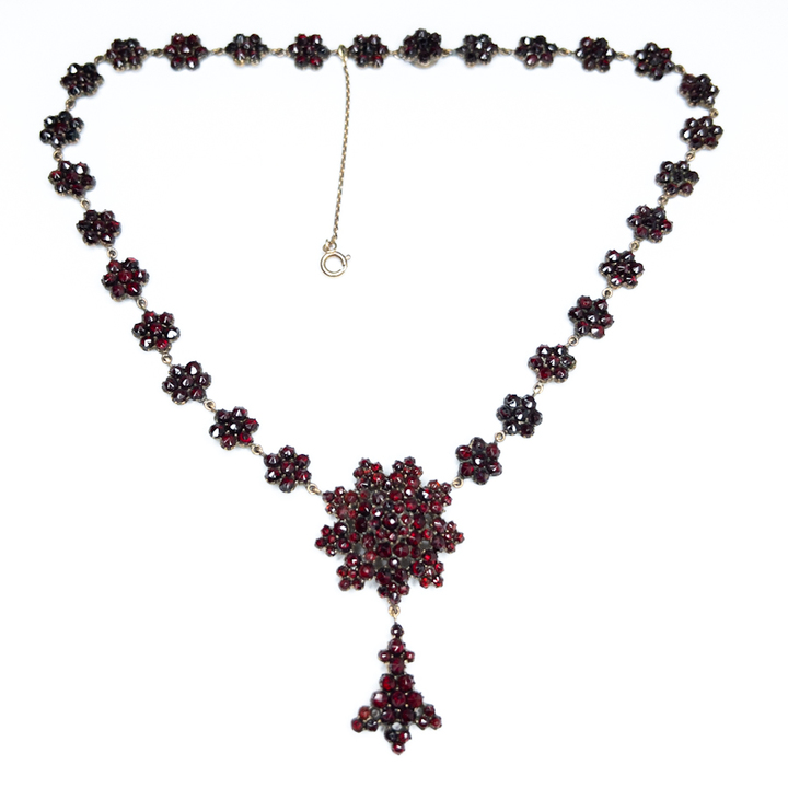 Starožitný náhrdelník s českými granáty je původem z Čech, kolem roku 1880,