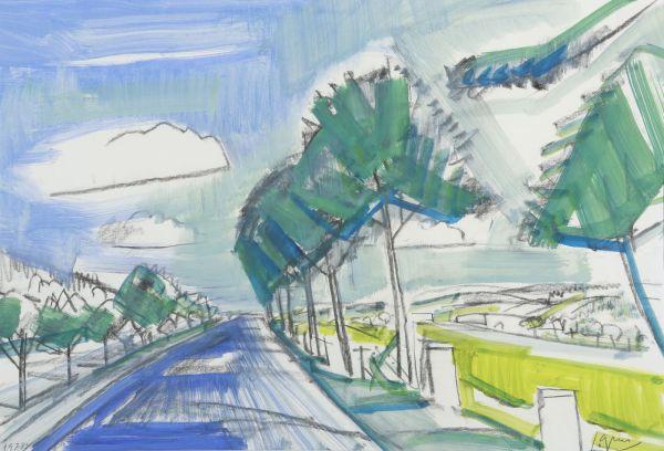 Alej, rok 1978 kombinovaná technika na papíře, 49 x 71 cm, signováno vpravo dole J. Grus, vlevo dole 1978