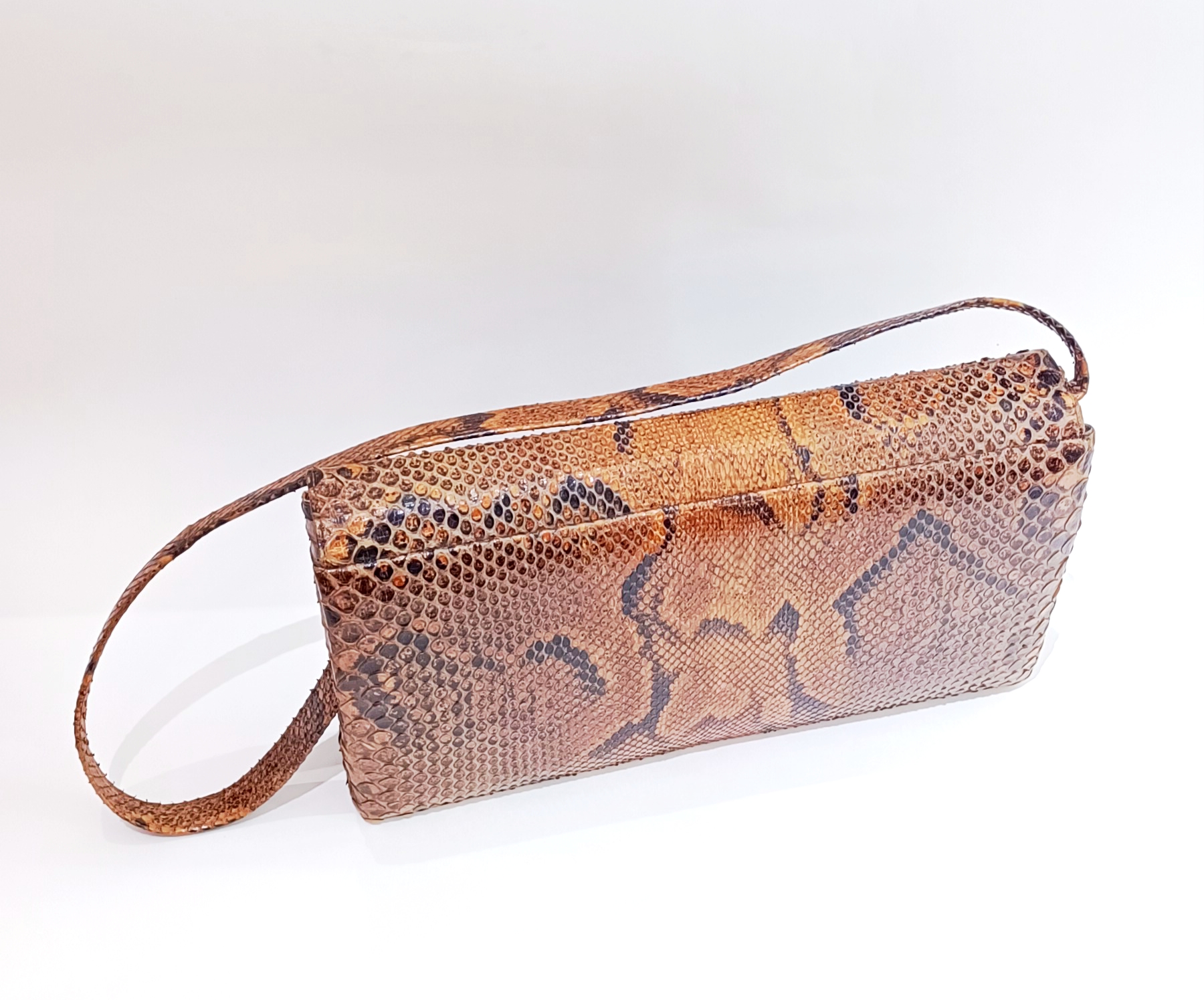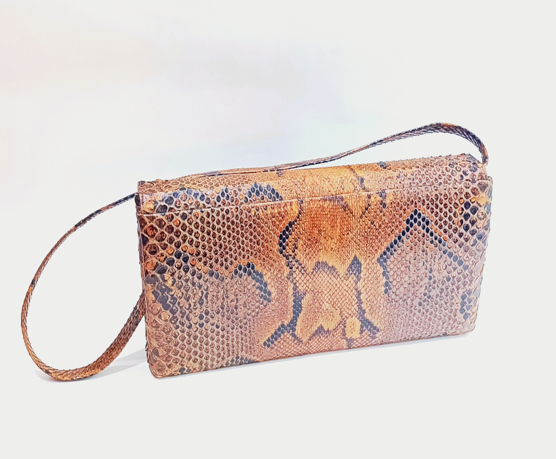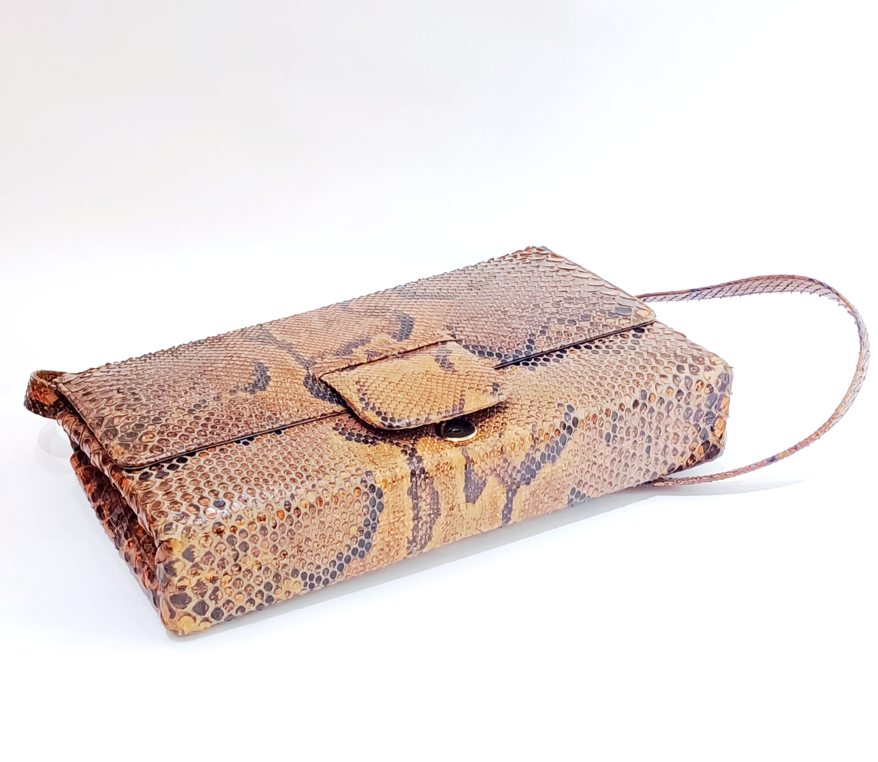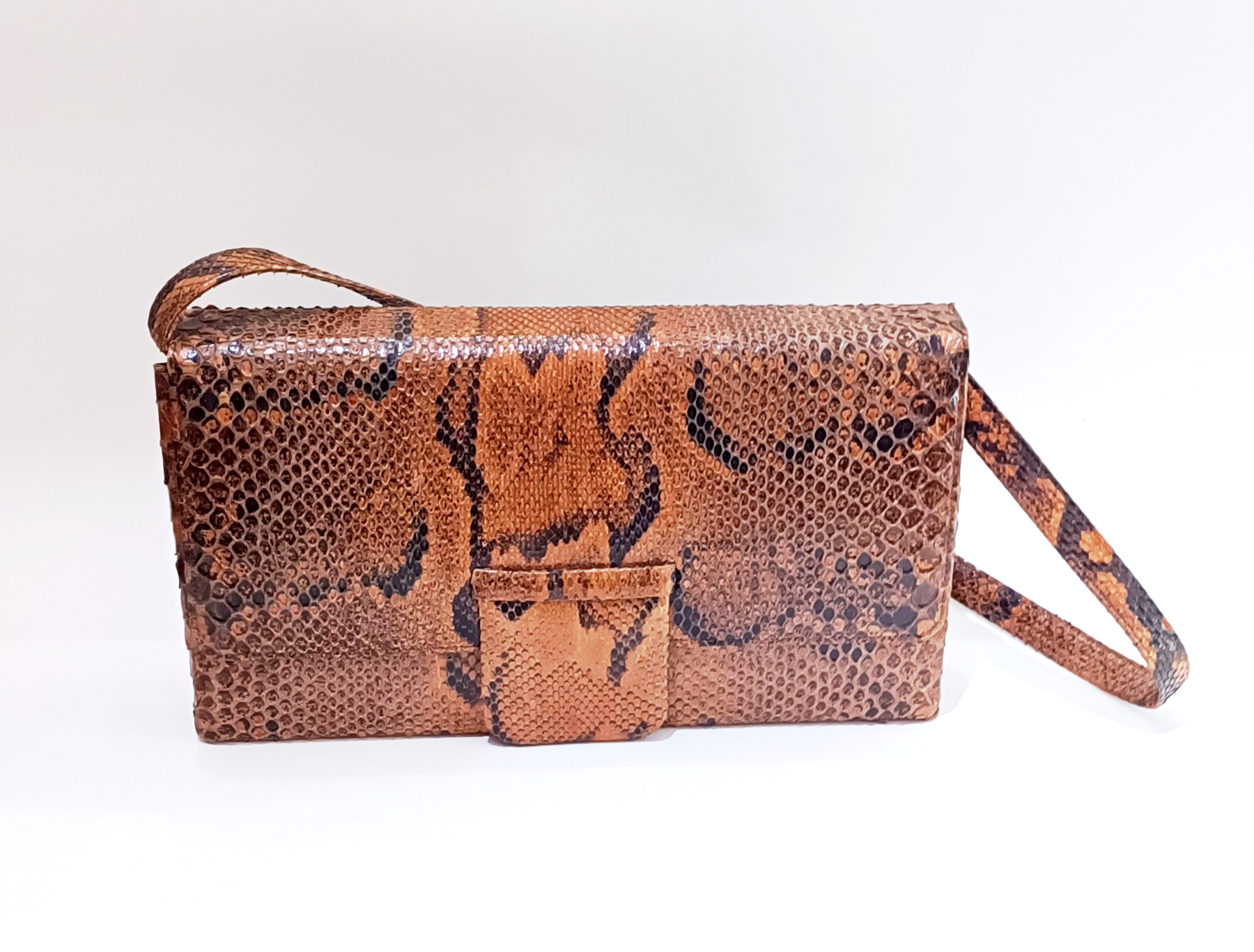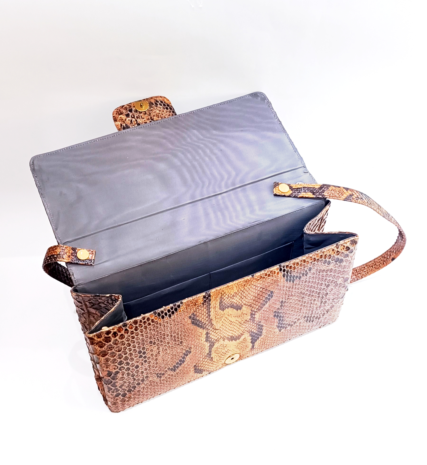 Velká kabelka z hadí kůže, 60. léta 20. století; délka 33,5 cm, výška 19 cm, hloubka 7 – 13 cm, výška ucha je volitelná 36 – 38 cm