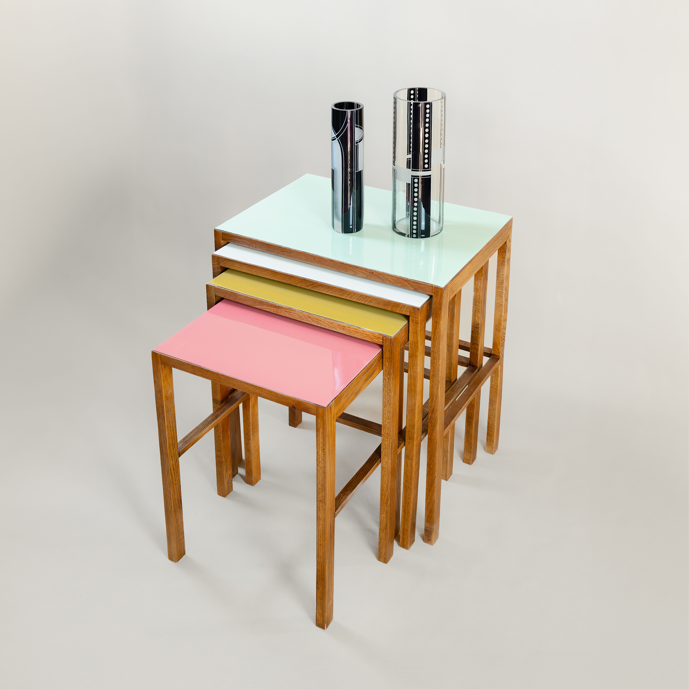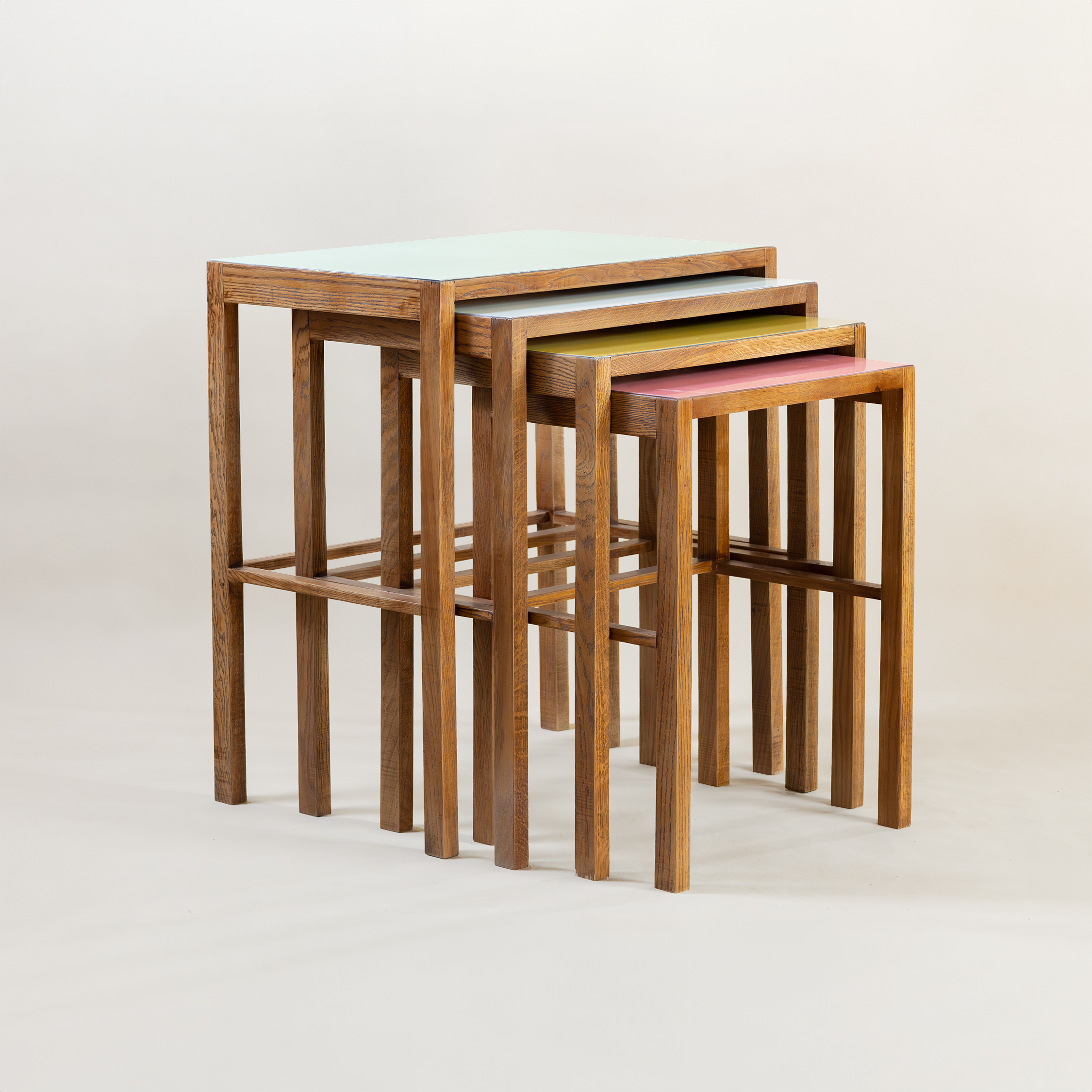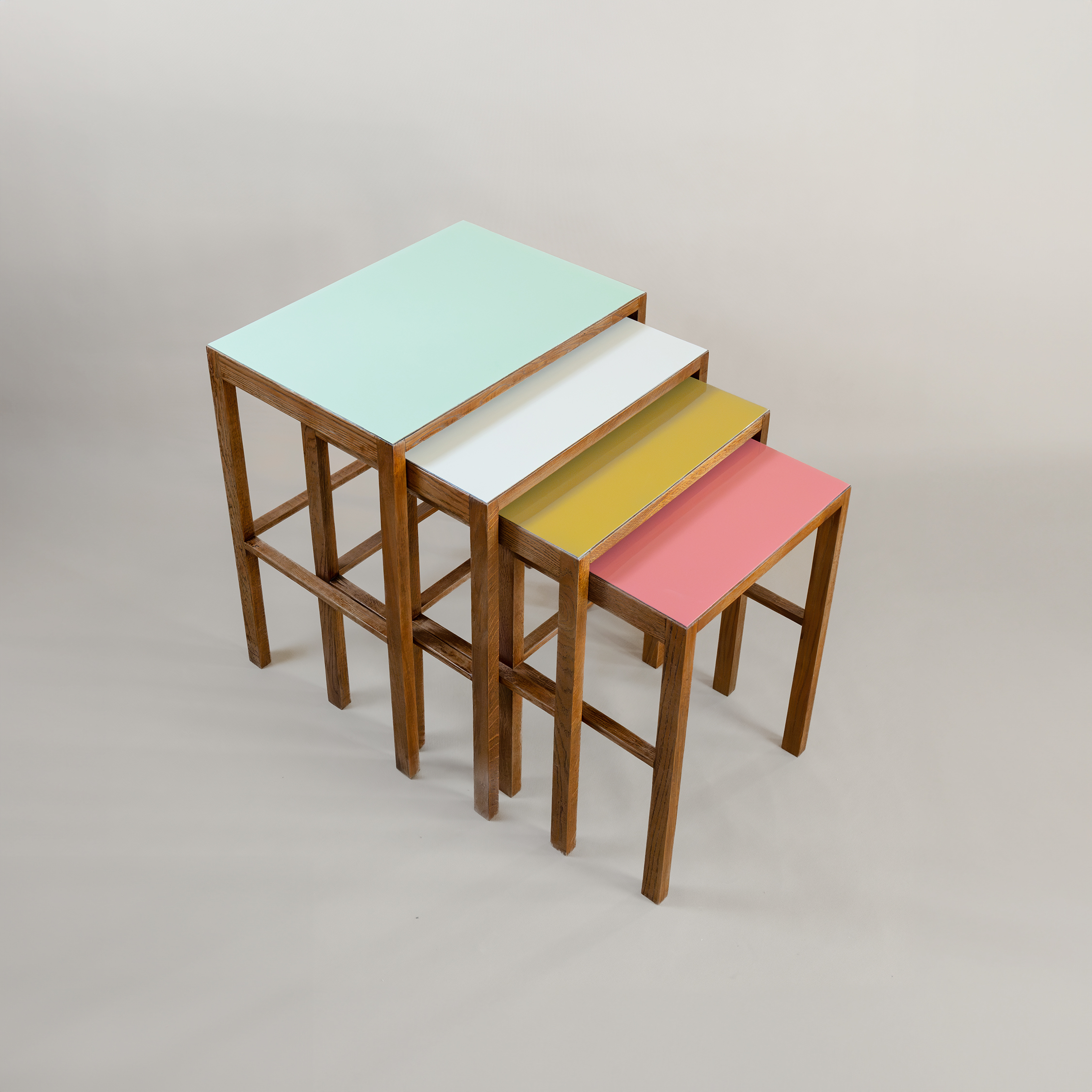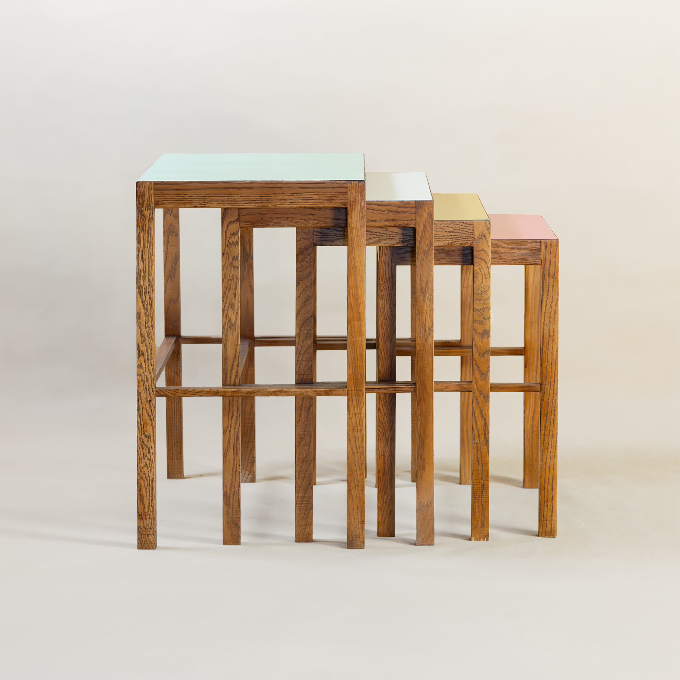 Původ-Čechy Datování-1920-1940 Designér-Jindřich Halabala Výrobce-UP závody Materiál-dubové dřevo mořené, vrchní umakart deska v barvě Rozměry-v70. š61. h43 Stav-restaurováno, redesignováno Poznámka-katalogový model
