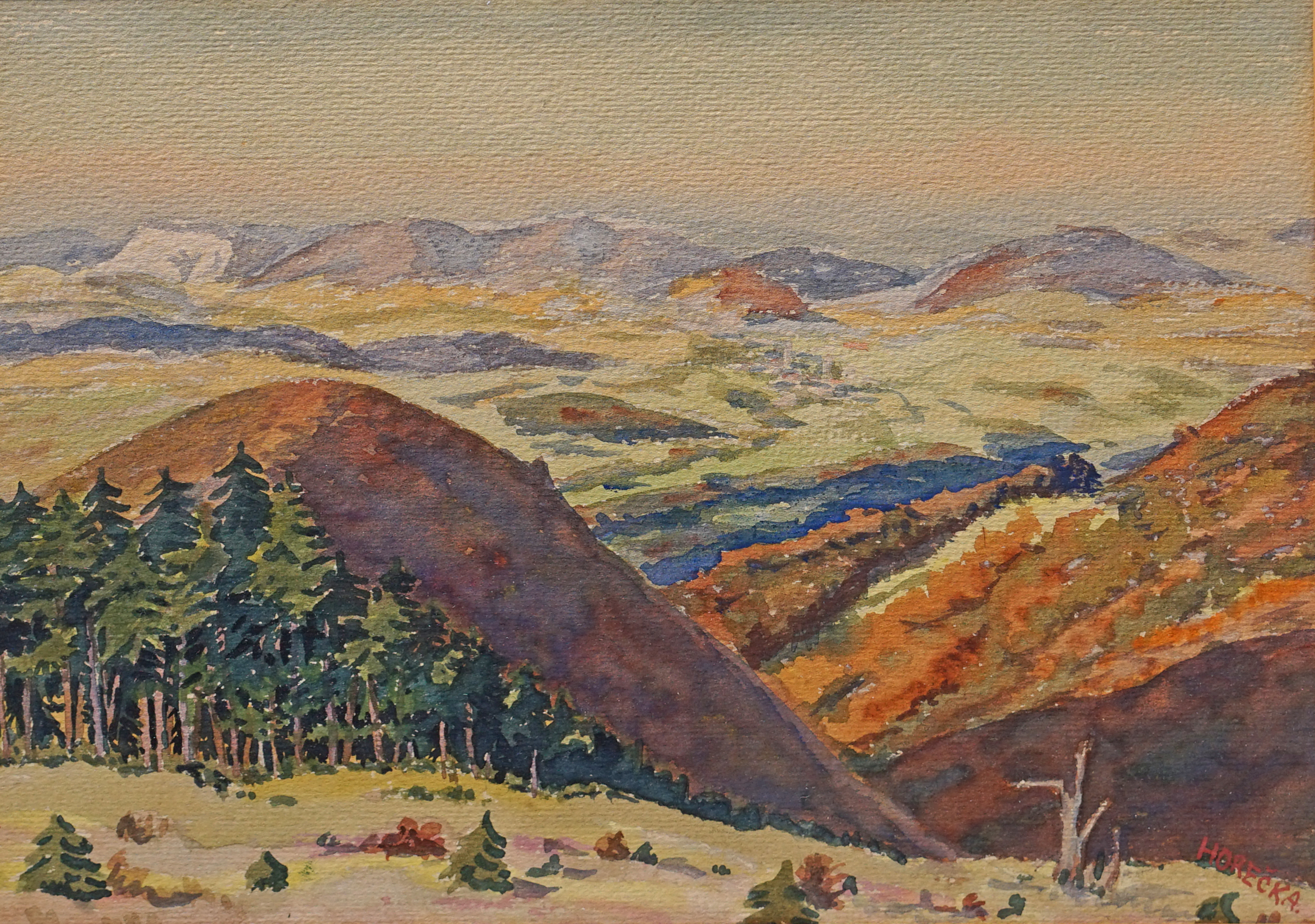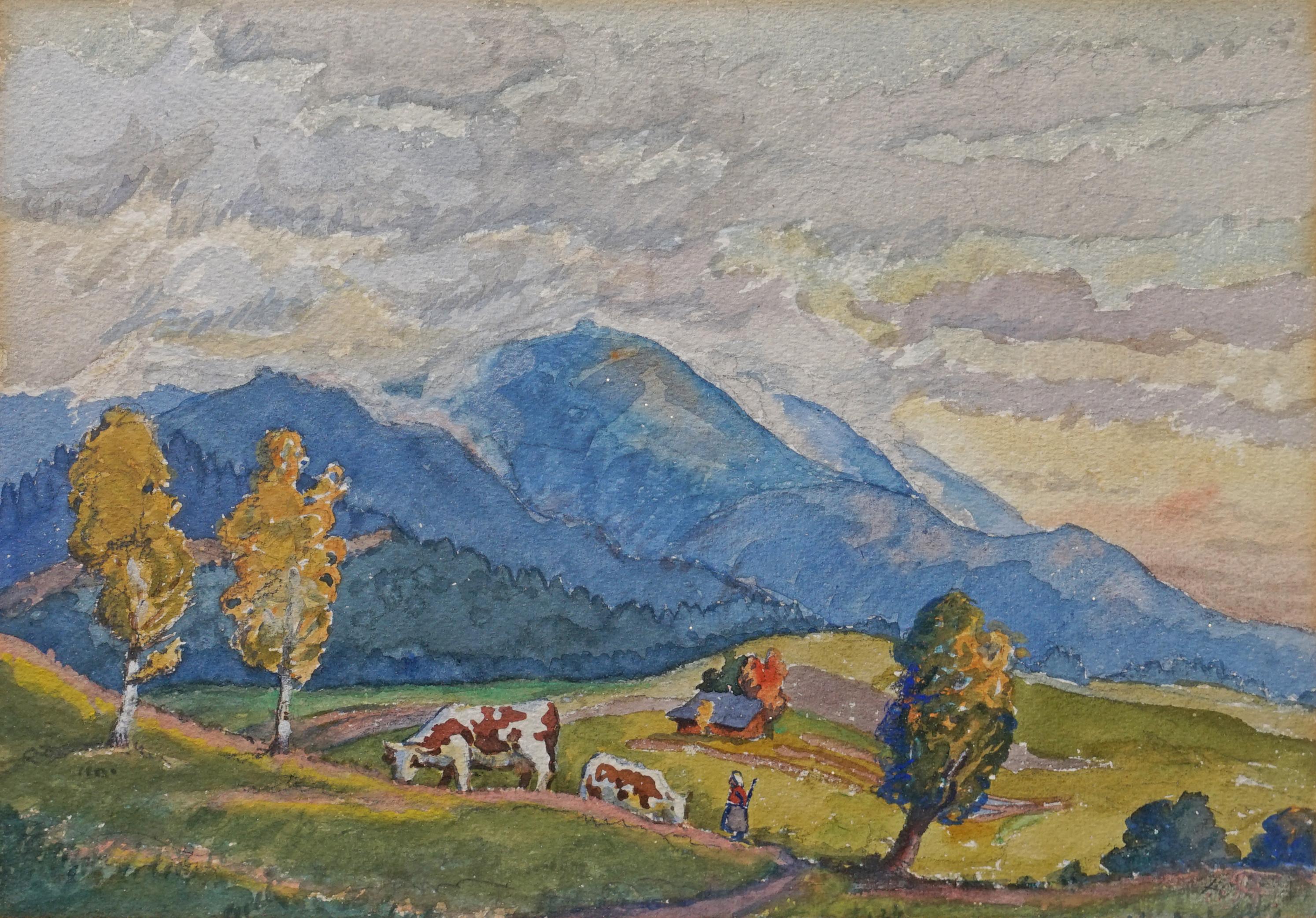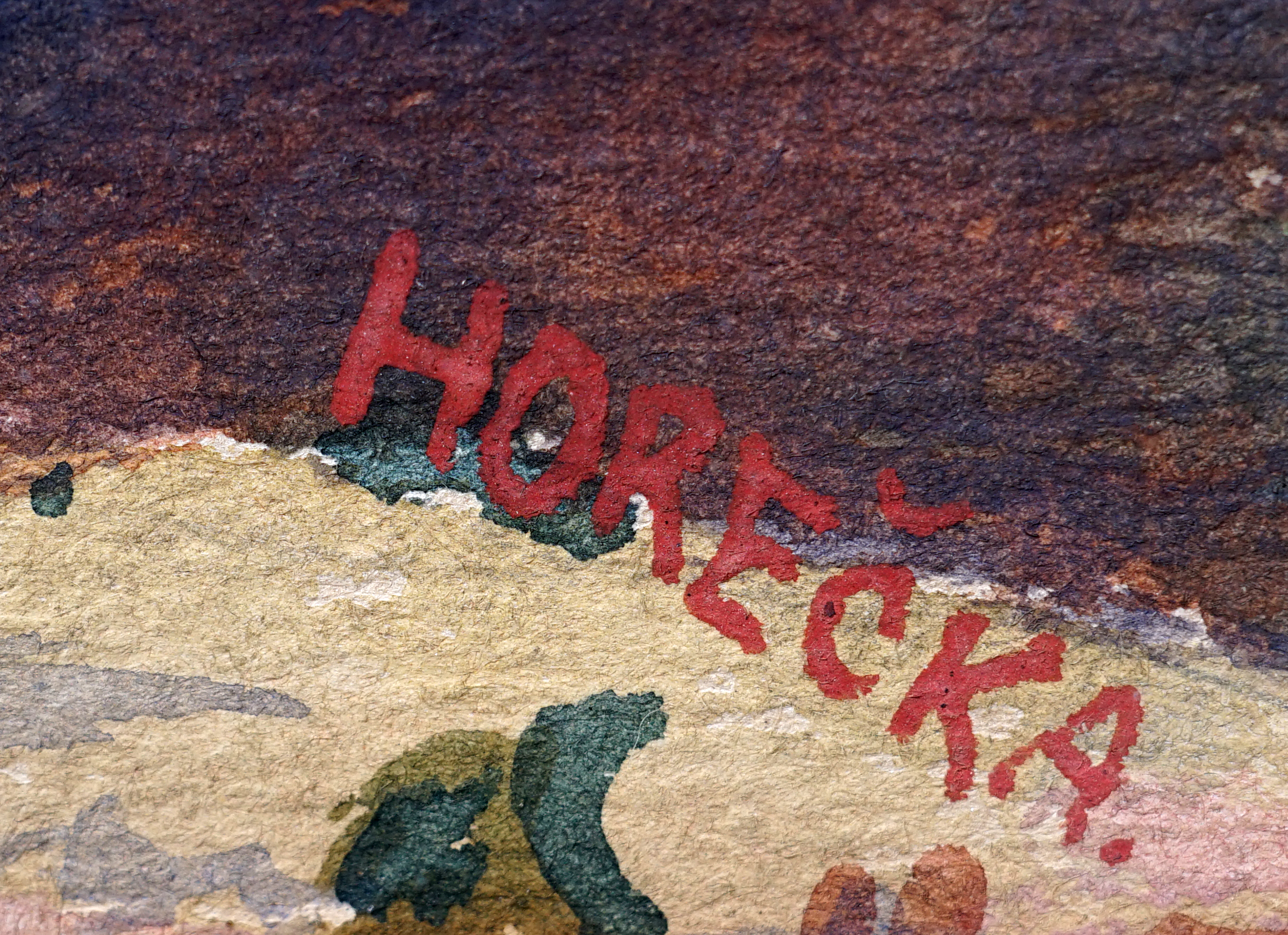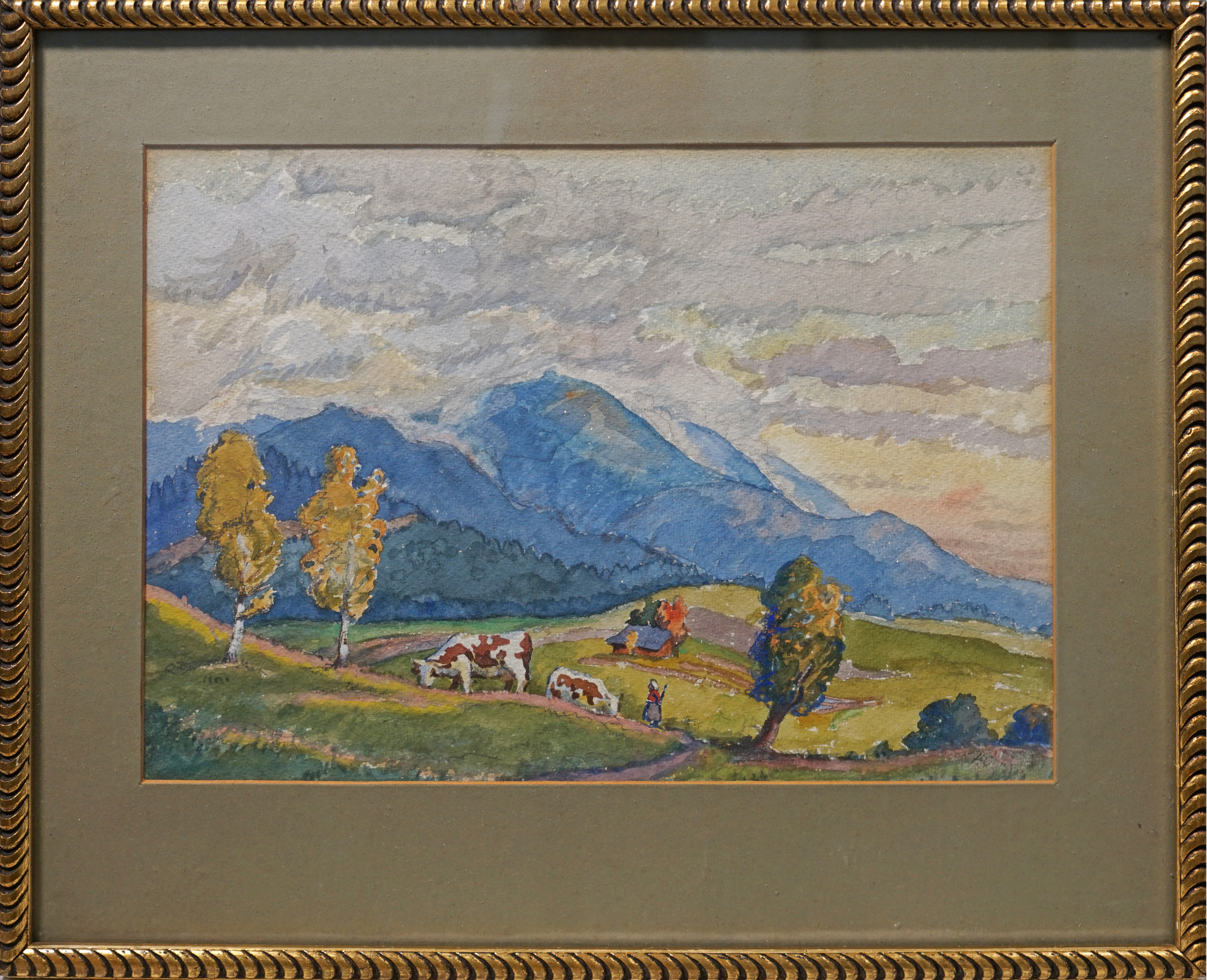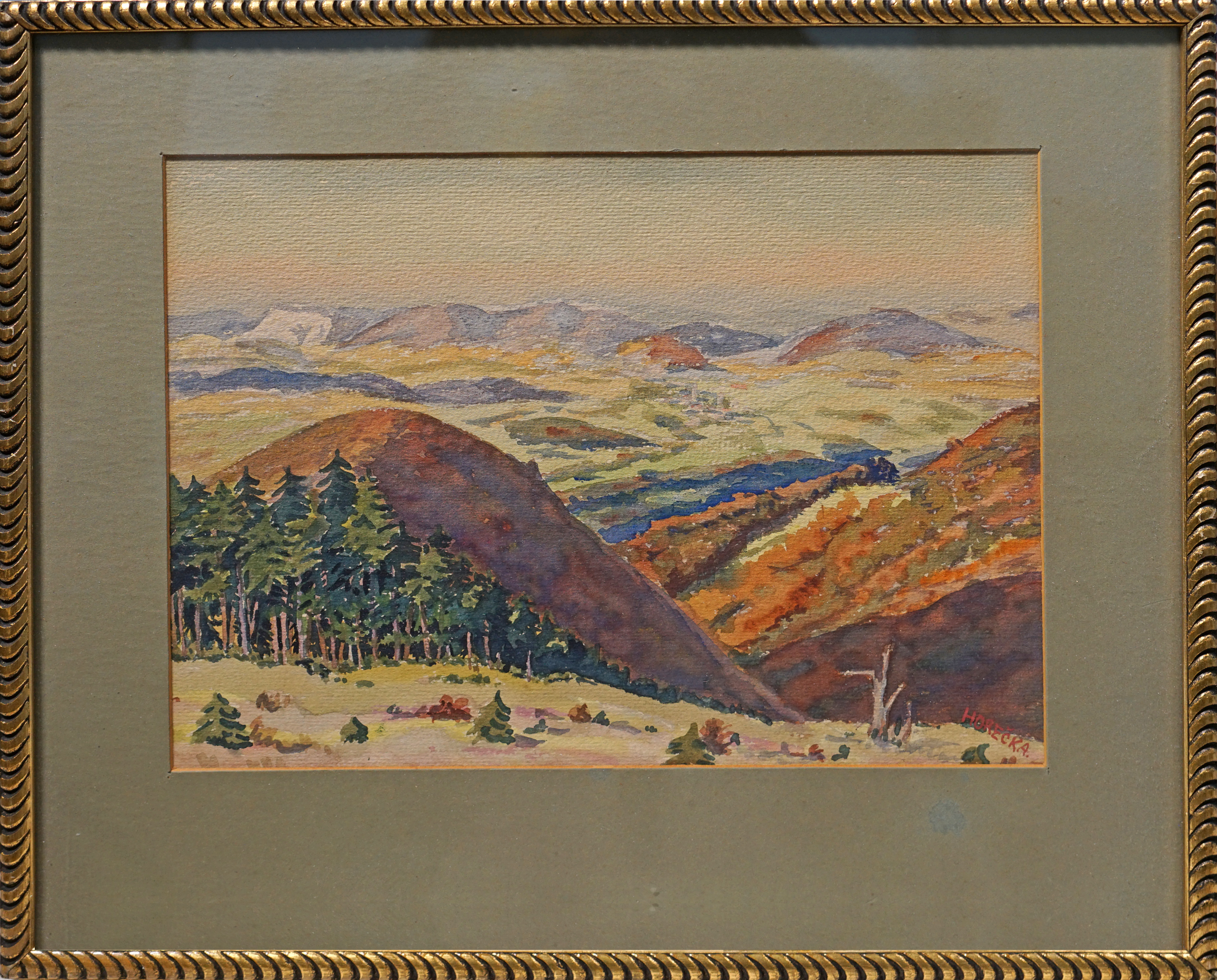 Technika: Akvarel Výška: 23 cm, šířka: 31 cm, rámování: 36,5 x 43 cm Stav: Dobrý Signatura: signováno