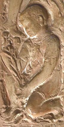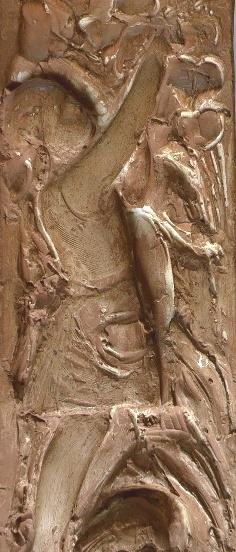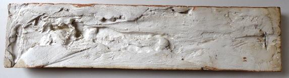 Patinovaná sádra. Návrh vlysu nebo reliéfu určeného do architektury. Hranolovitého tvaru. V horní části, reliéfní stojící postava dívky česající ovoce či květy. V dolní části, klečící chlapec zasazující stromek či květinu do země. Neznačeno. Autor návrhu – Jan Hána. Československo 1960 – 1970. Výška 54,5 cm, šířka 12,5 cm.