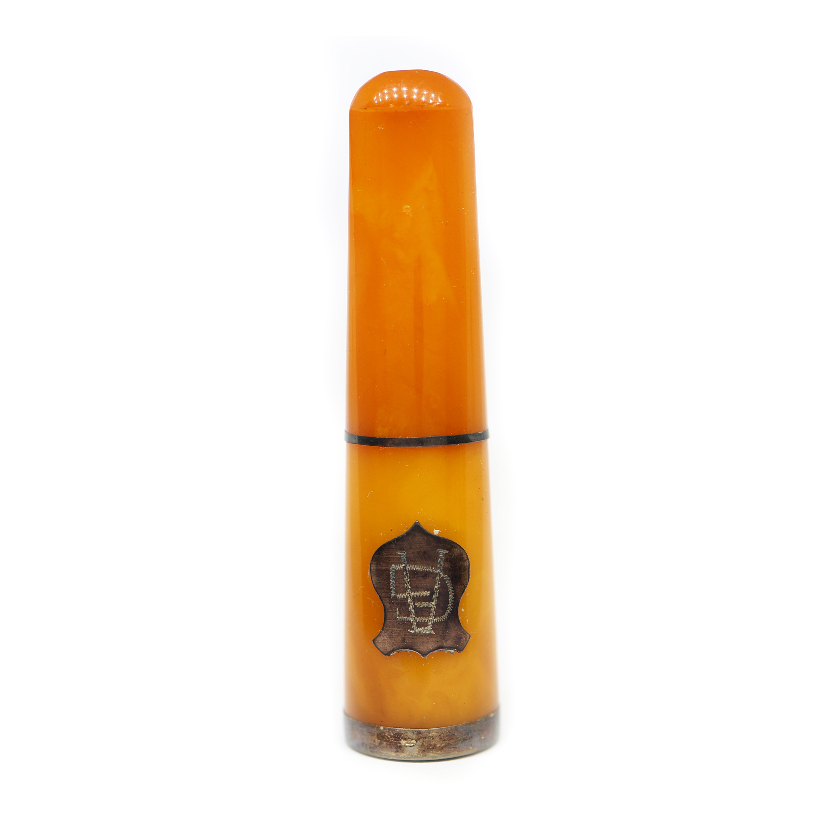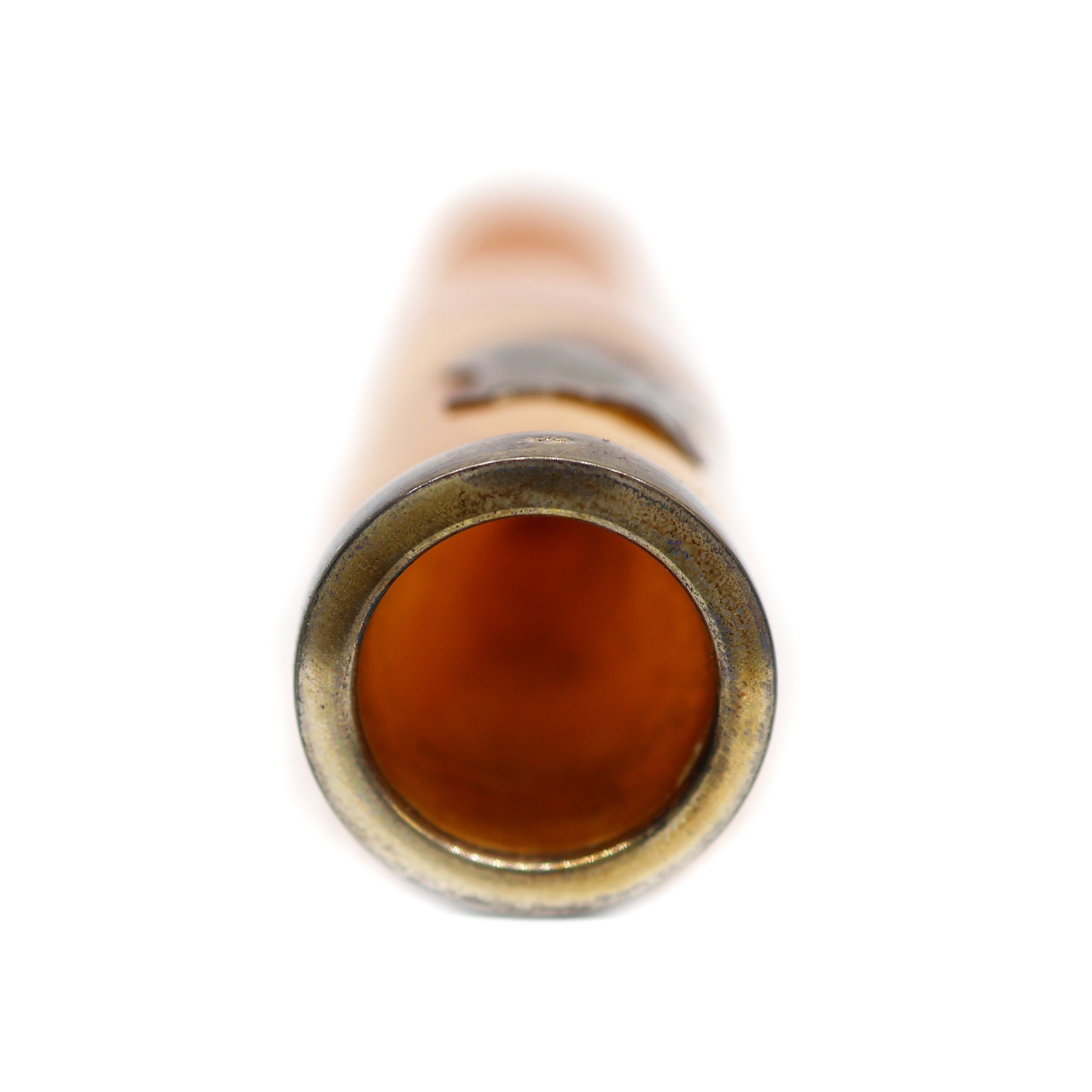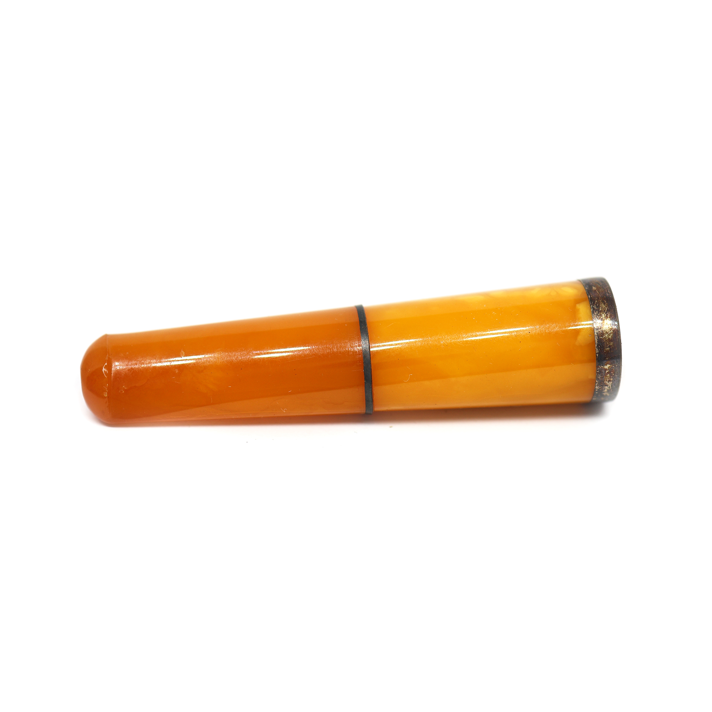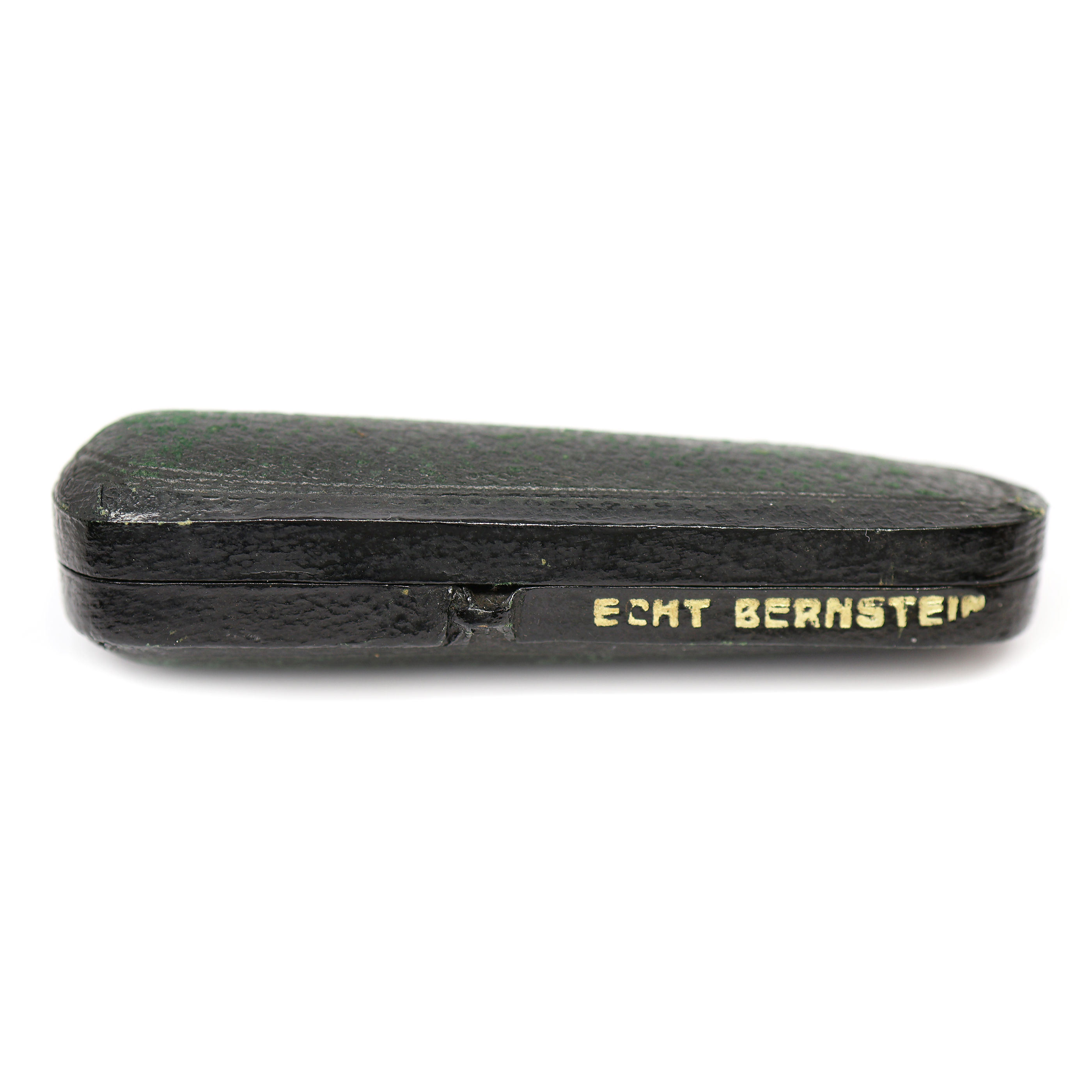 Jantarová špička s krabičkou se stříbrem V původní krabičce Rok 1930 Art deco Velmi dobrý stav Rozměry: 6,6cm délka