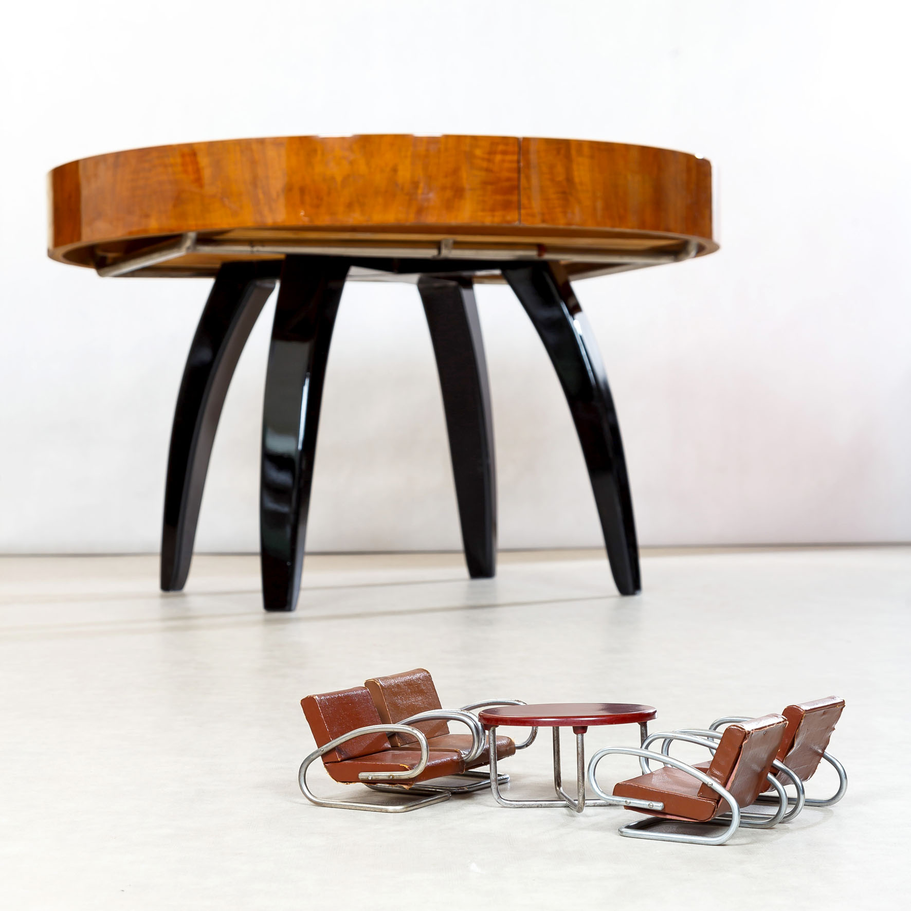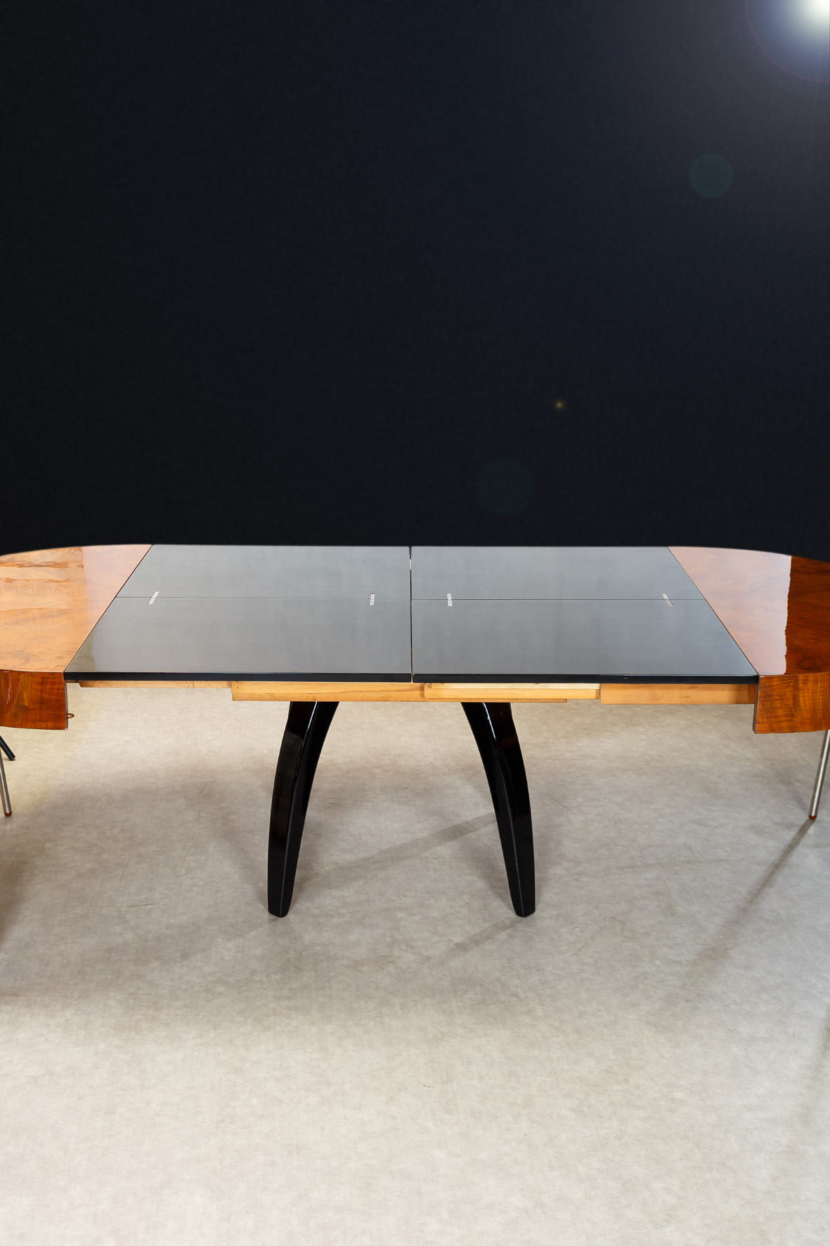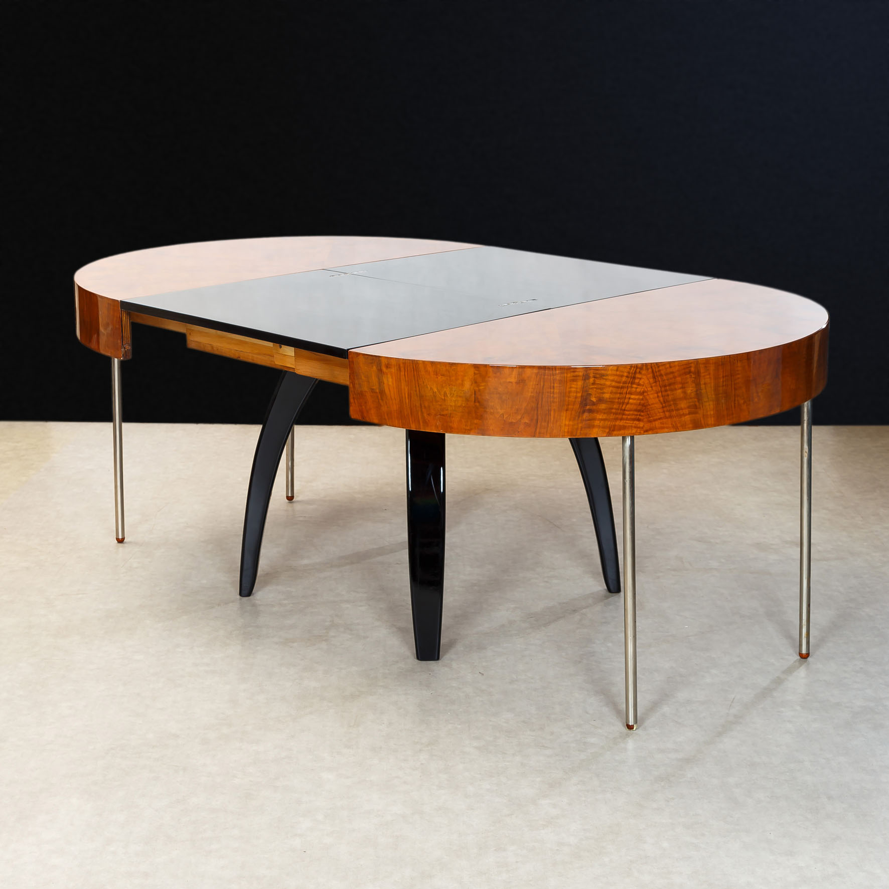 JÍDELNÍ STŮL PAVOUK-UP ZÁVODY-JINDŘICH HALABALA-STŘEDNÍ DESKY ČERNÝ LESK