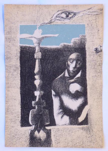 Barevná litografie 21,4 x 14,2 cm. Rok 1946.