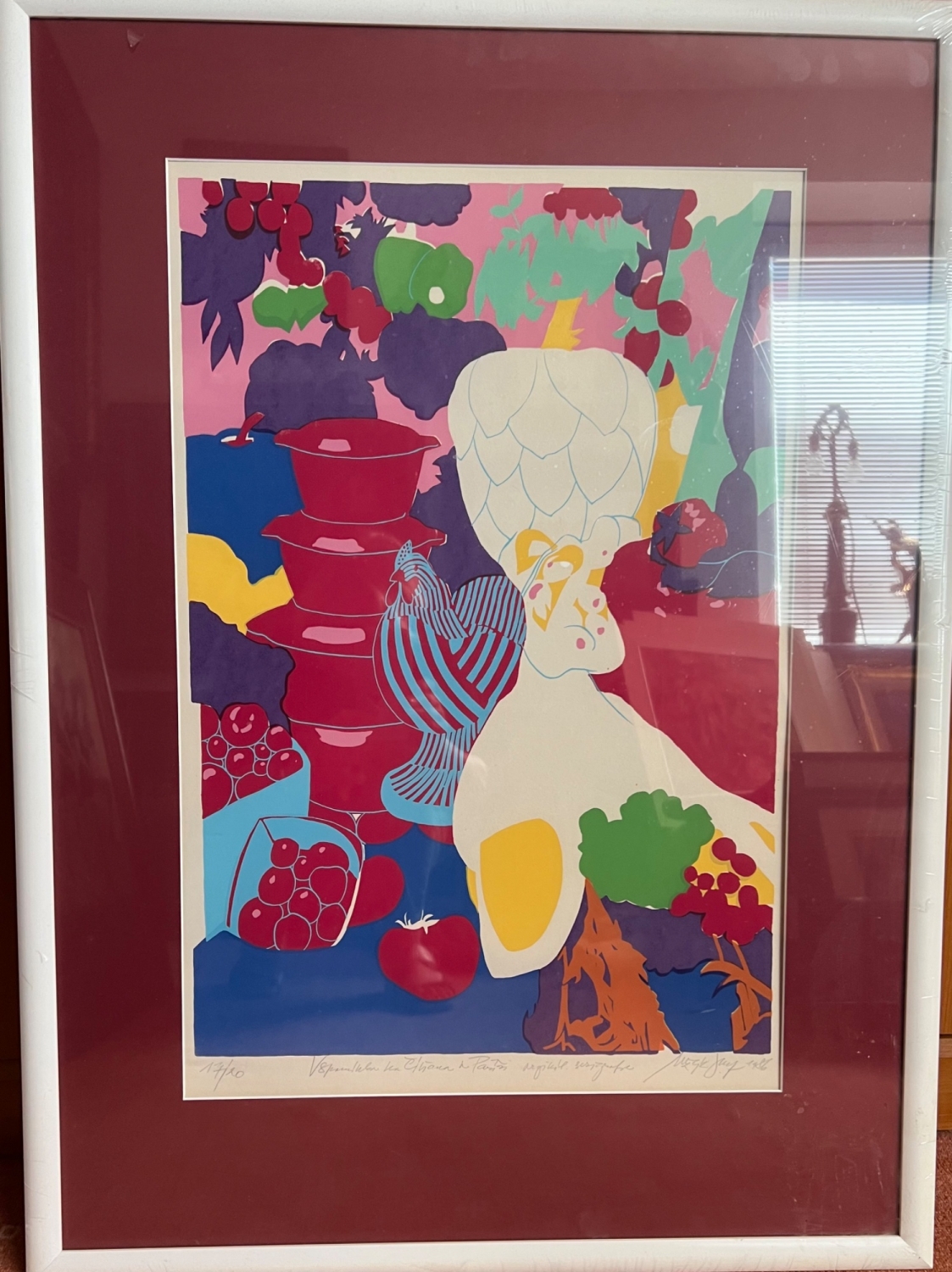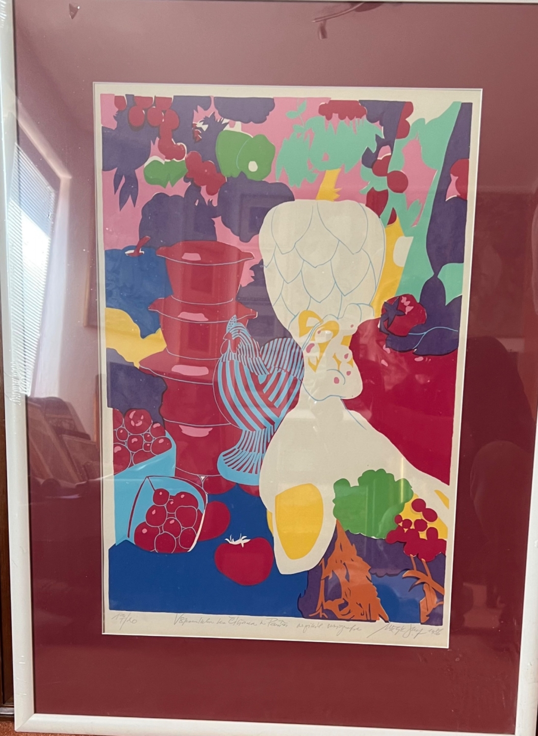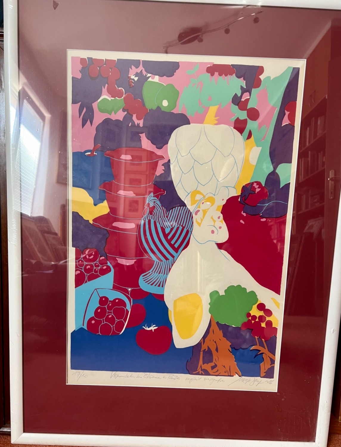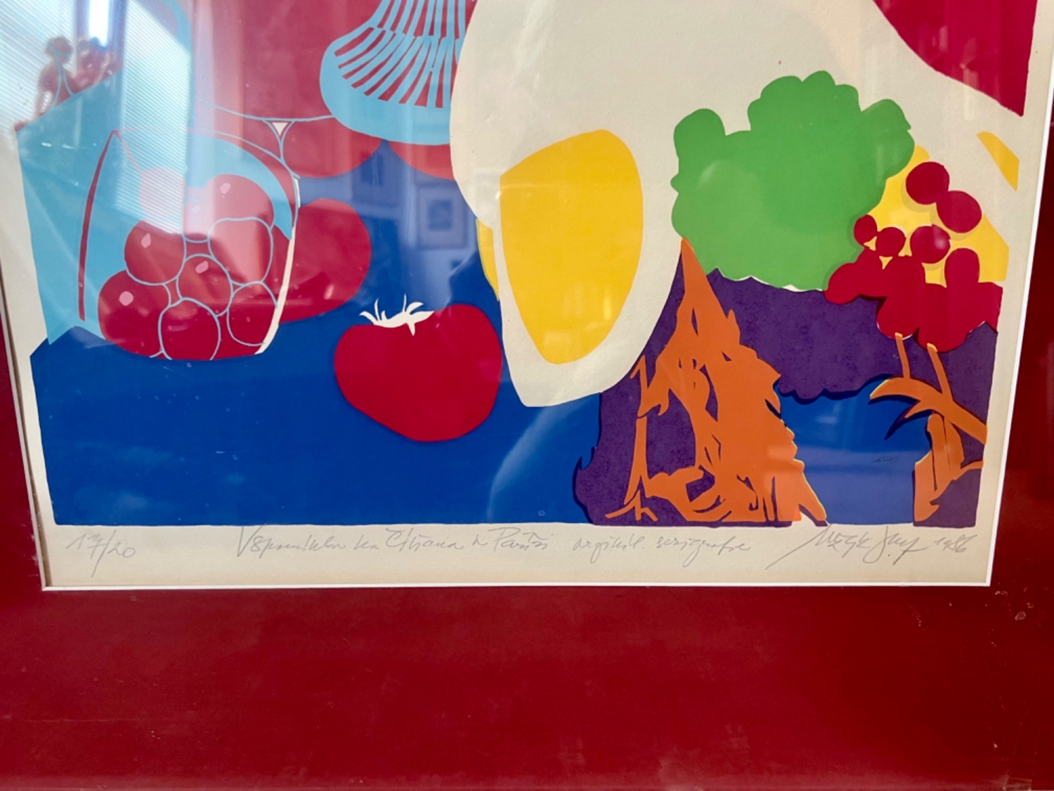 Velká serigrafie od Josefa Mžyka „Vzpomínka na Číňana v Paříži “ Originál serigrafie 17/20 z roku 1986. Rozměr 64 x 34 cm tisková plocha, 90 x 66 cm celkem.Původní adjustace.