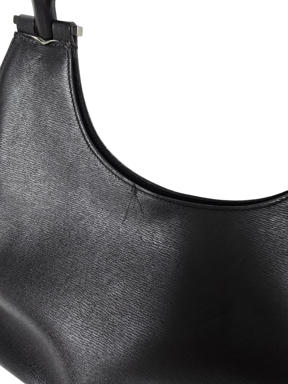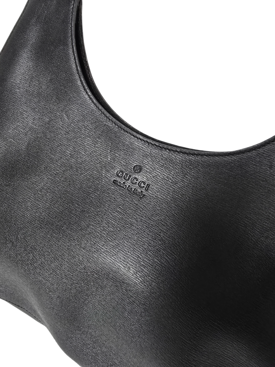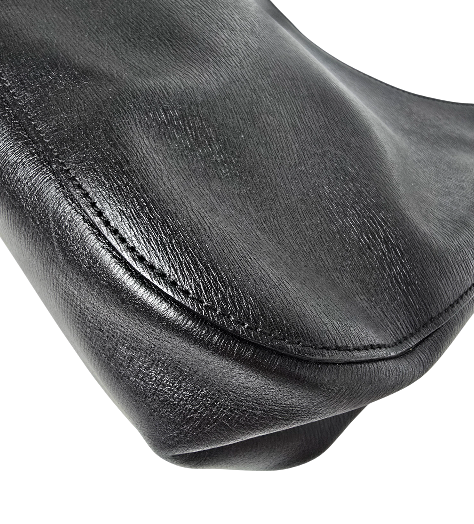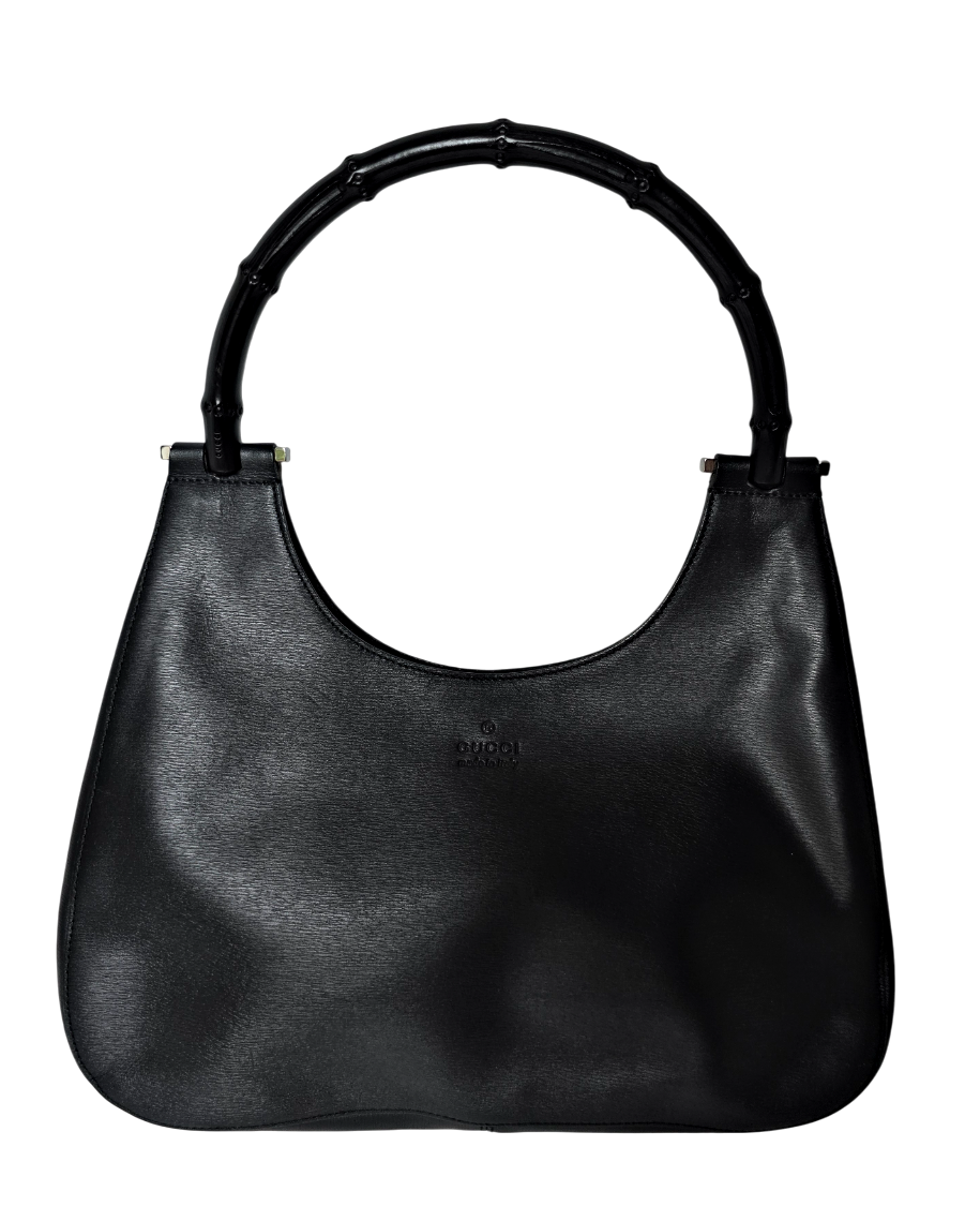 Popis: Luxusní kabelka značky Gucci z kolekce Toma Forda zvané \“Bamboo Handle\“, který proměnil image značky Gucci na sexy moderní styl. Kabelka má ikonický tvar, kterému dodává luxusní vzhled rukojeť z černého bambusu, a kovové doplňky stříbrné barvy. Na eleganci a luxusu dodávají drobné prvky, jako je vyražená značka do kůže na přední straně a označení Gucci na bambusové rukojeti. Zapínání stříbrné barvy je na magnet – plně funkční. Podšívka z drsněné kůže. Obsahuje jednu menší vnitřní kapsu na zip. Na kapse je originální kožený štítek Gucci, na jehož spodní straně je vyraženo sériové číslo výrobce. Nošení v ruce / přes ruku / na rameni. V původním originálním Gucci protiprachovém obalu.