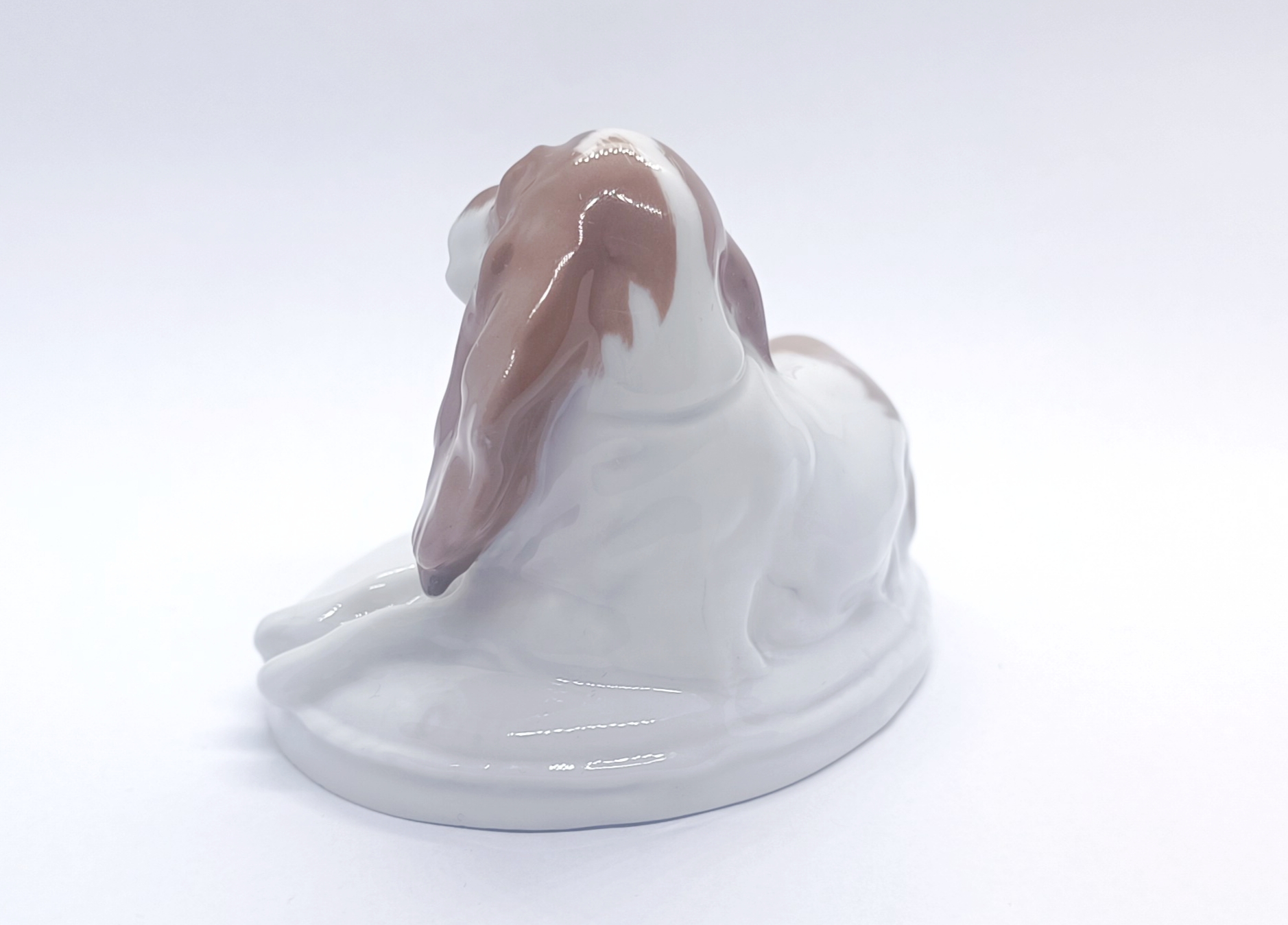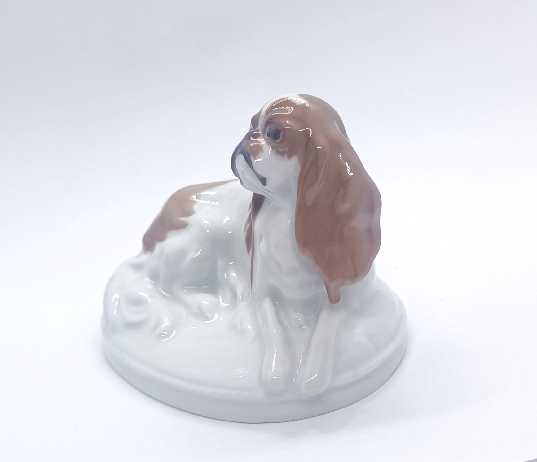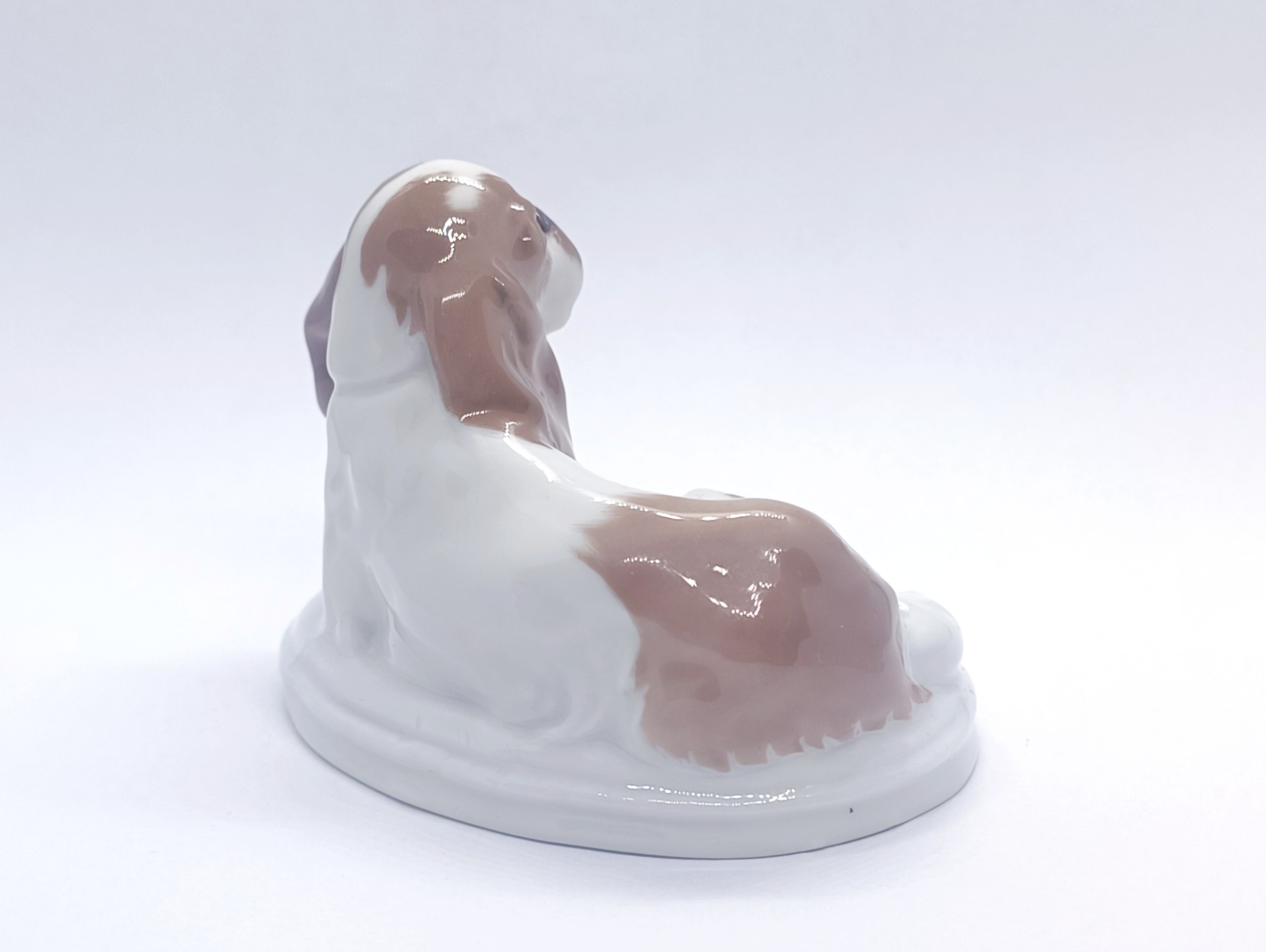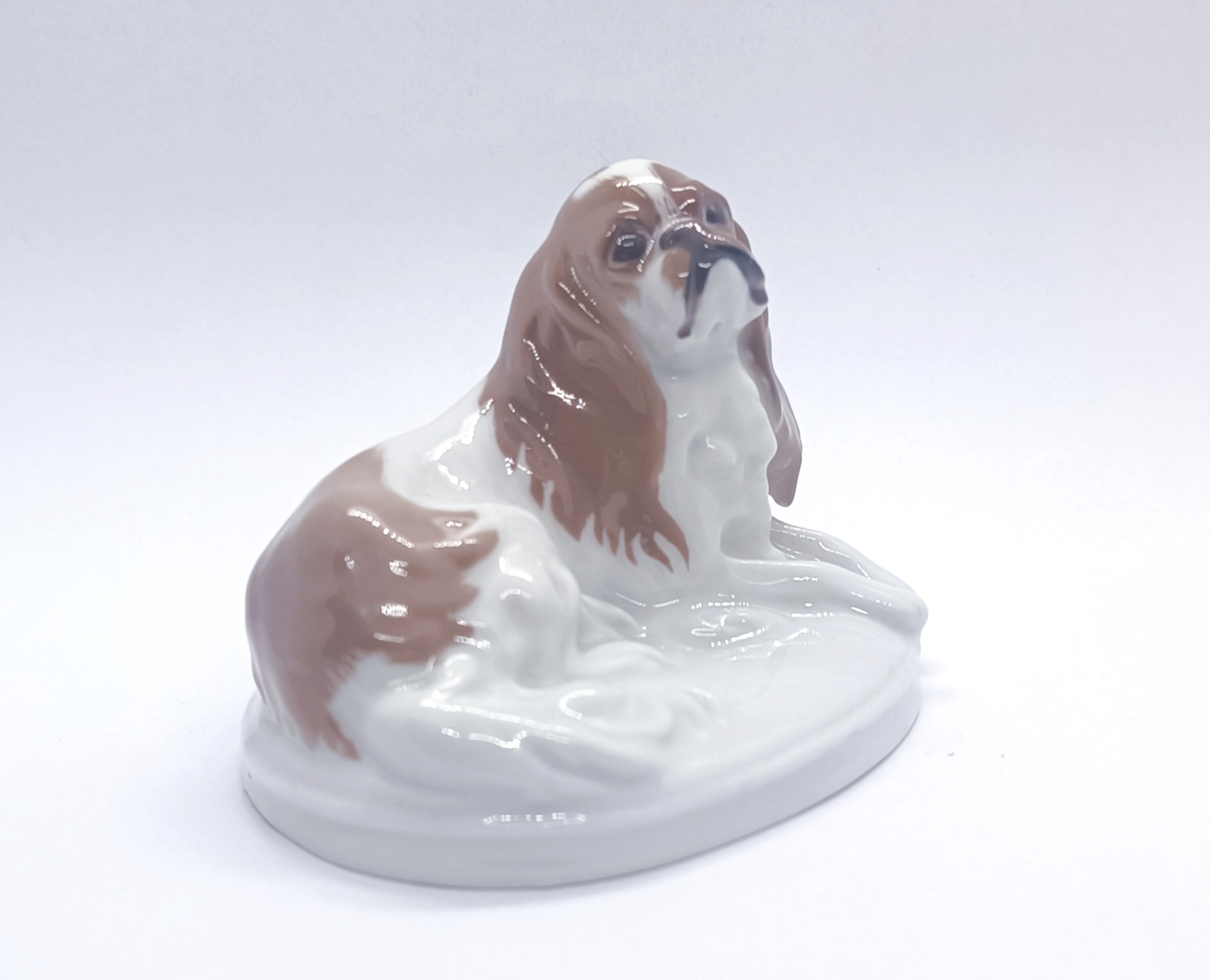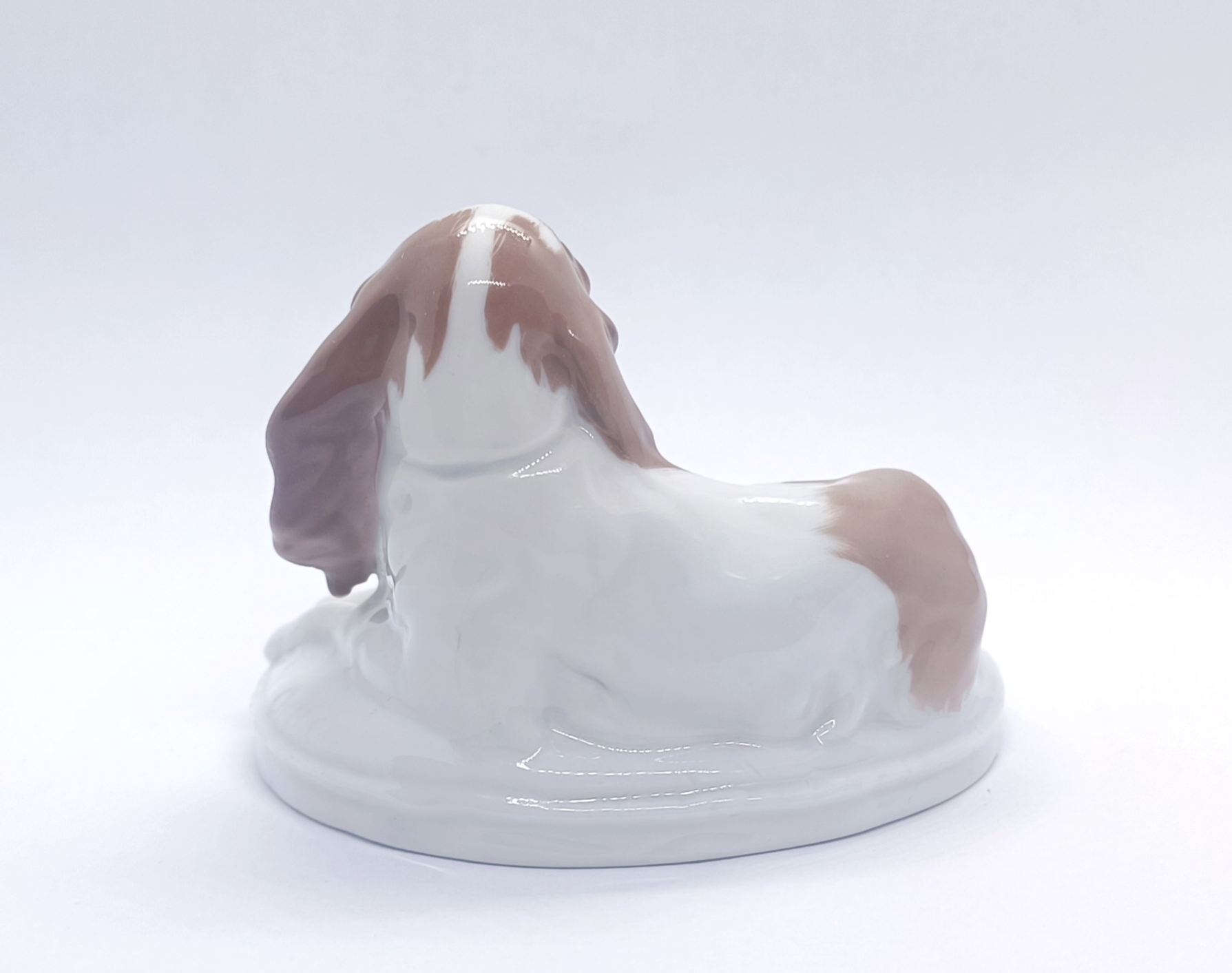 Porcelánová soška ležícího psa, King Charles Spaniel, modelér Fritz Diller, značeno Rosenthal, Německo, rok 1918; výška 6 cm, délka 8,2 cm, šířka 6,4 cm