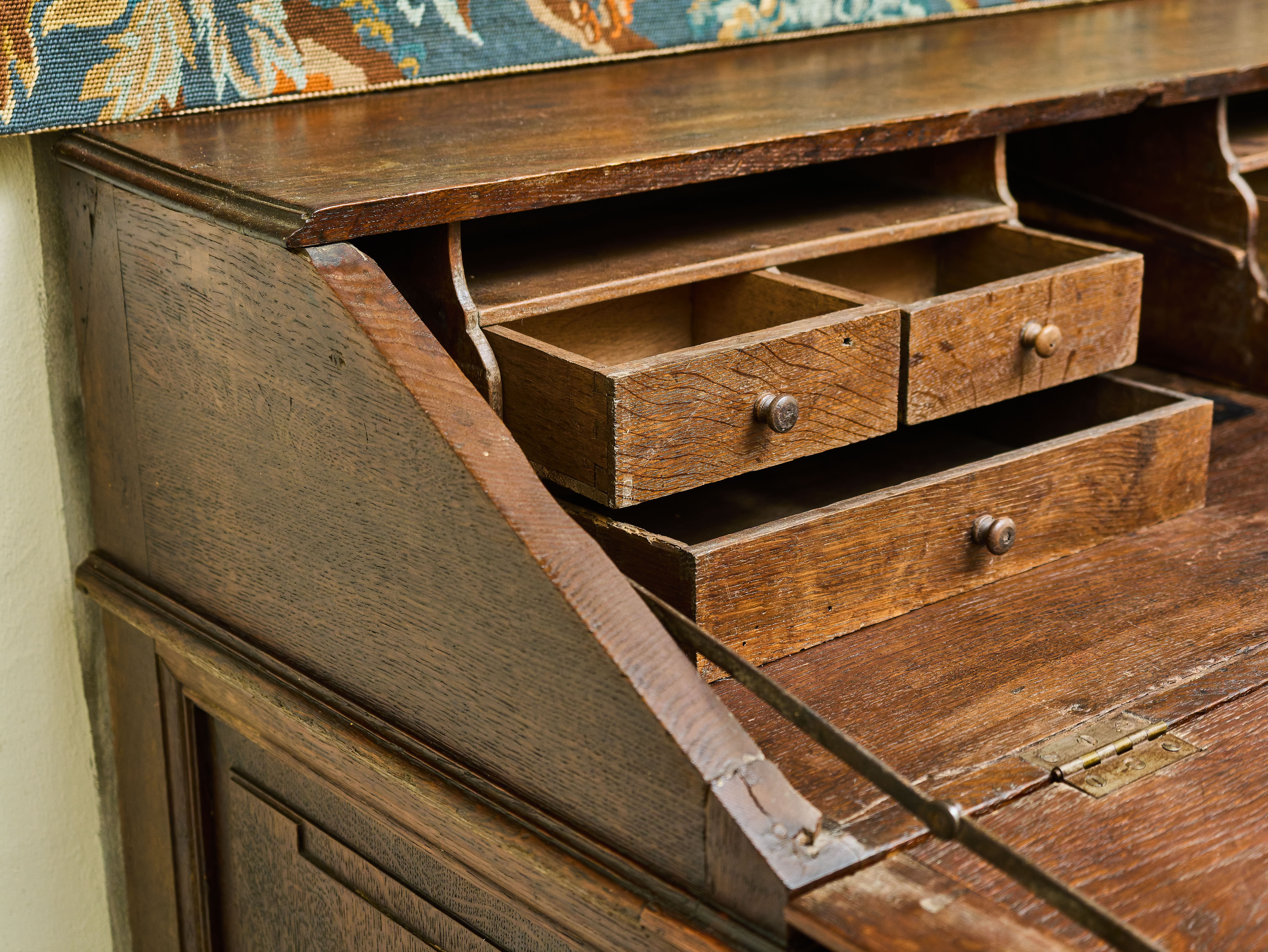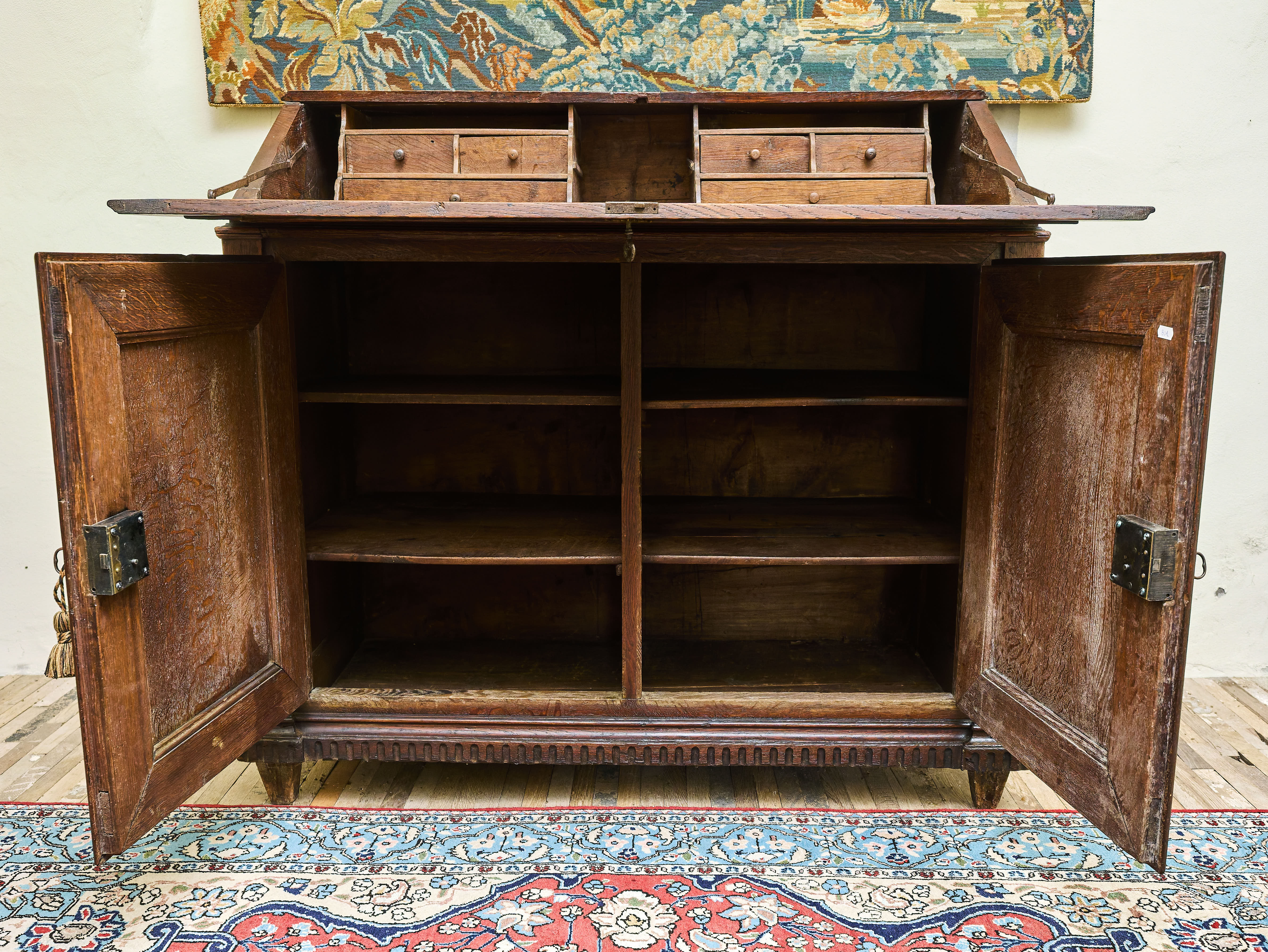 Komoda se sekretářem je nejen funkčním kusem historického nábytku, ale i výrazným dekorativním prvkem vhodným do reprezentativních interiérů, galerií a sbírek starožitností. Jedná se o originální autentický kus s dobovou patinou, který prošel pouze minimálními zásahy.