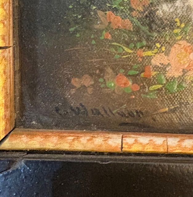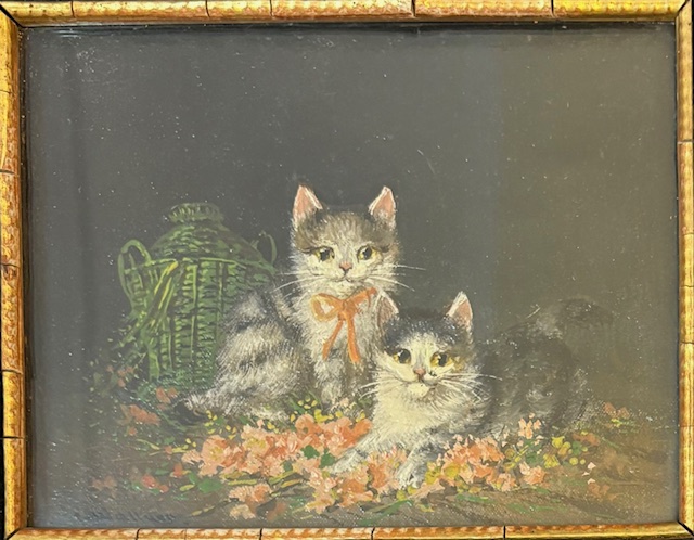 Obraz Kočky od malíře C. Wallnora. Olej/karton Konec 19. století Rozměr s rámem 31 x 35 cm, bez rámu 13 x 16 cm