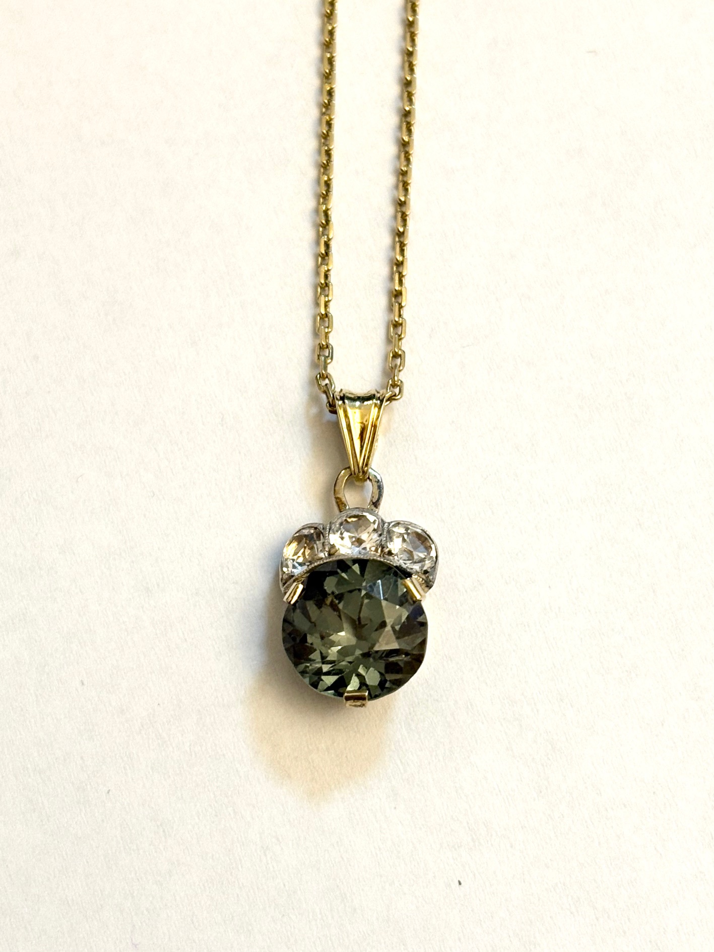 Nazelenalý syntetický spinel a broušený křišťál s diamantovým brusem