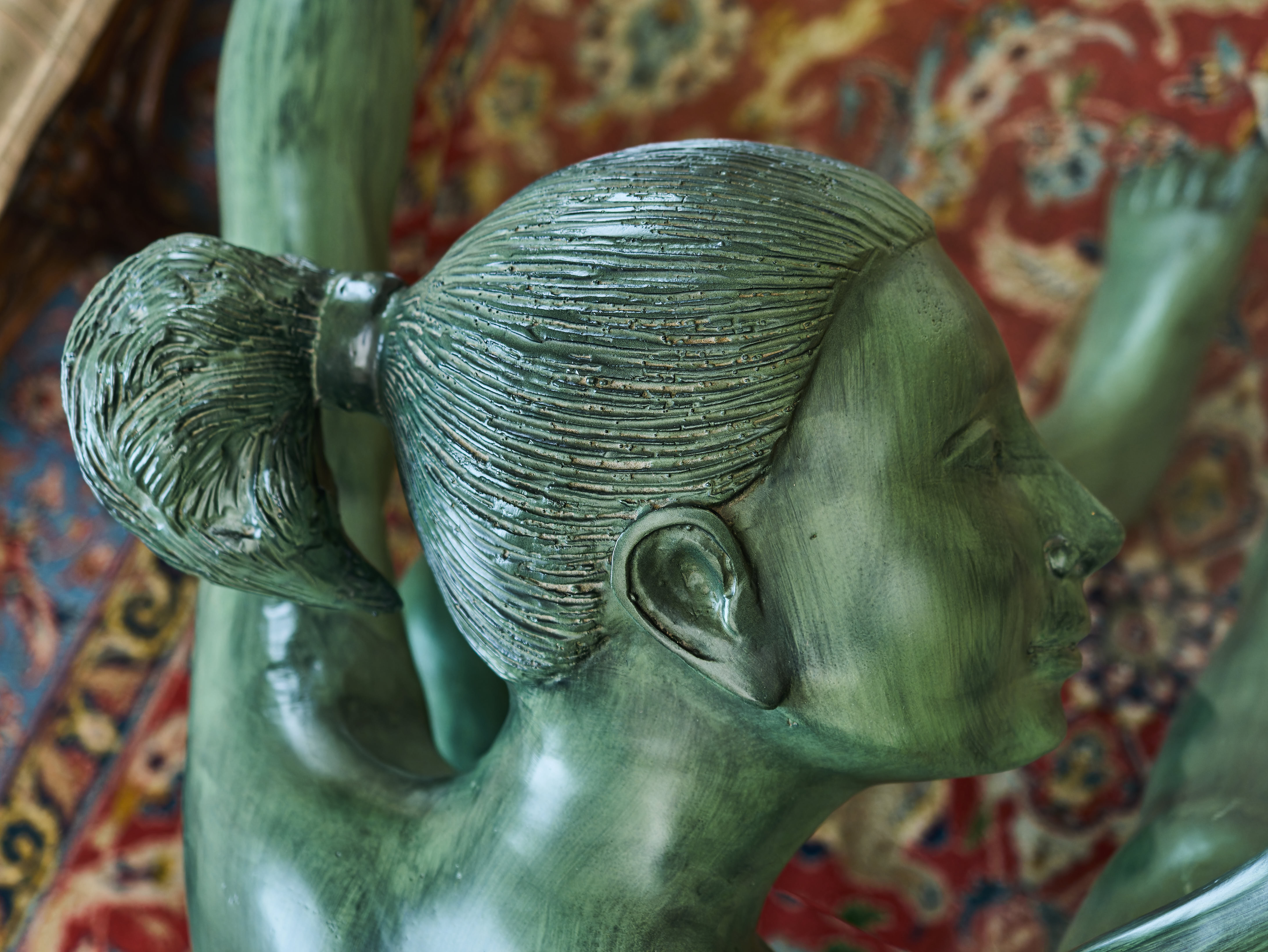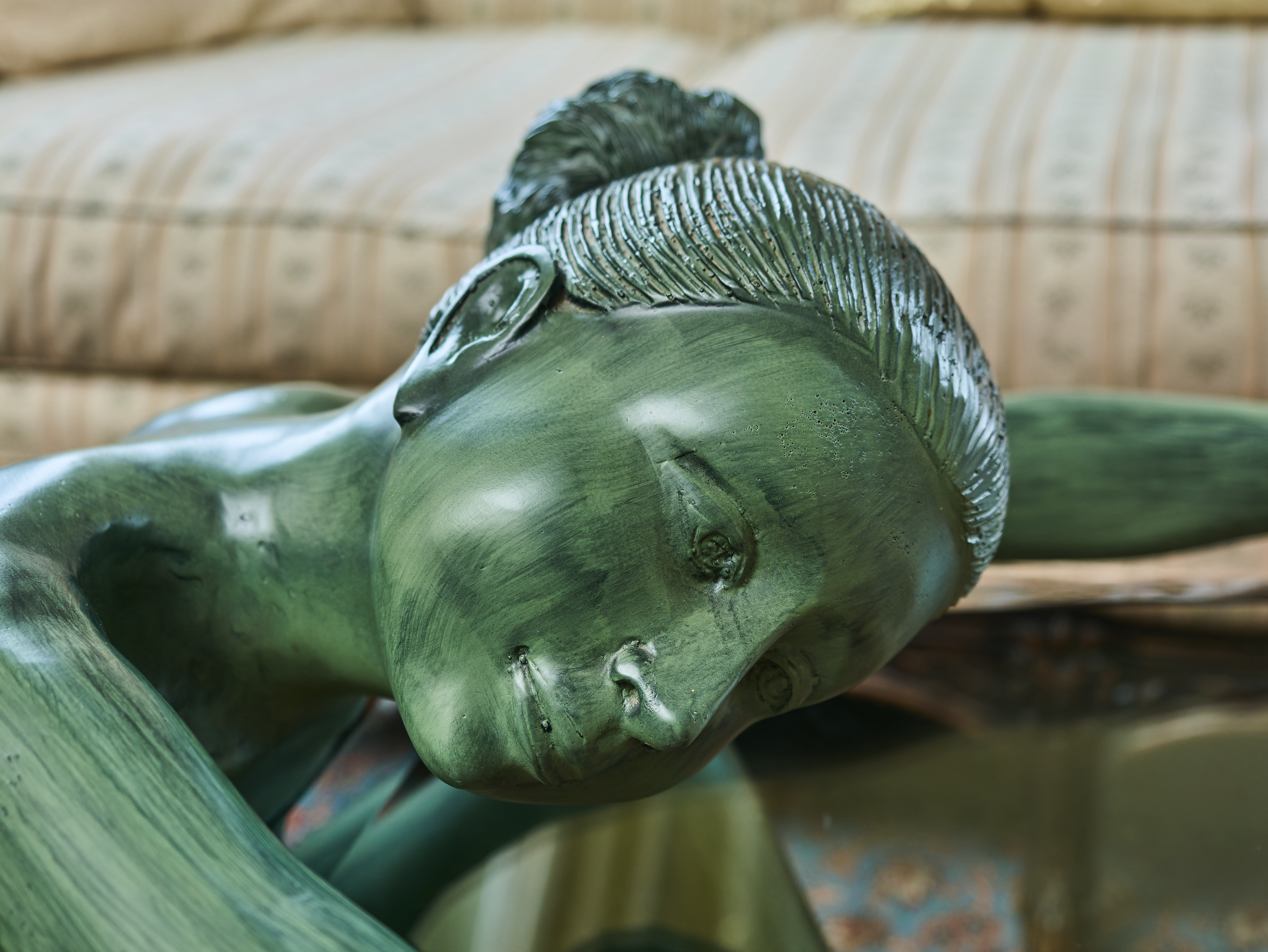 Socha je zpracována s velkým citem pro detail a proporce. Jemné modelování těla, klidný výraz tváře a přirozená póza vytvářejí dojem klidu a harmonie. Celek působí velmi sochařsky a zároveň funkčně – jde o spojení užitného nábytku a uměleckého díla.