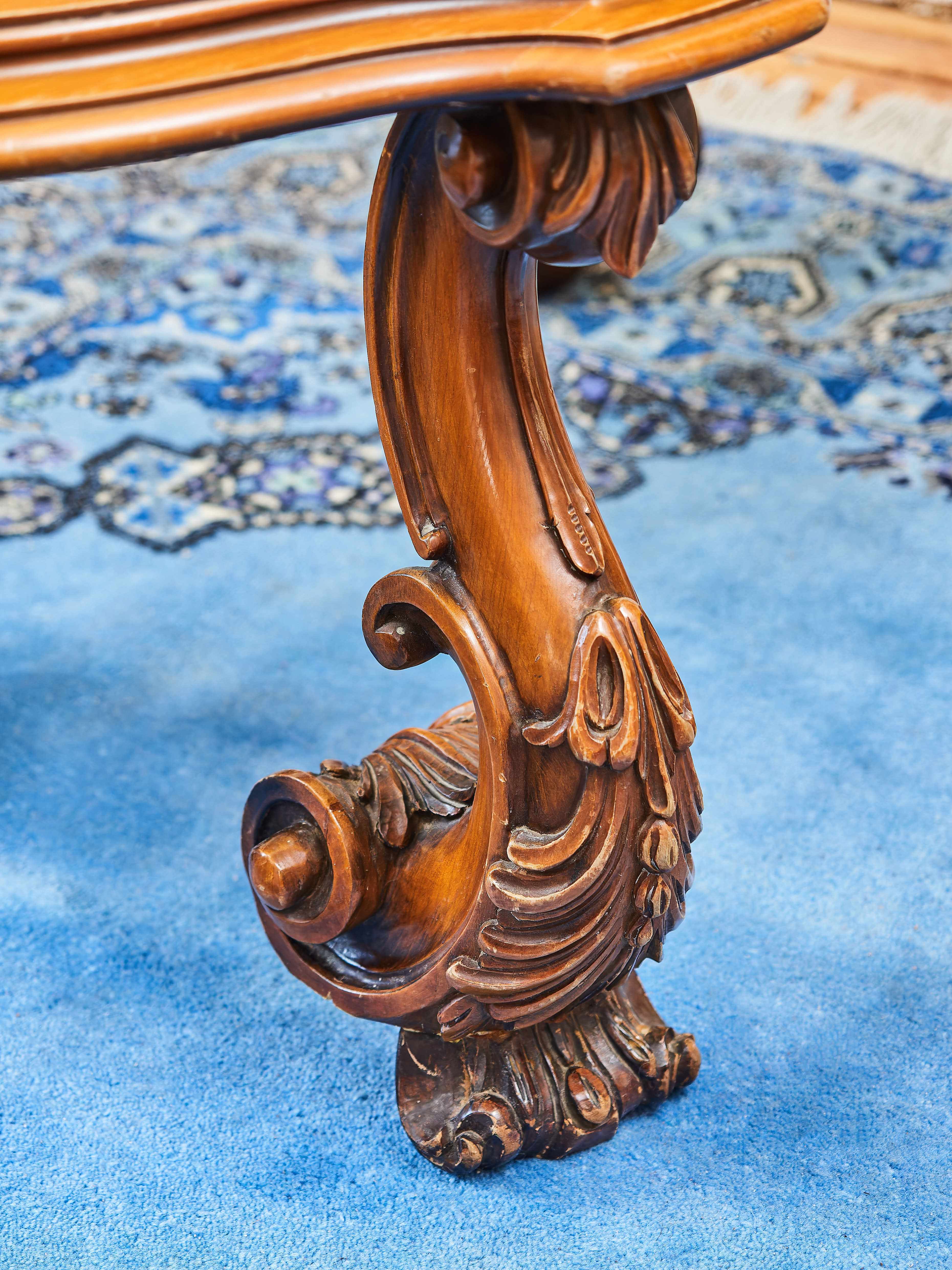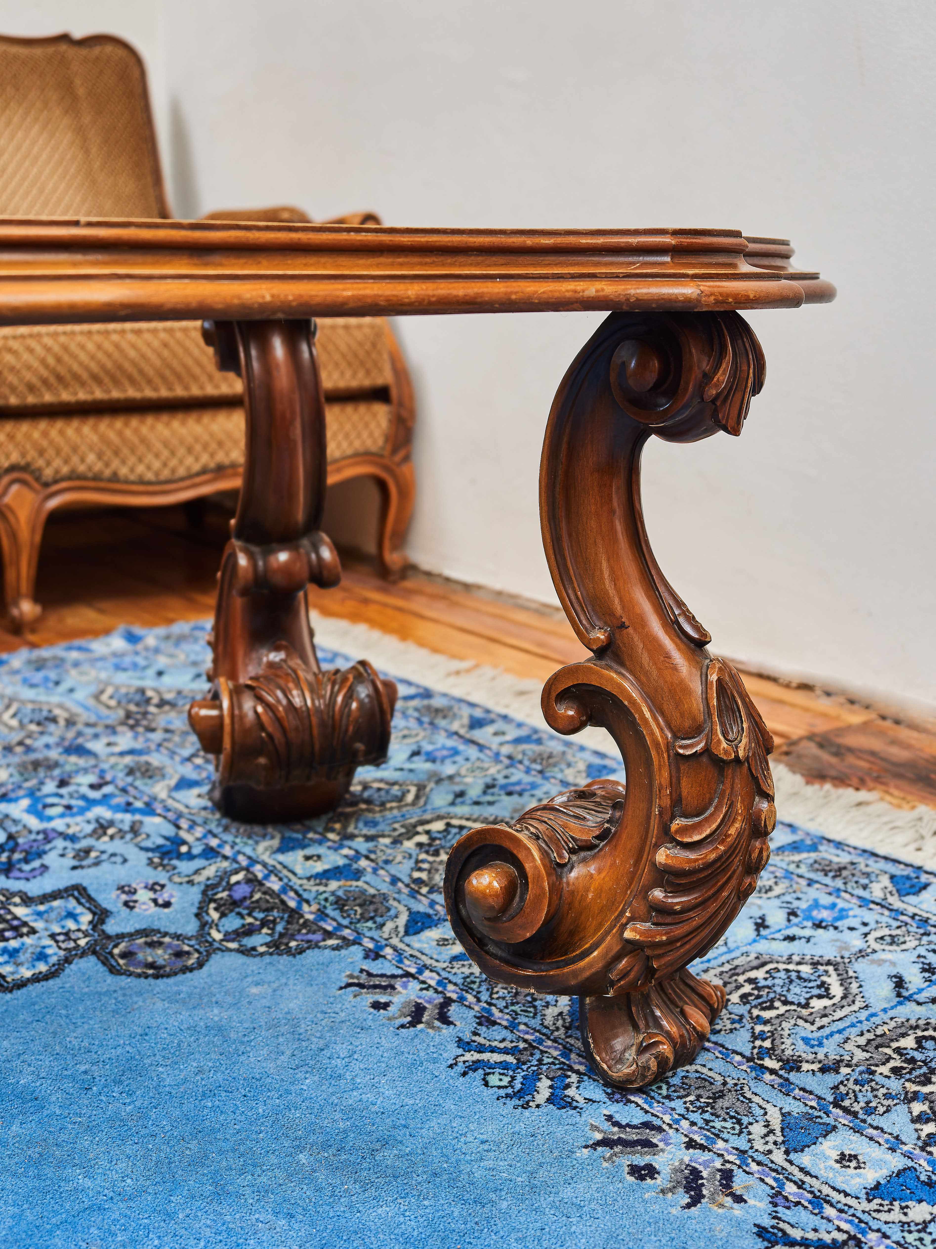 Konferenční stolek v barokním stylu s bohatým řezbováním. Elegantní kus nábytku vyrobený z masivního dřeva s precizně tvarovanými nohami ve tvaru volut, zdobenými akantovými listy. Stolek nese prvky inspirované historickým barokním uměním a zaujme výraznou siluetou a dekorativními detaily.