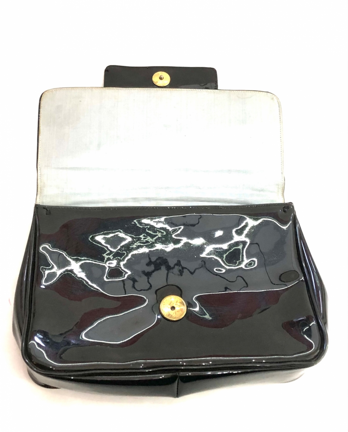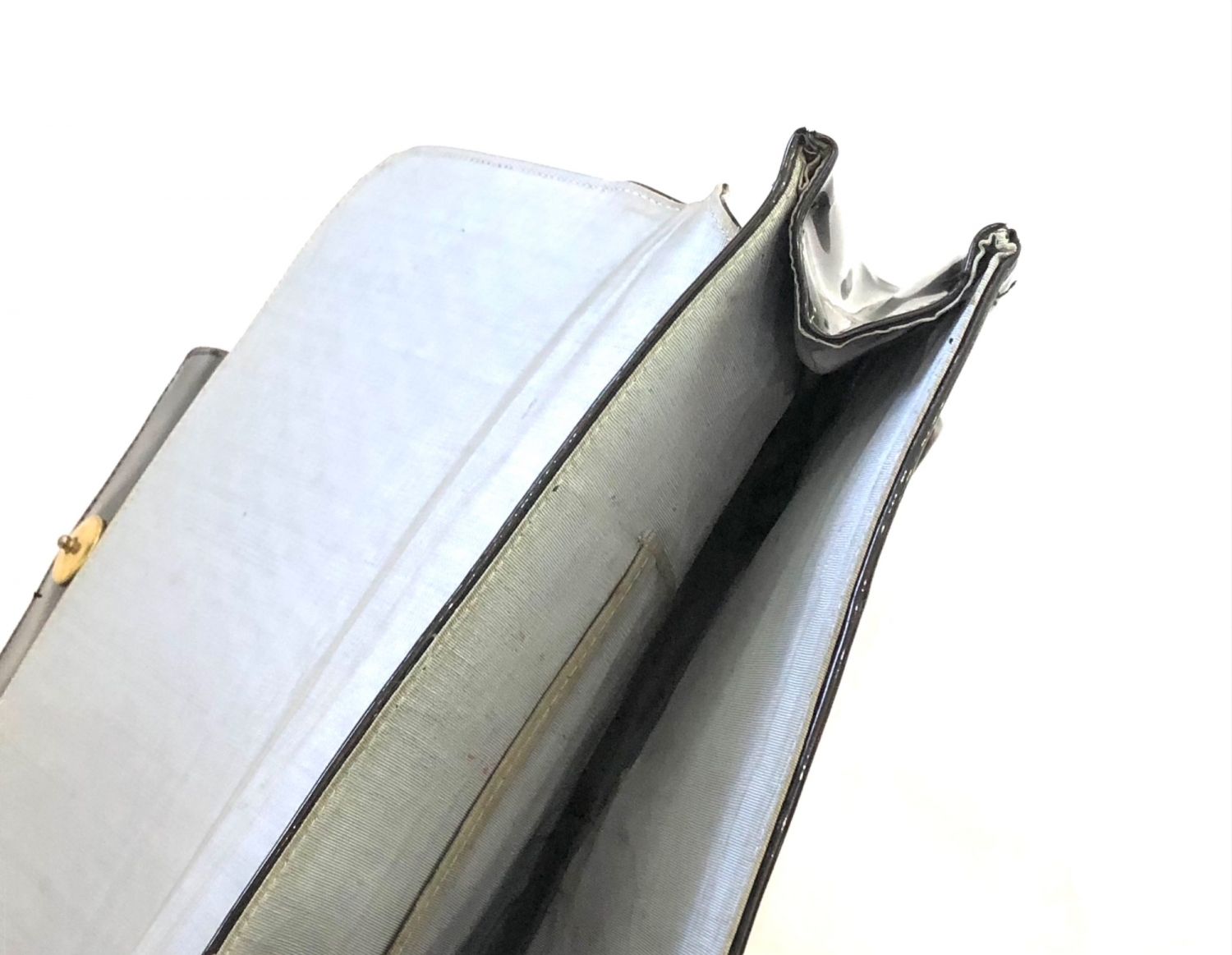 Černé kožené lakované psaníčko z 50. až 60. let minulého století, Německo, dobrý stav; výška 20 cm, šíře 30 cm.