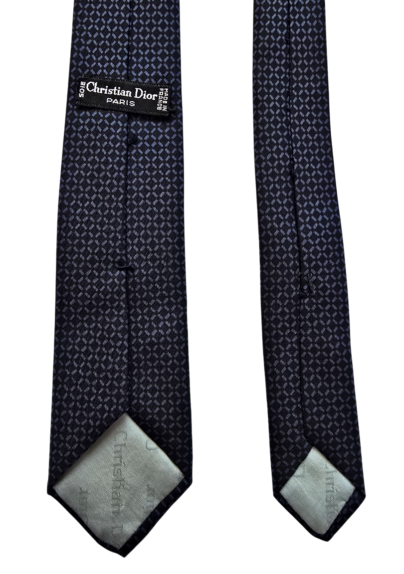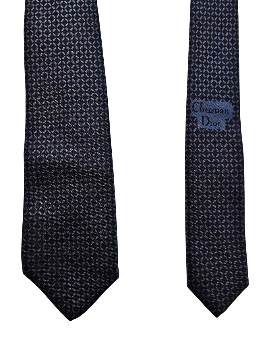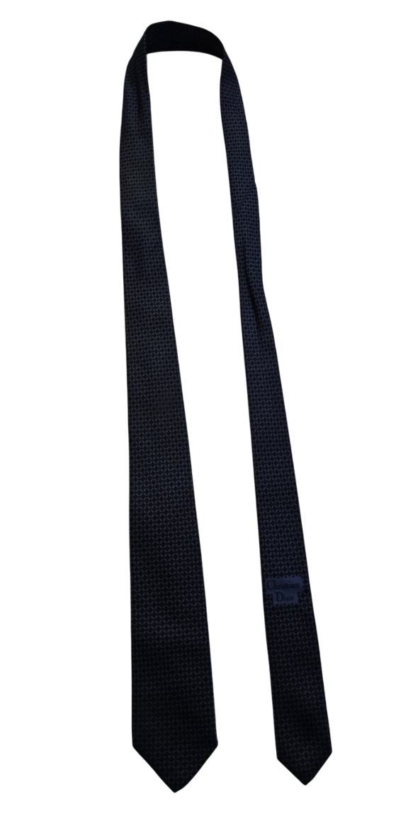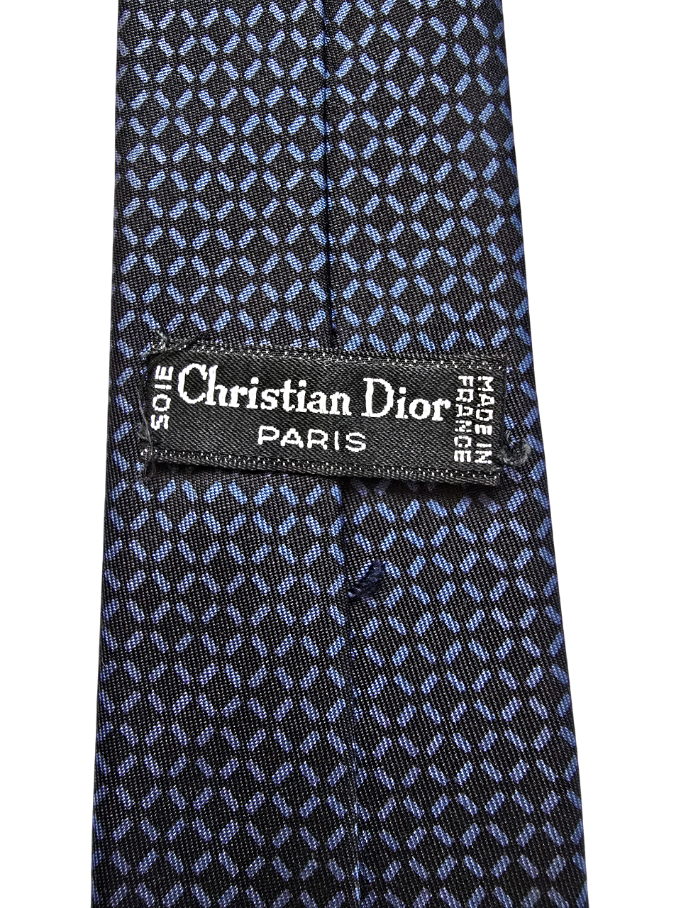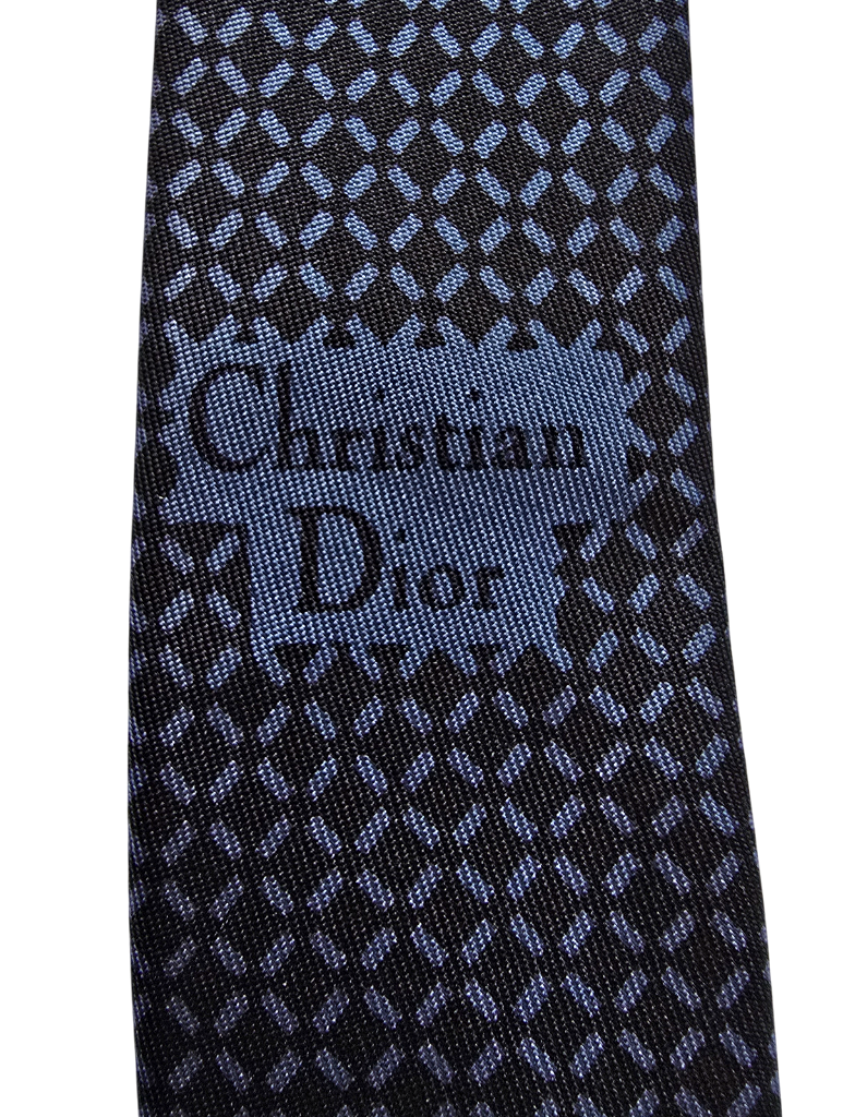 Popis: Kravata značky Christian Dior, z vysoce kvalitního hedvábí s nadčasovým designem. Černá barva s modrými vzory. Vetkaná signace. Na rubu všitý původní štítek. Kvalitní podšívka s plastickými nápisy Christian Dior. Nečištěno. Nepoškozeno. V perfektním stavu.