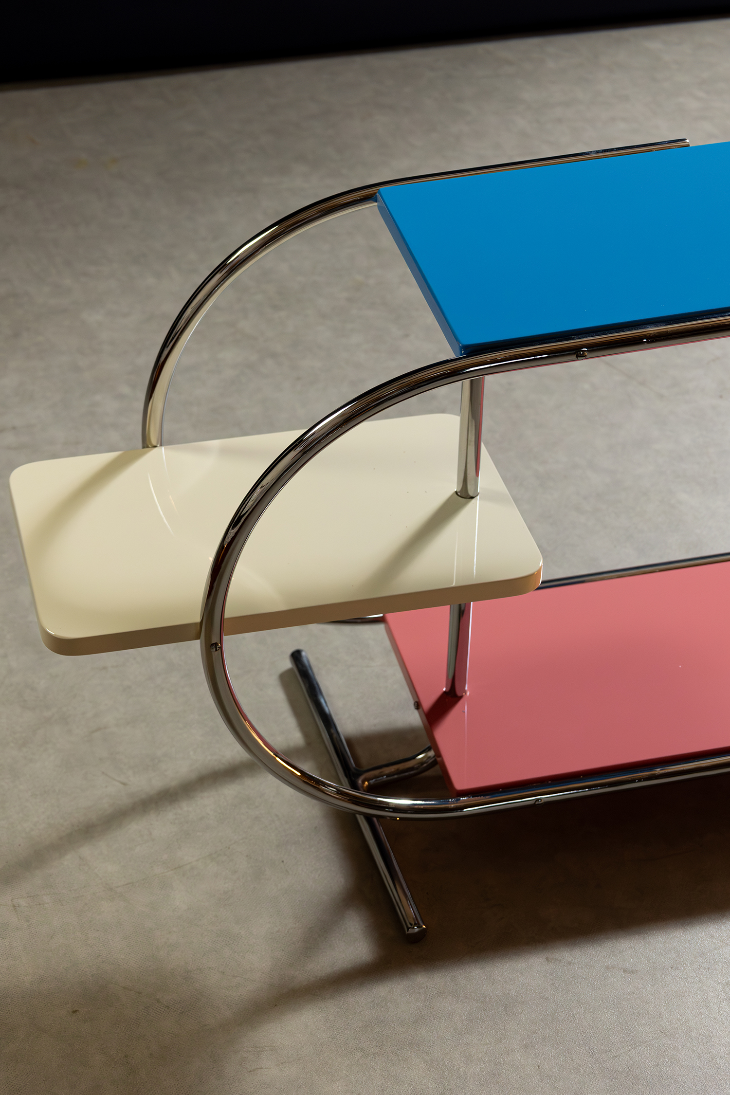 Materiál-kovová kostra, dřevěné podesty.