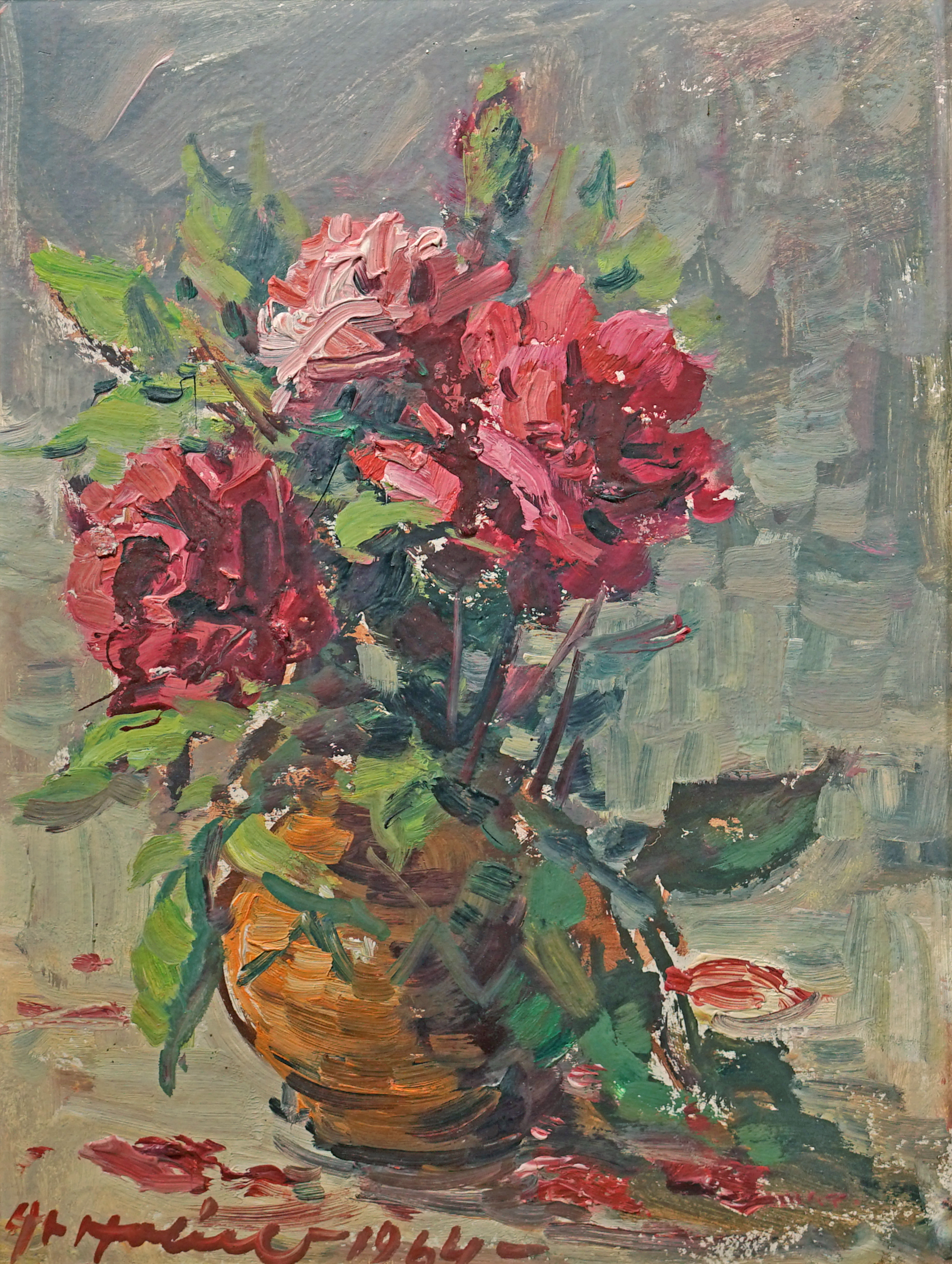Technika: Olej na kartonu Výška: 40,5 cm, šířka: 30,5 cm, rámování: 49 x 39 cm Stav: Dobrý Signatura: signováno